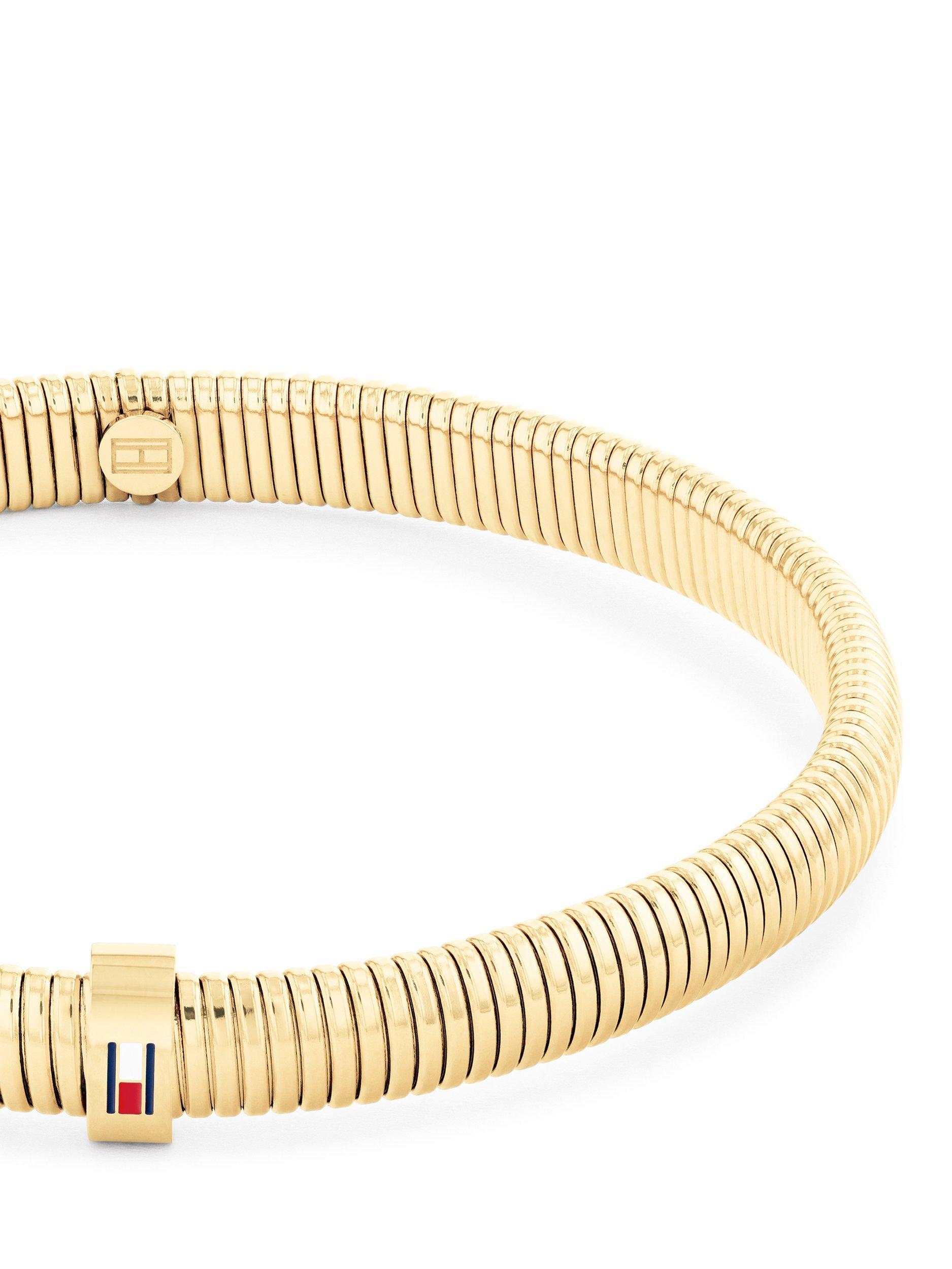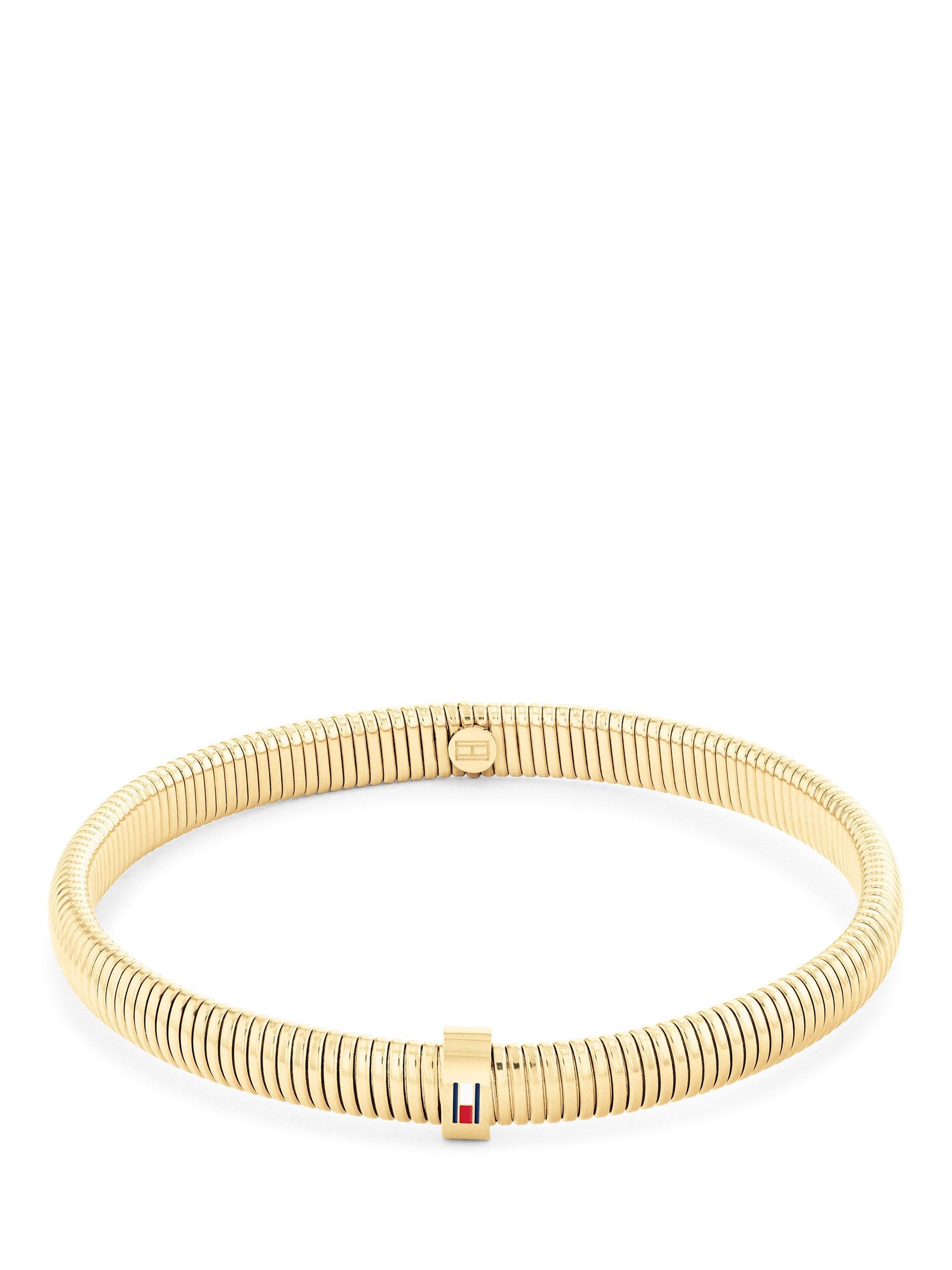 This Tommy Hilfiger gold-plated stretch bangle adds charm to your wrist with distinctive enamel flag branding.