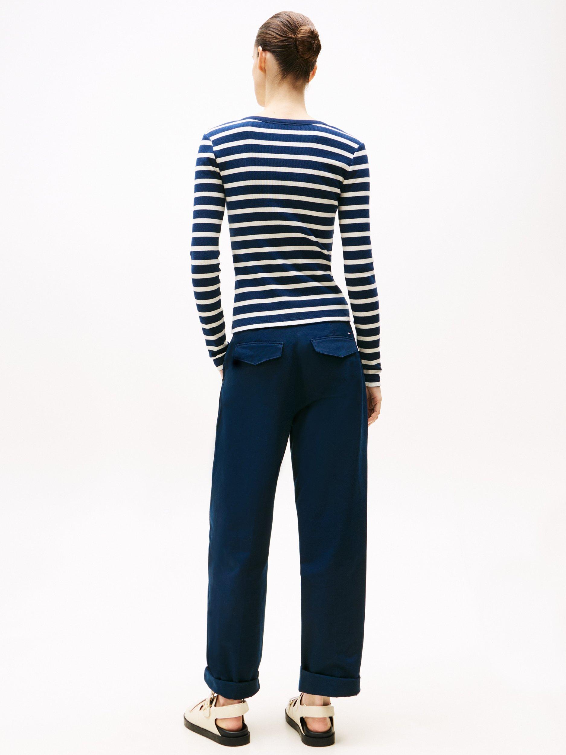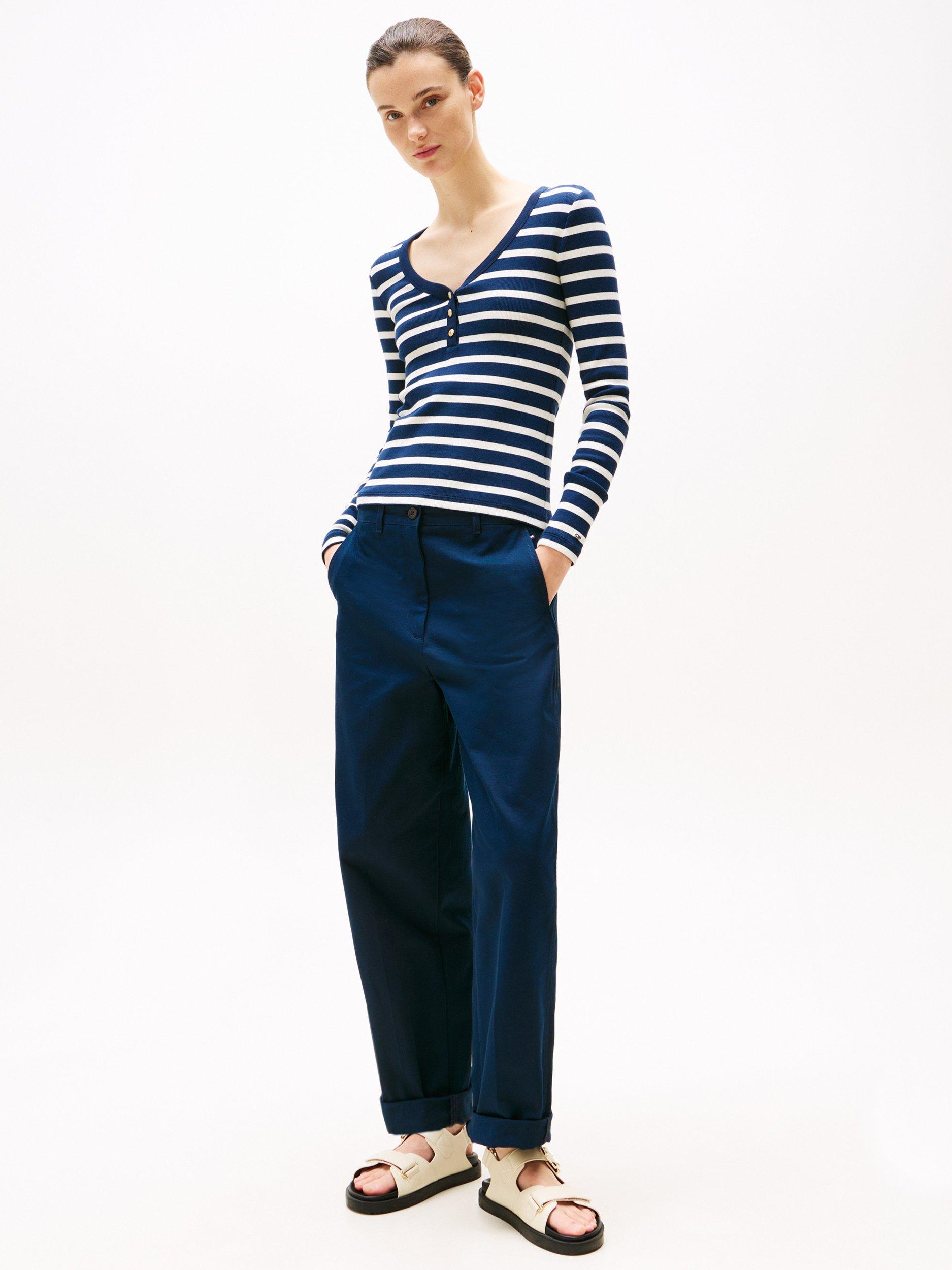A lightweight staple, this slim fit henley top from Tommy Hilfiger is a wardrobe classic with neat striping. Cut with a scoop neckline and long sleeves, it is made from a soft cotton blended jersey.