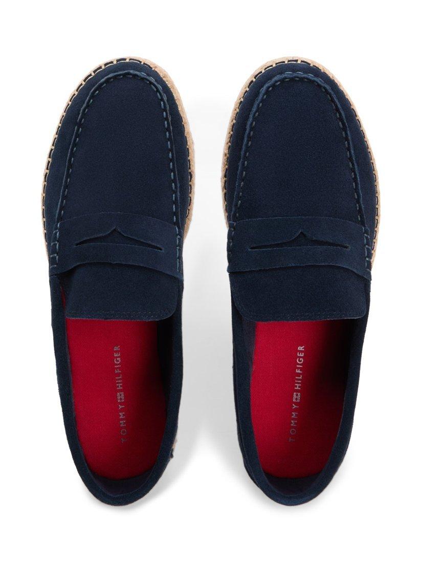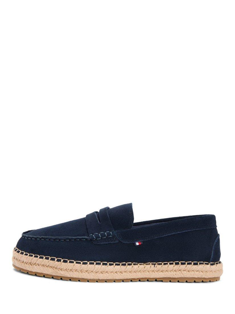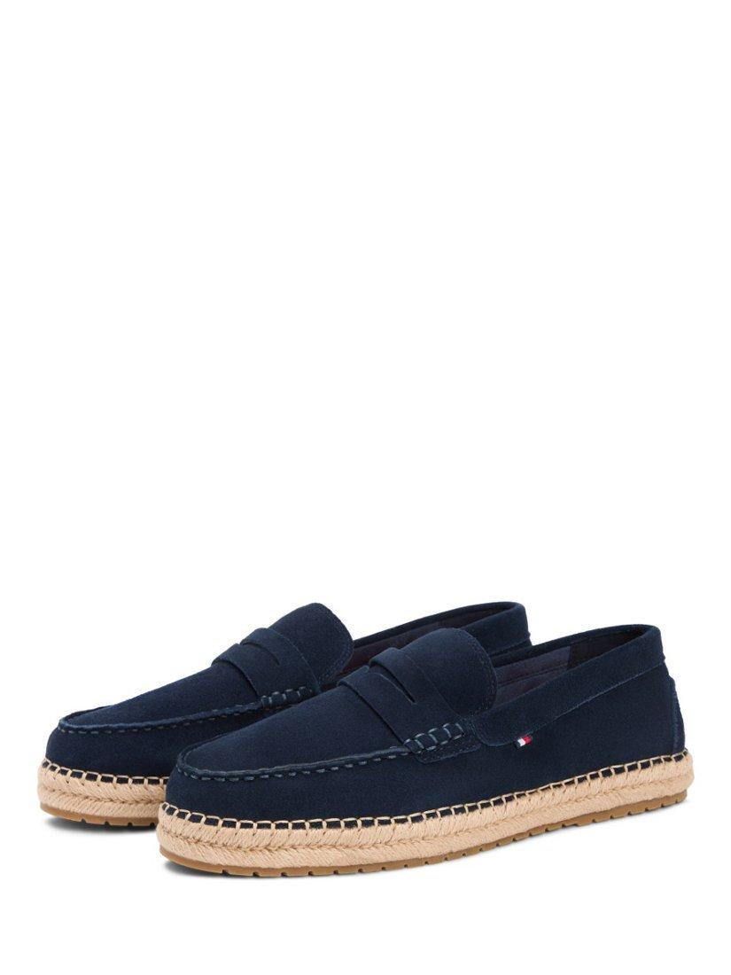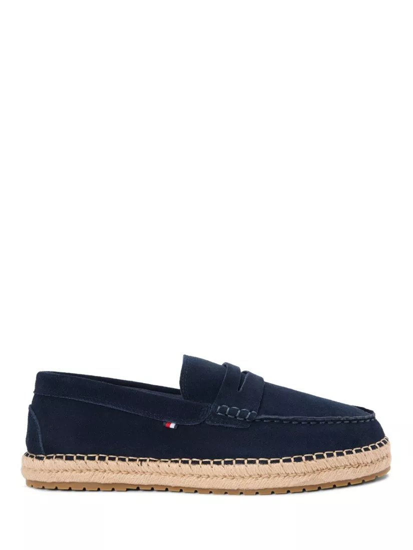 A pair of suede espadrilles by Tommy Hilfiger. The slip-on design and soft round toe keep you comfortable while the sturdy rope-wrapped rubber sole gives you reliable support for all your casual plans.