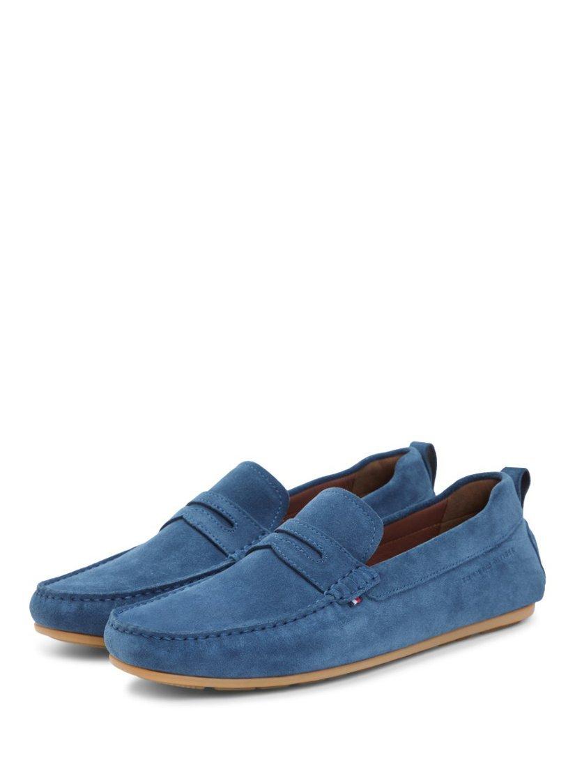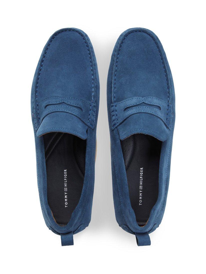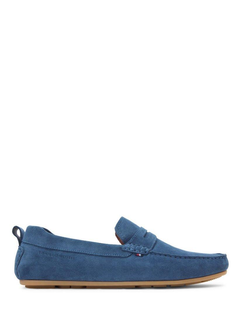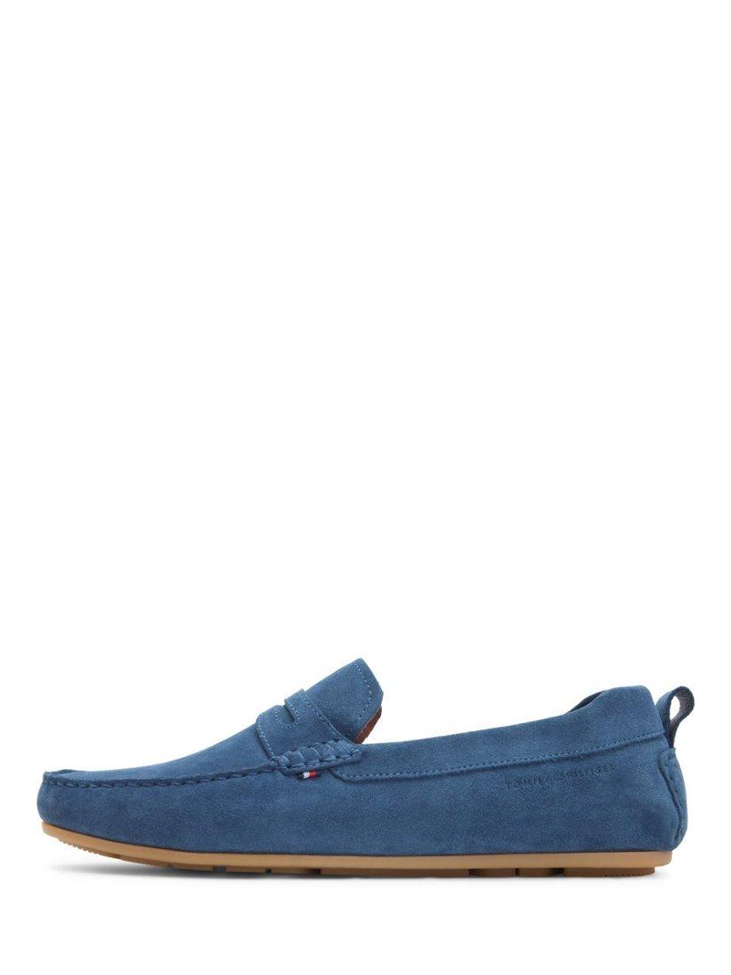 Suede slip-on loafers by Tommy Hilfiger. Designed with a closed toe and cushioned rubber sole, they're perfect for casual days out or relaxed evenings.
