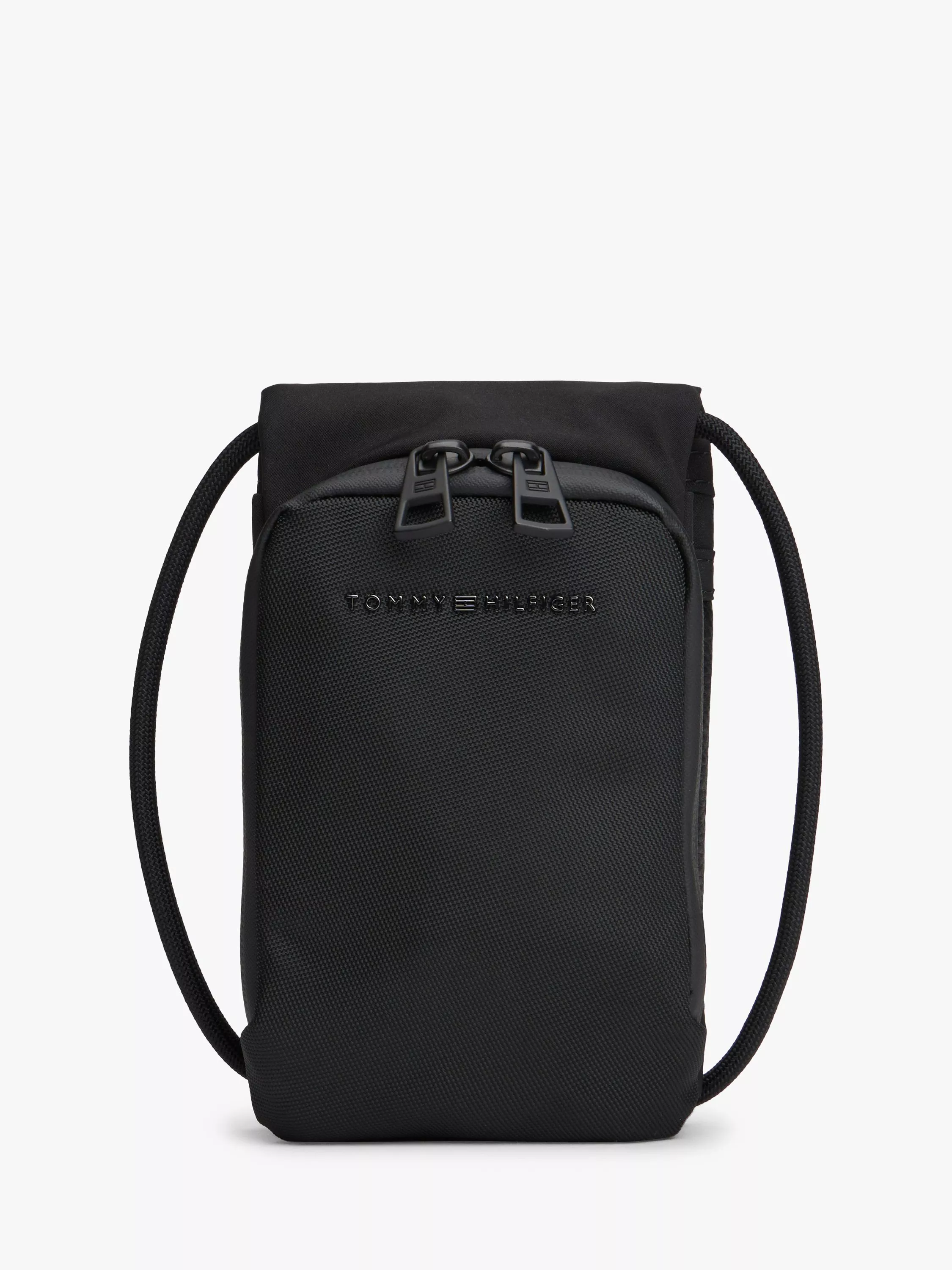 Tommy Hilfiger's practical travel pouch is designed to keep your valuables secure, making it a reliable travel companion. Crafted from durable textile, it features a flap with a snap-button closure and a practical shock cord shoulder strap. It offers considered organisation with one main compartment, two interior slip pockets, an interior zip pocket, and multiple interior card slots. And an extra exterior zipped pocket allows for quick access to essentials.
