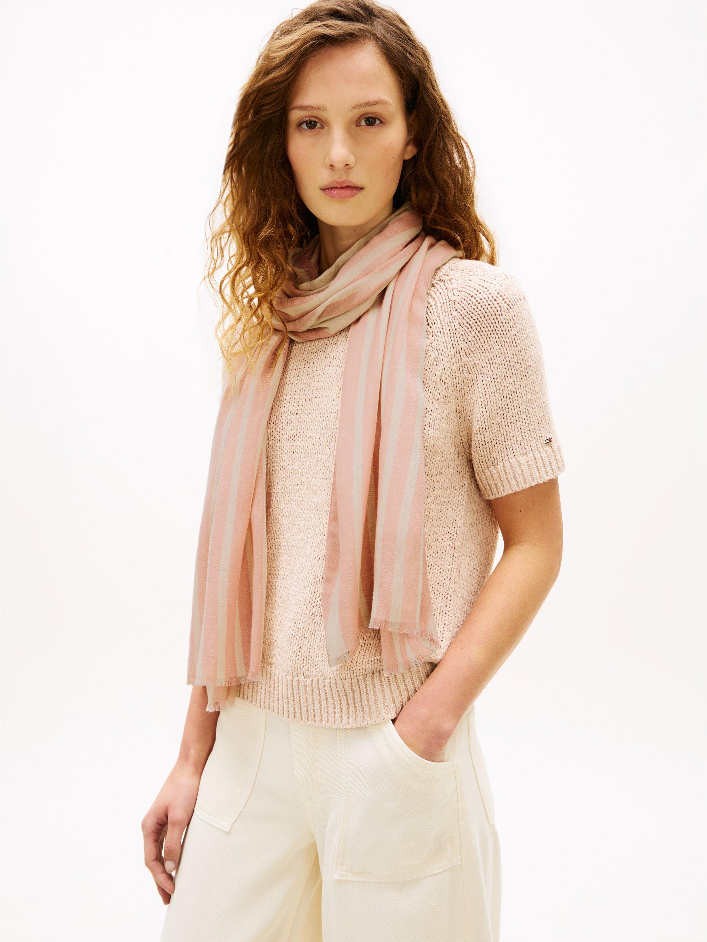 This soft cotton modal scarf has a lightweight woven design with a TH monogram plaque that enhances the elegance.