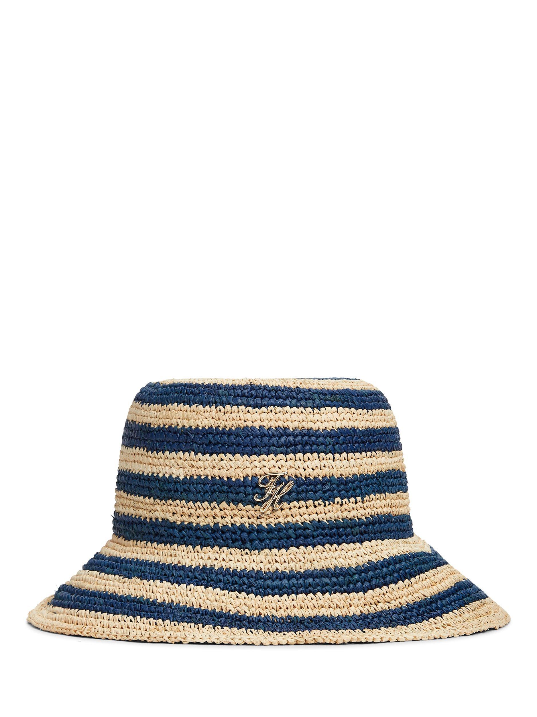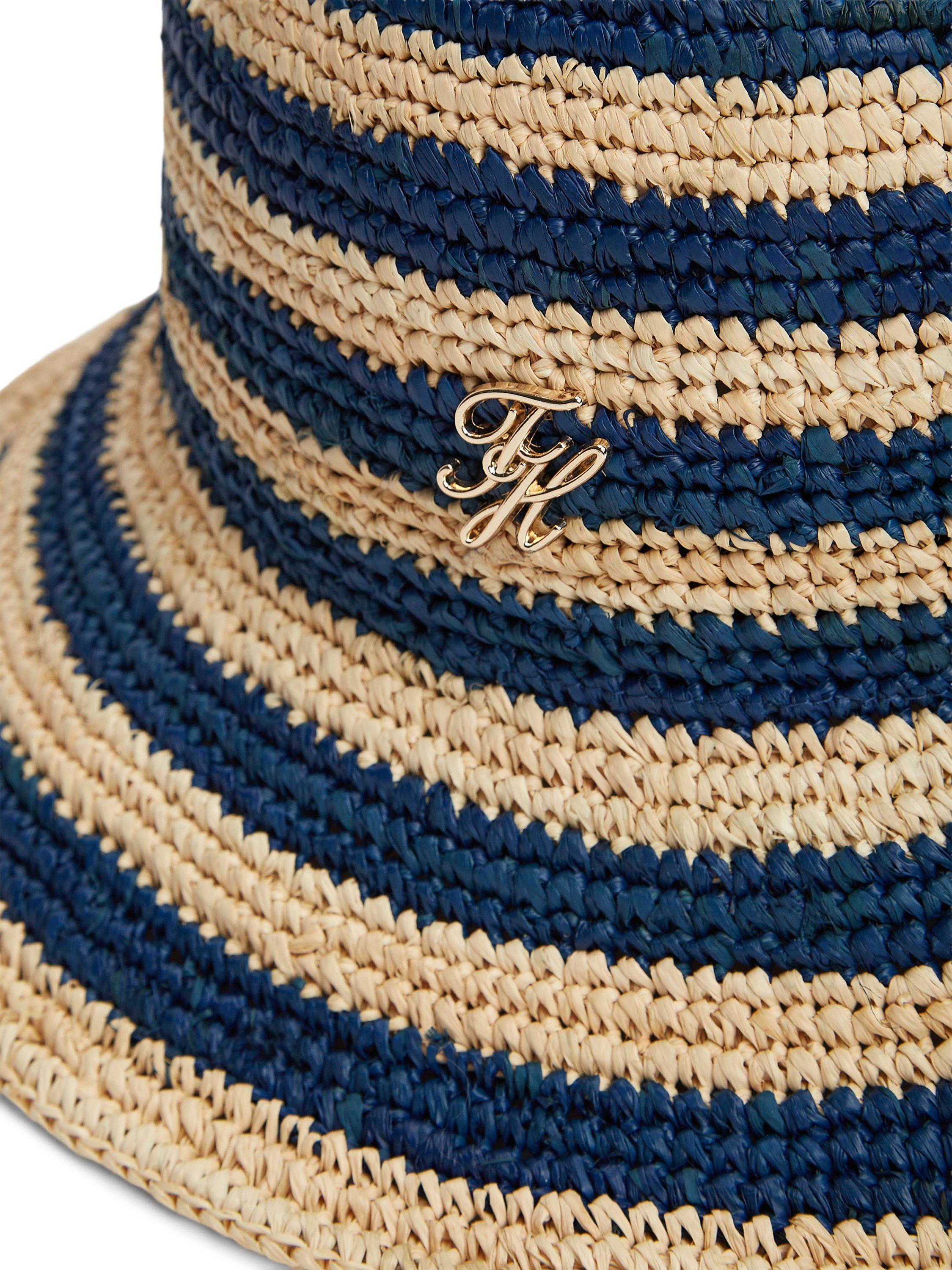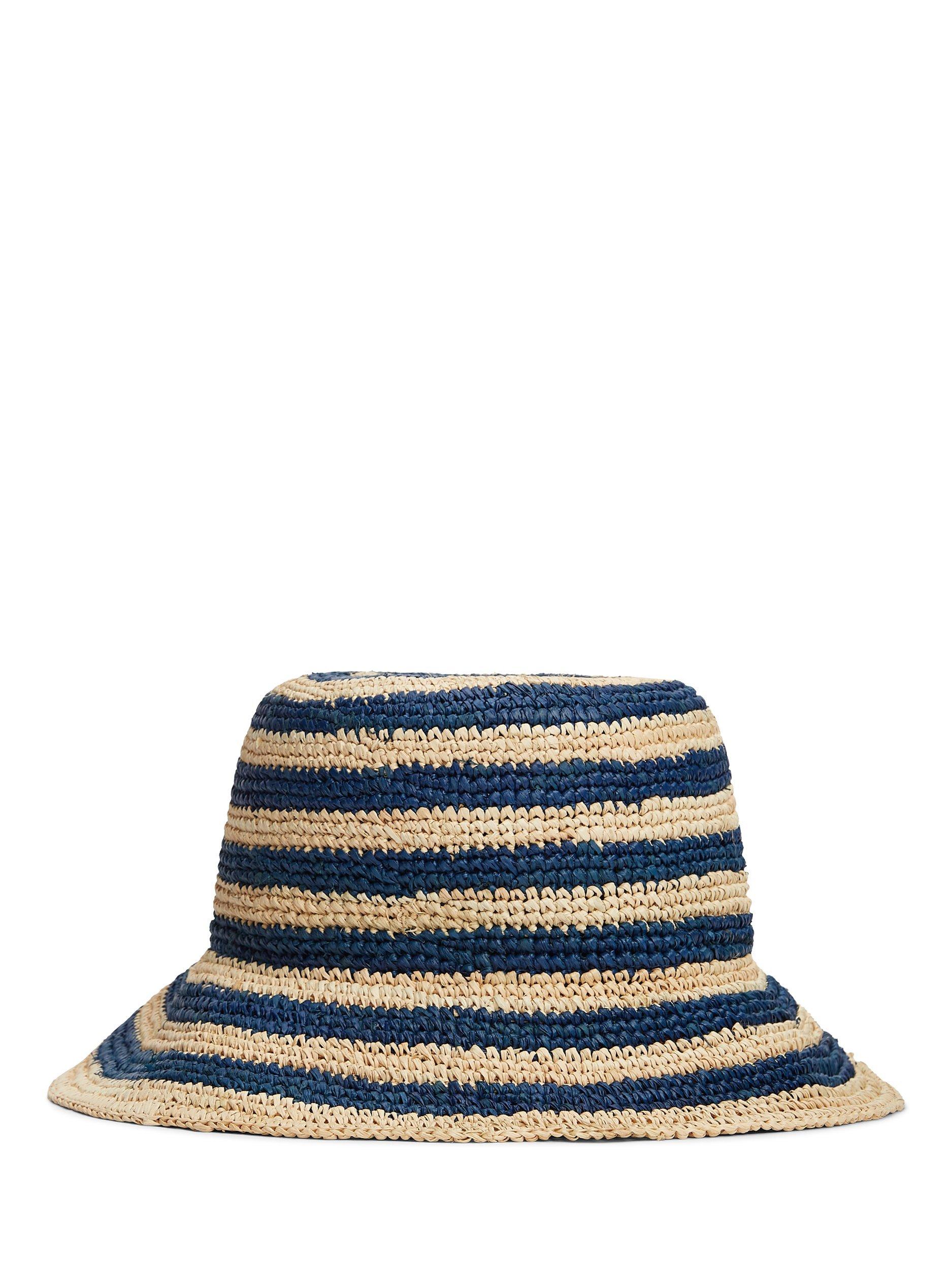 Tommy HilfigerThe Script Striped Raffia Bucket Hat, Blue/Multi