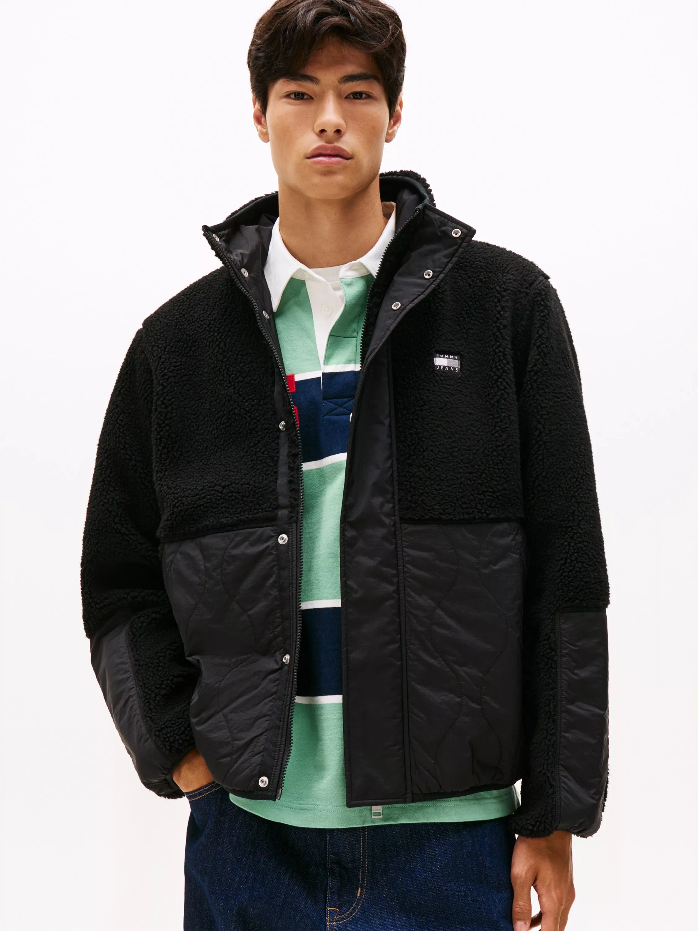 The perfect transitional layer, this relaxed padded jacket combines teddy and quilted panels for warmth when the temperature drops.