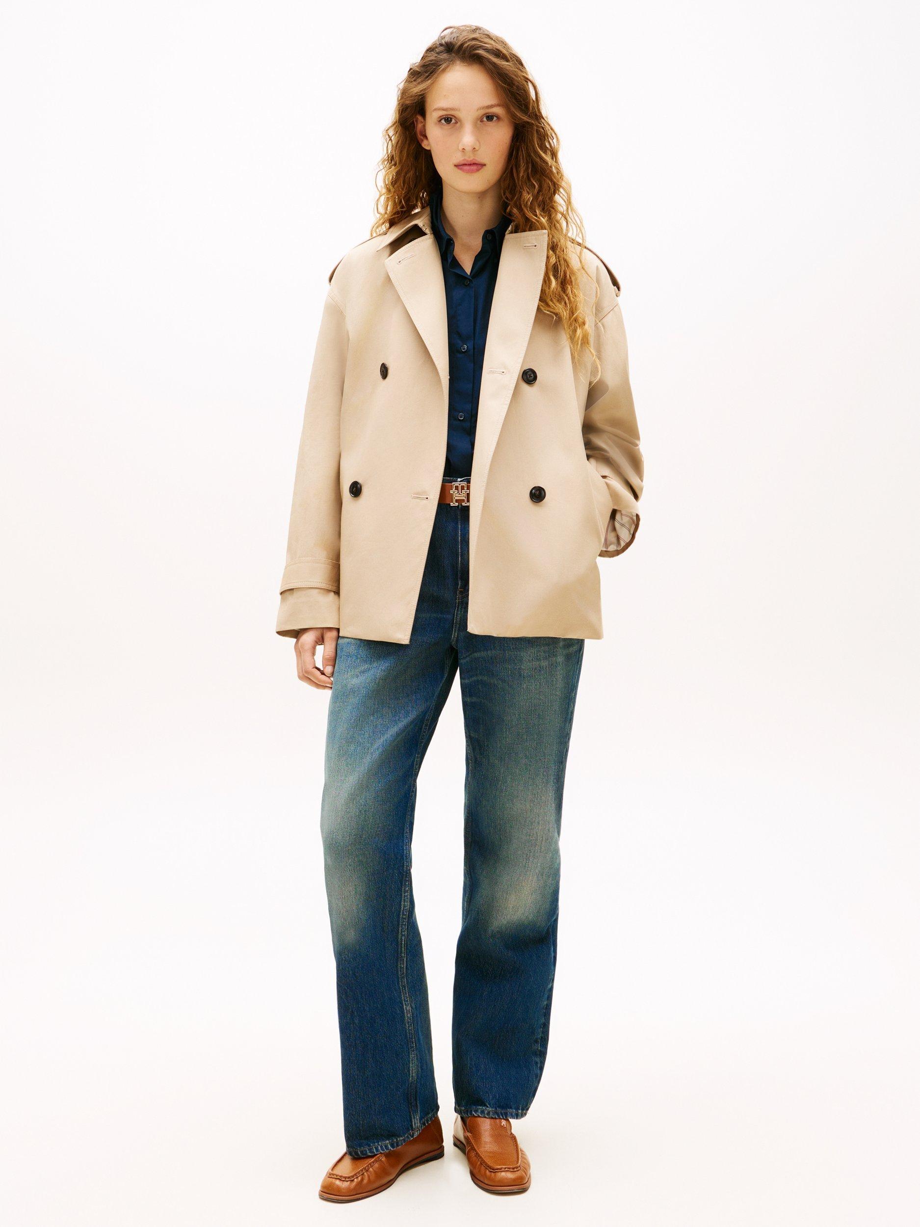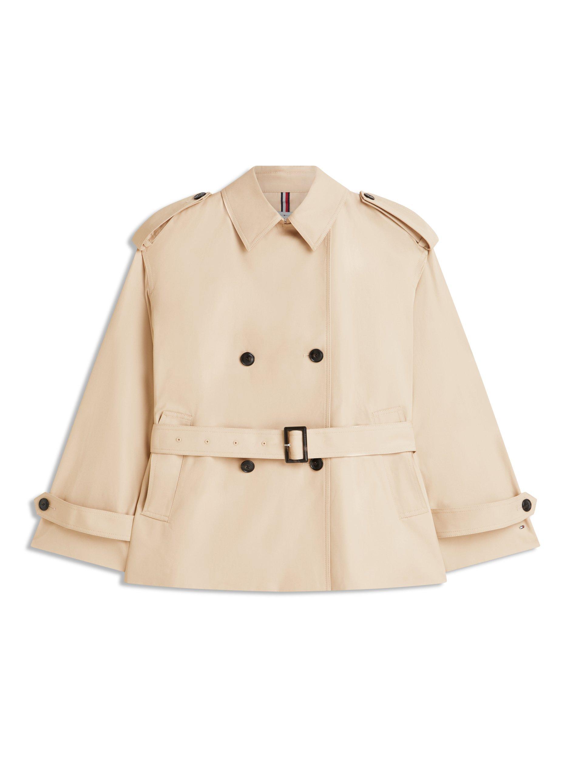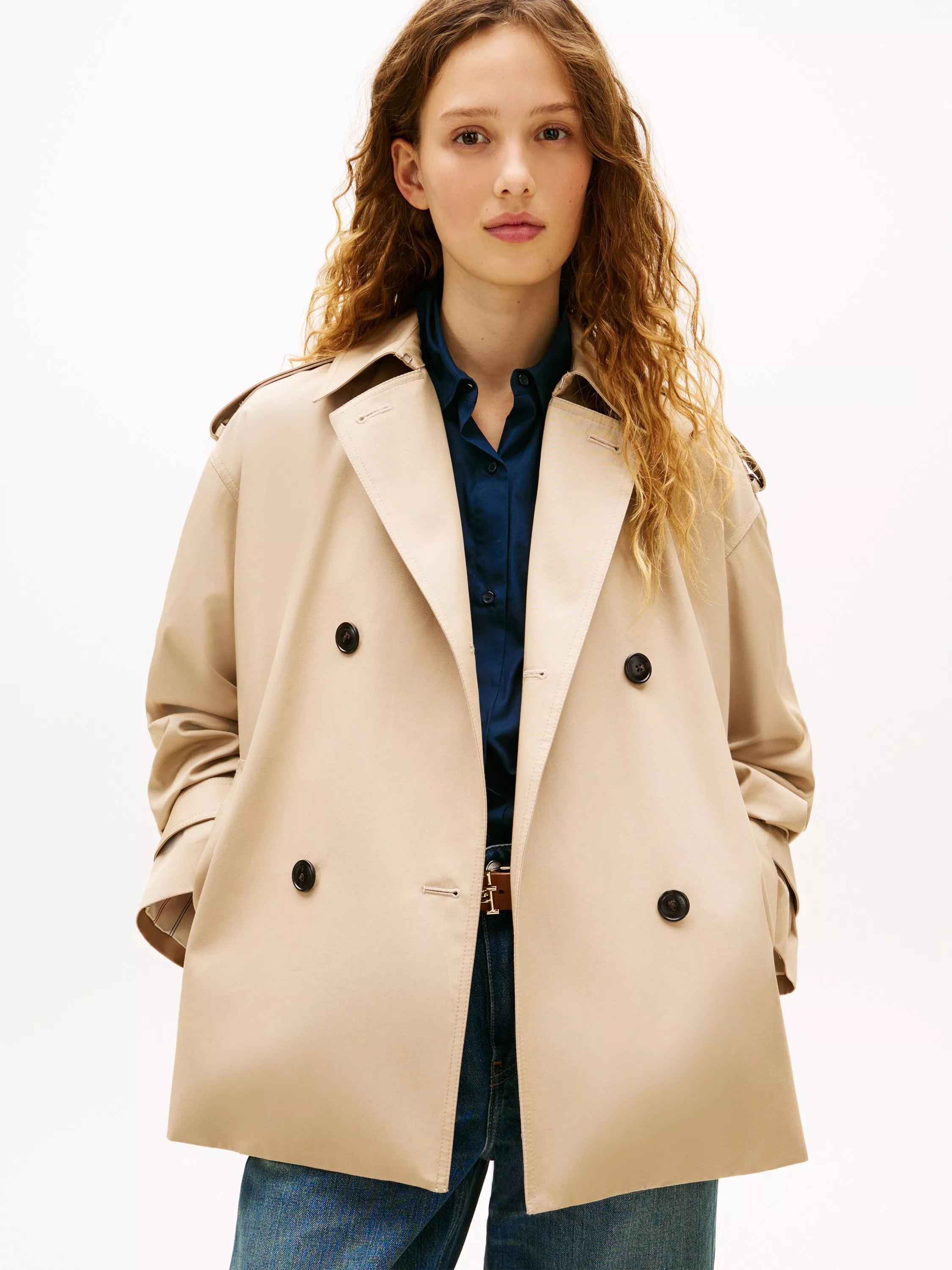 A relaxed silhouette and short length lend modernity to this trench coat, crafted from pure cotton twill with a water repellent finish.