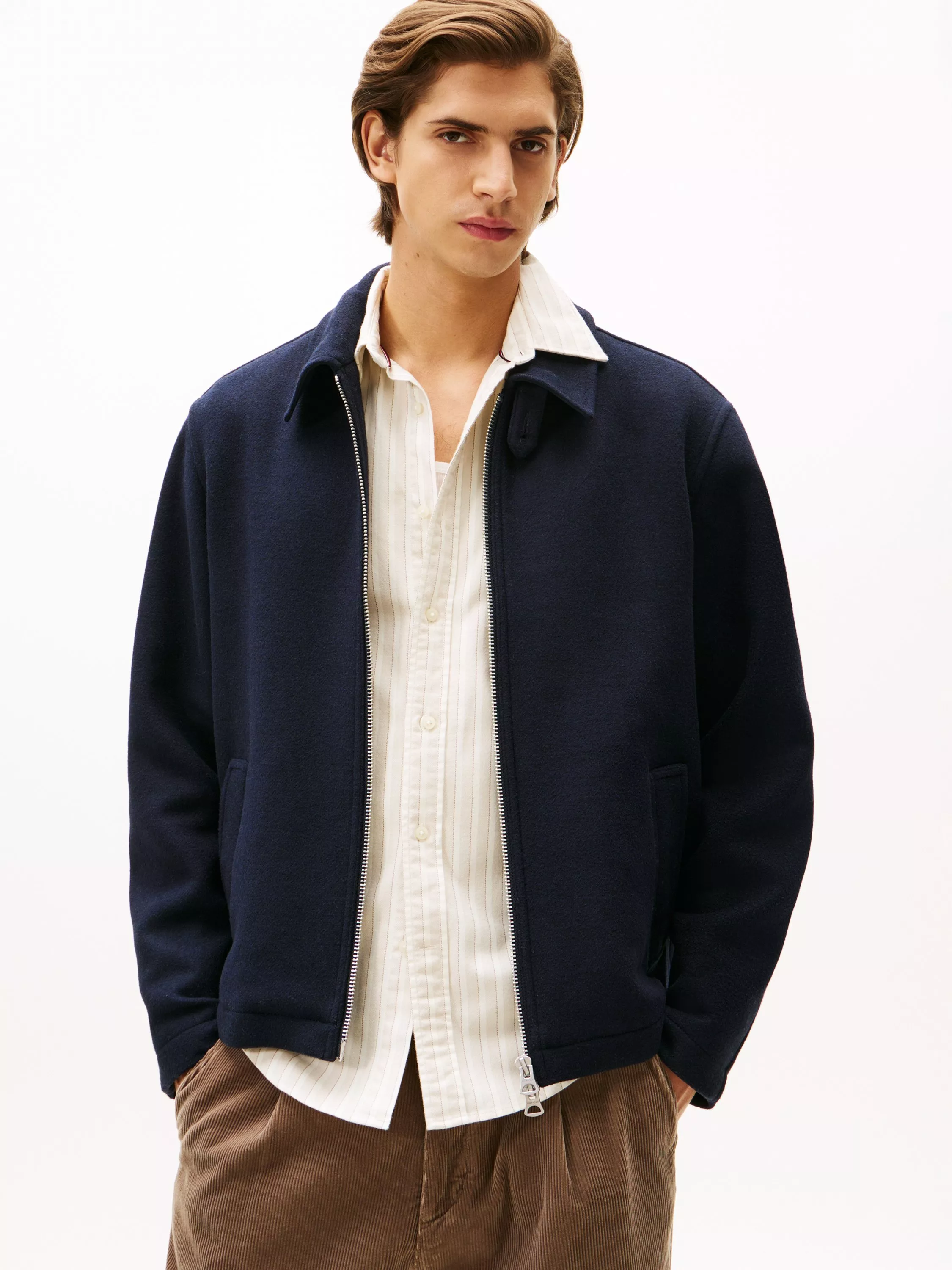 This smart jacket is made from a refined wool blend and features a premium tonal logo patch on the nape.