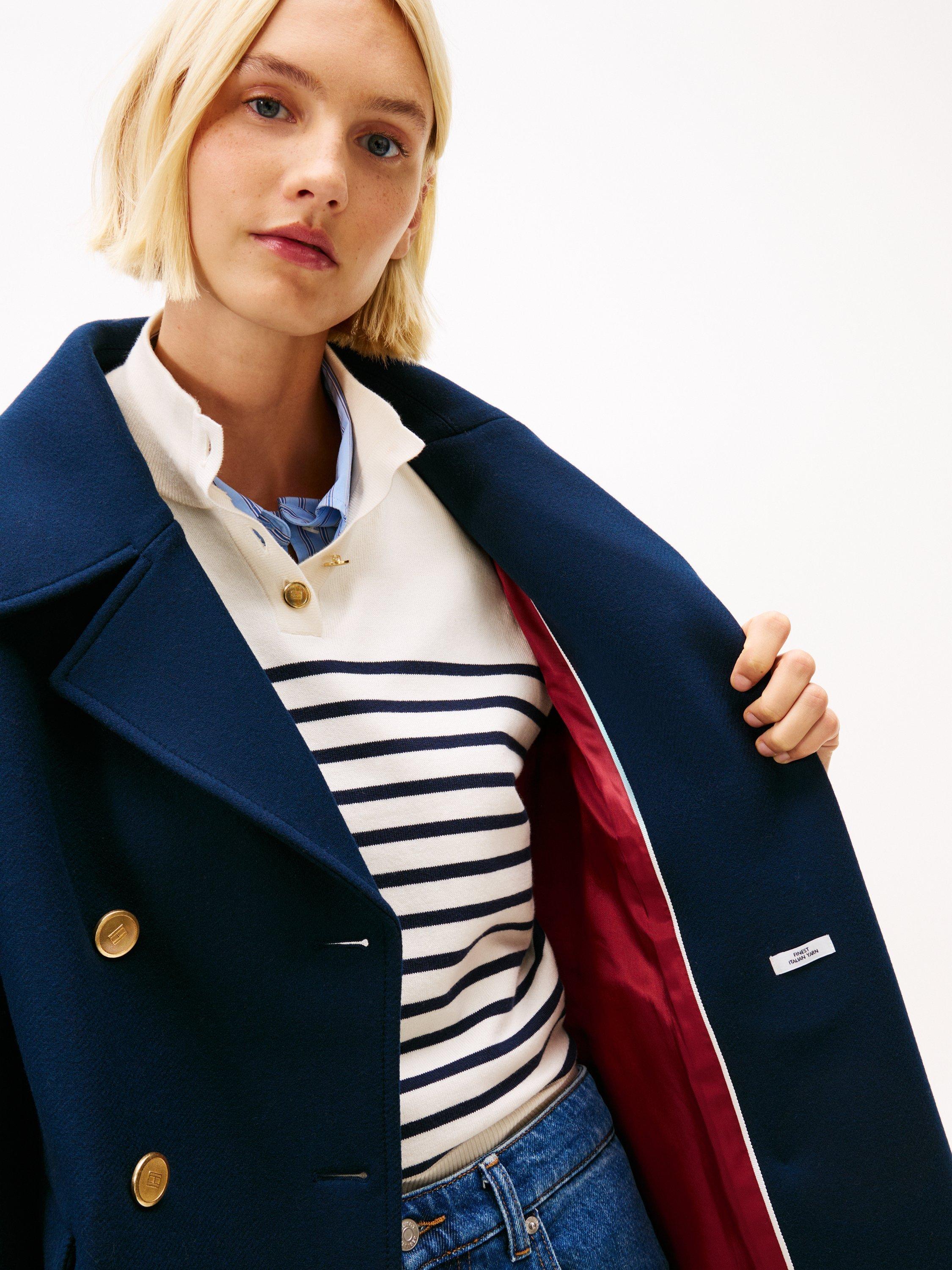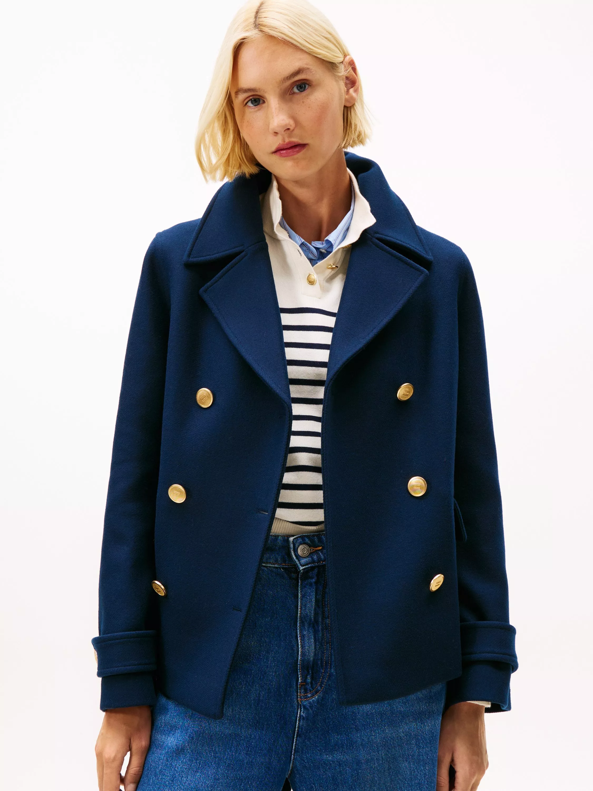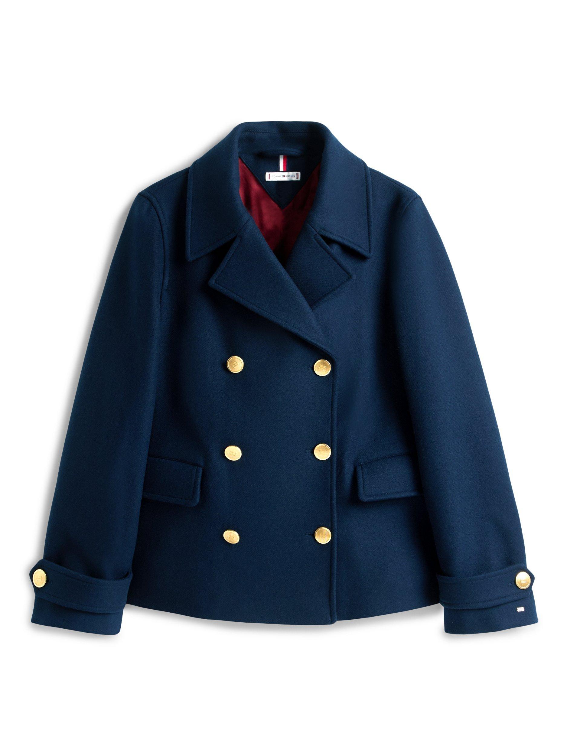 An outerwear staple for keeping out the chill, this pea coat from Tommy Hilfiger falls to a regular length.