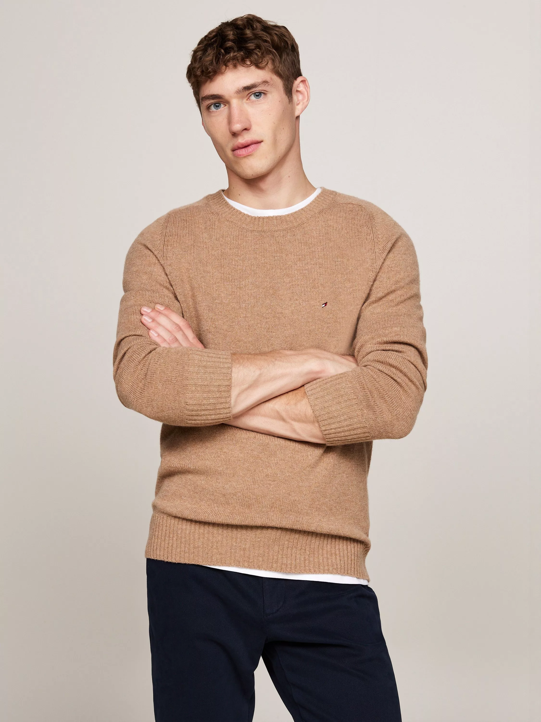 This regular-fit jumper keeps you comfortable while adding a sharp touch to your look. Medium-weight wool gives warmth when you need it most. The crew neck and subtle flag design suit any occasion with effortless style.