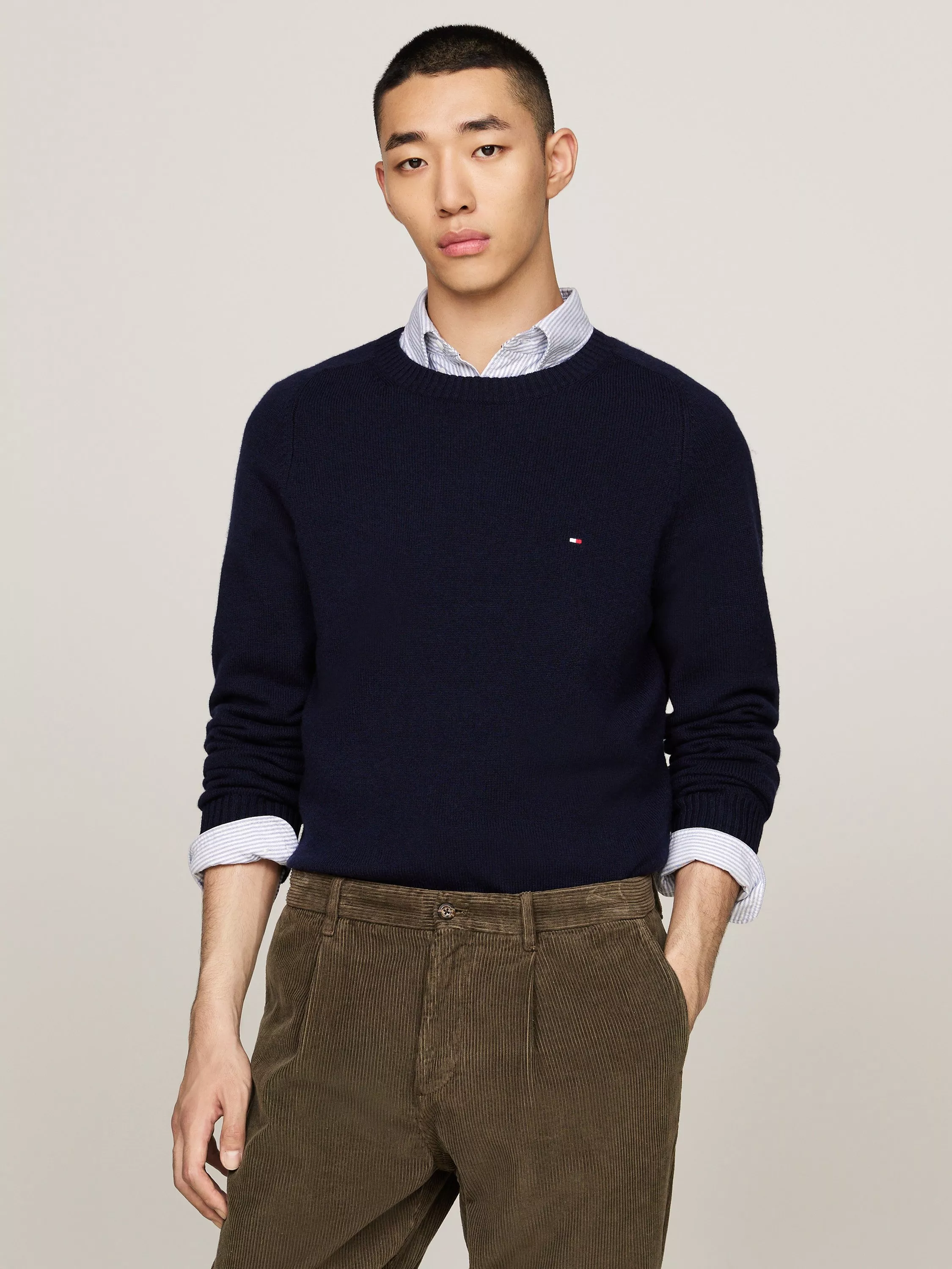 This regular-fit jumper keeps you comfortable while adding a sharp touch to your look. Medium-weight wool gives warmth when you need it most. The crew neck and subtle flag design suit any occasion with effortless style.