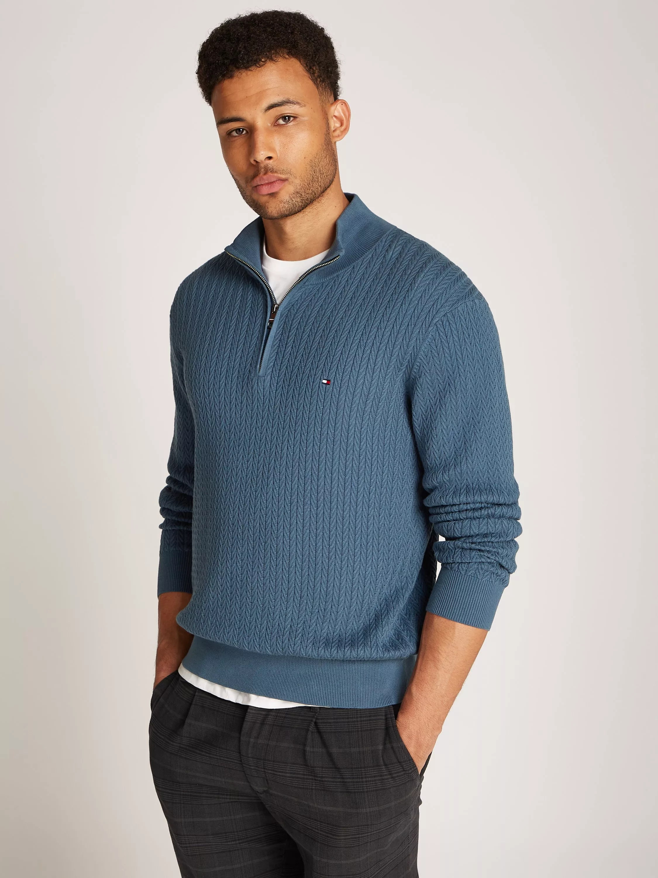 Half zip sweater from Tommy Hilfiger. Channel a relaxed aesthetic with this jumper that zips closed for extra cosiness.