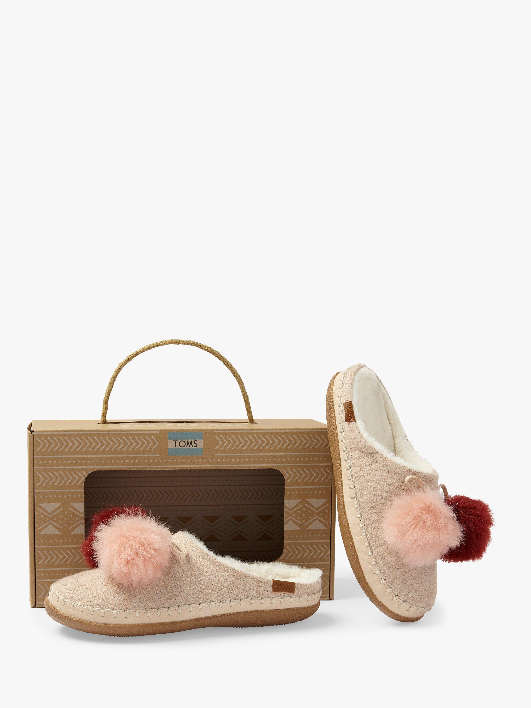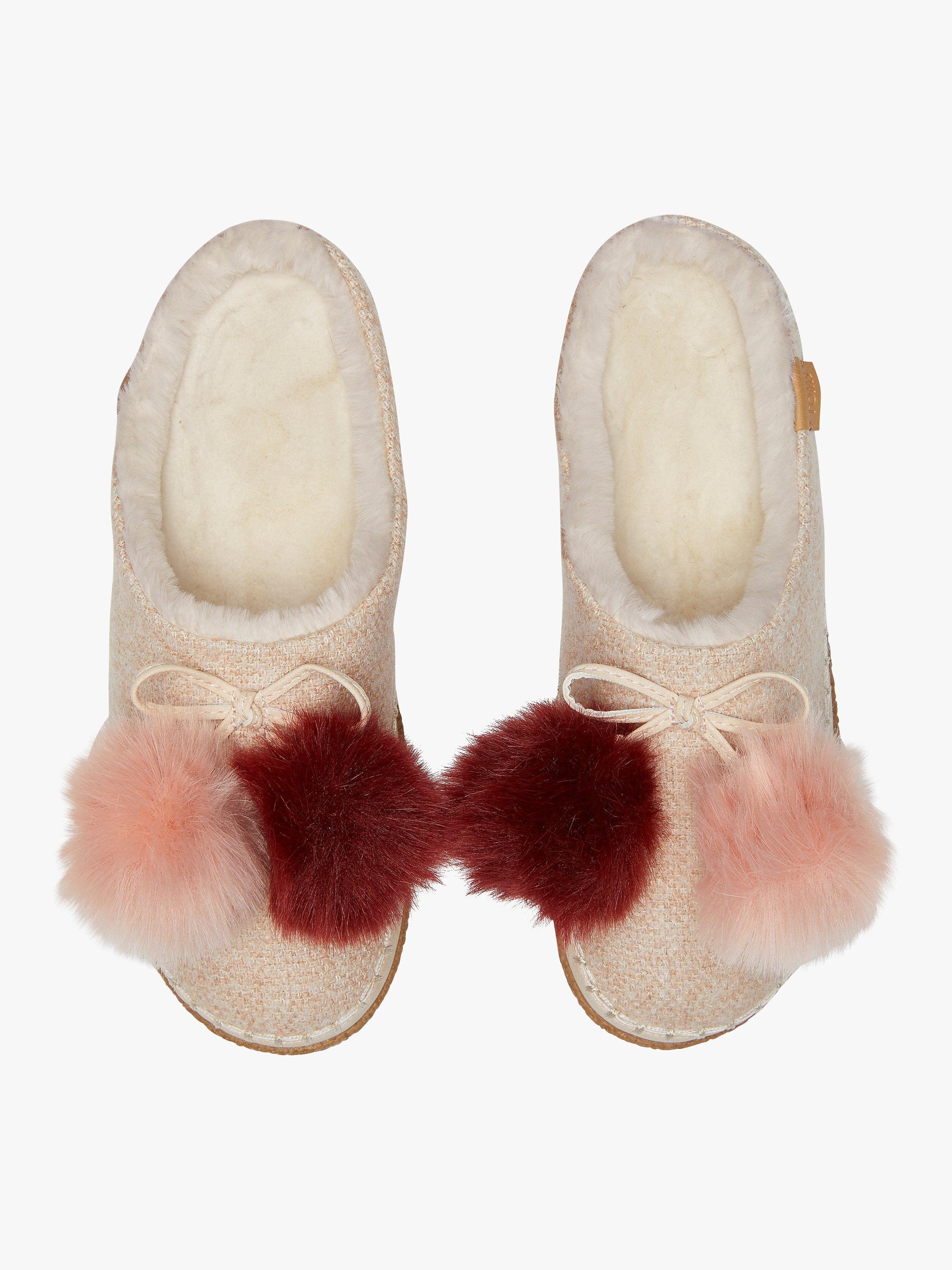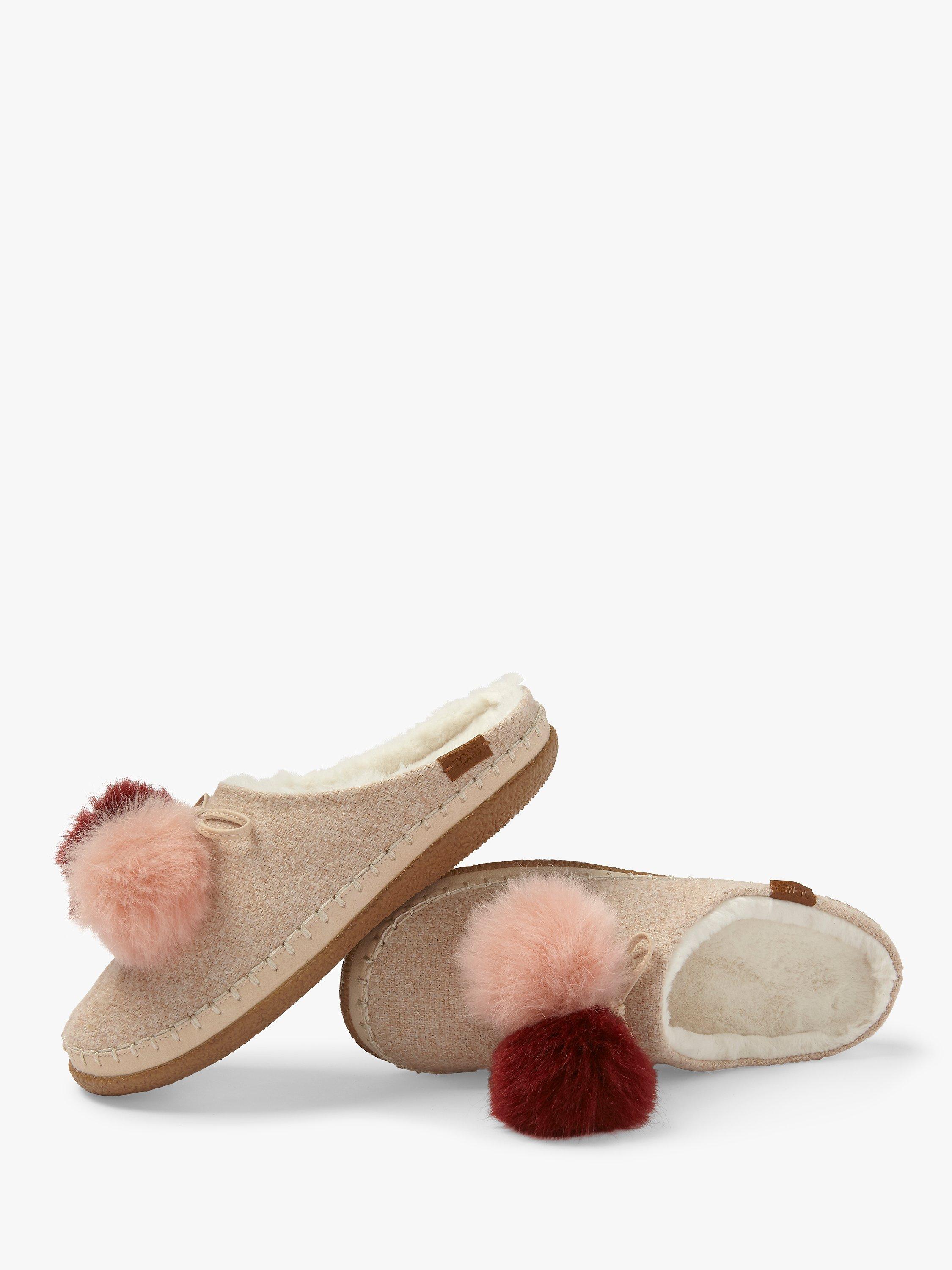 Add these cosy Pom Pom Mule slippers from Toms to your sleepwear wardrobe. Featuring a slip on, backless design with a spacious round toe, and a pom pom detail on the front.