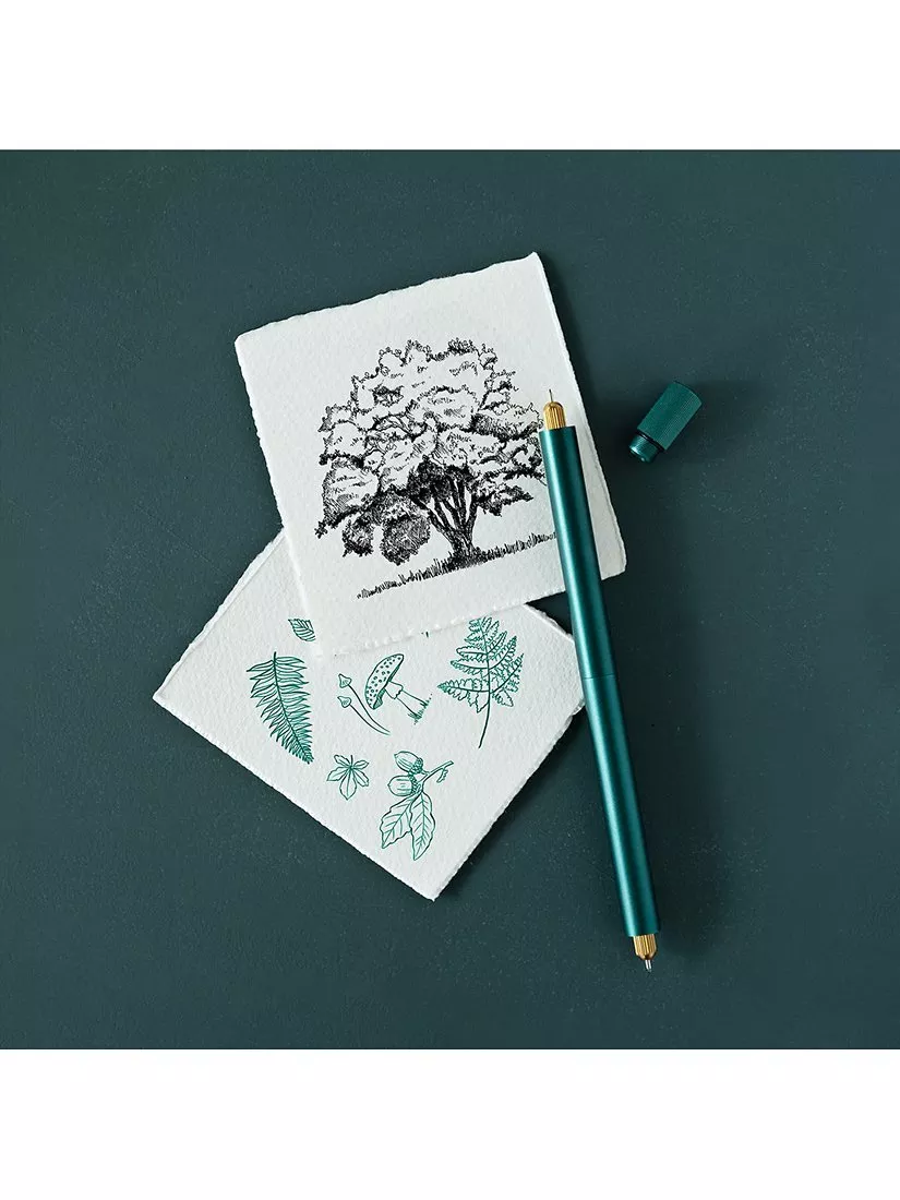 This innovative design with refillable reservoirs is incredibly versatile, the Japanese made tips of the pen can easily be changed to suit your drawing style and offers the ability to experiment with different drawing techniques like brush lettering, italic calligraphy, botanical drawing, architectural drawing, illustration, and the list goes on!