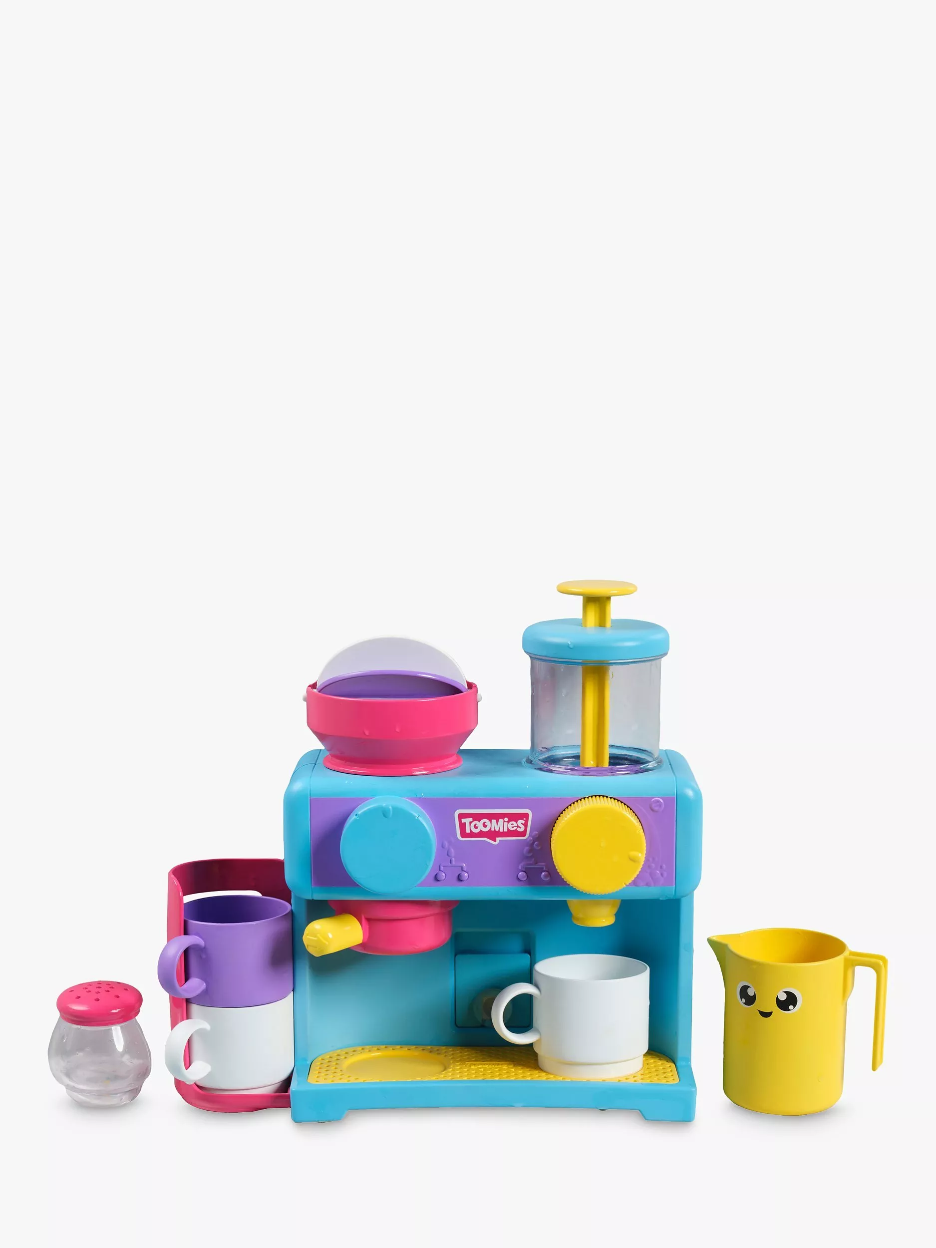 Just like grown-ups, little ones can experience the fun of the café for themselves. On the left is a spinner - place a cup under the filter and give the yellow handle a twist to serve up a classic cup of Joe! On the right is the handy foamer. Lift the lid, add in some bubble bath and water, then start pumping the yellow plunger to create oodles of frothy bubbles!