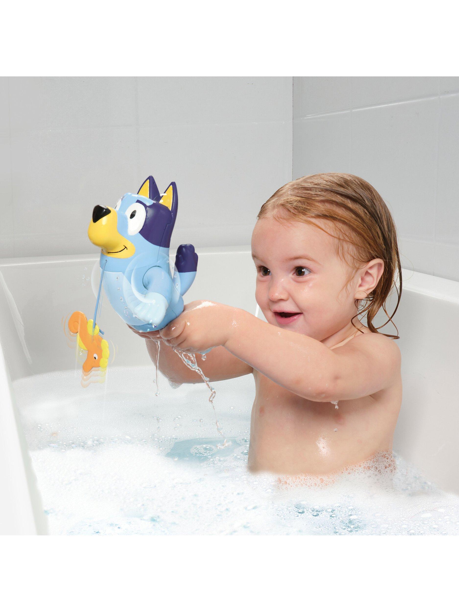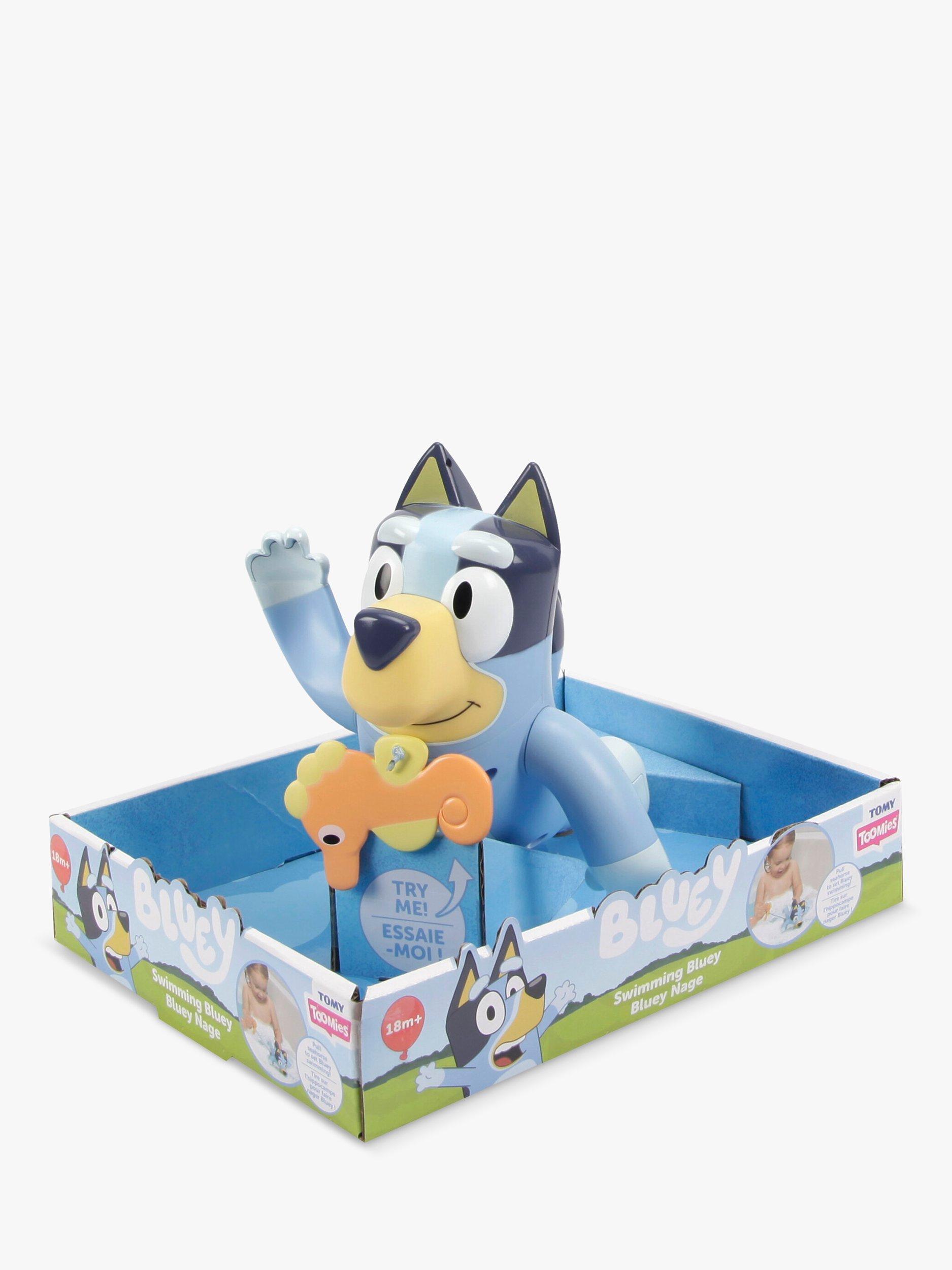 Let Swimming Bluey become a fun addition to every bath time. All kids have to do is give a gentle tug on Bluey’s seahorse friend to extend the cable – then let go. Watch as Bluey’s arms start wheeling round and she starts swimming like she’s scared of a silly blue whale! Place her face down in the water and she’ll do front crawl. Flip her over and she’ll show you backstroke.
