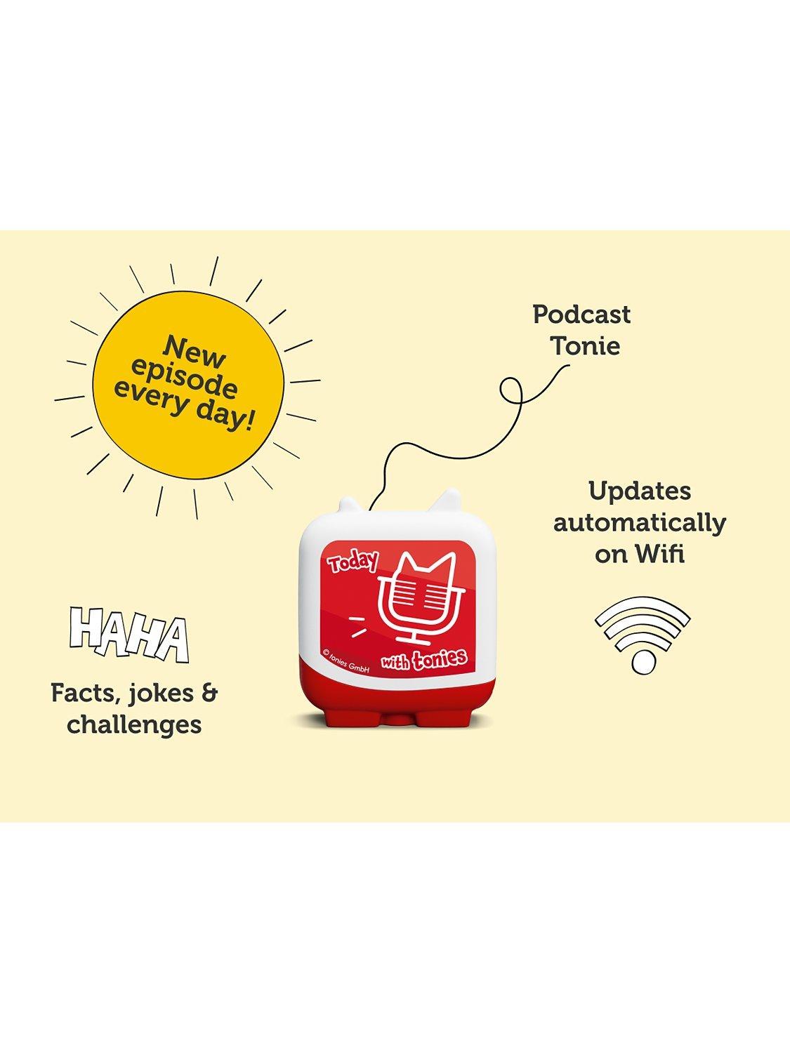 This little Tonie is updated daily with 10 minute podcast-style shows packed full of fun, facts, challenges and jokes for kids aged 4+.