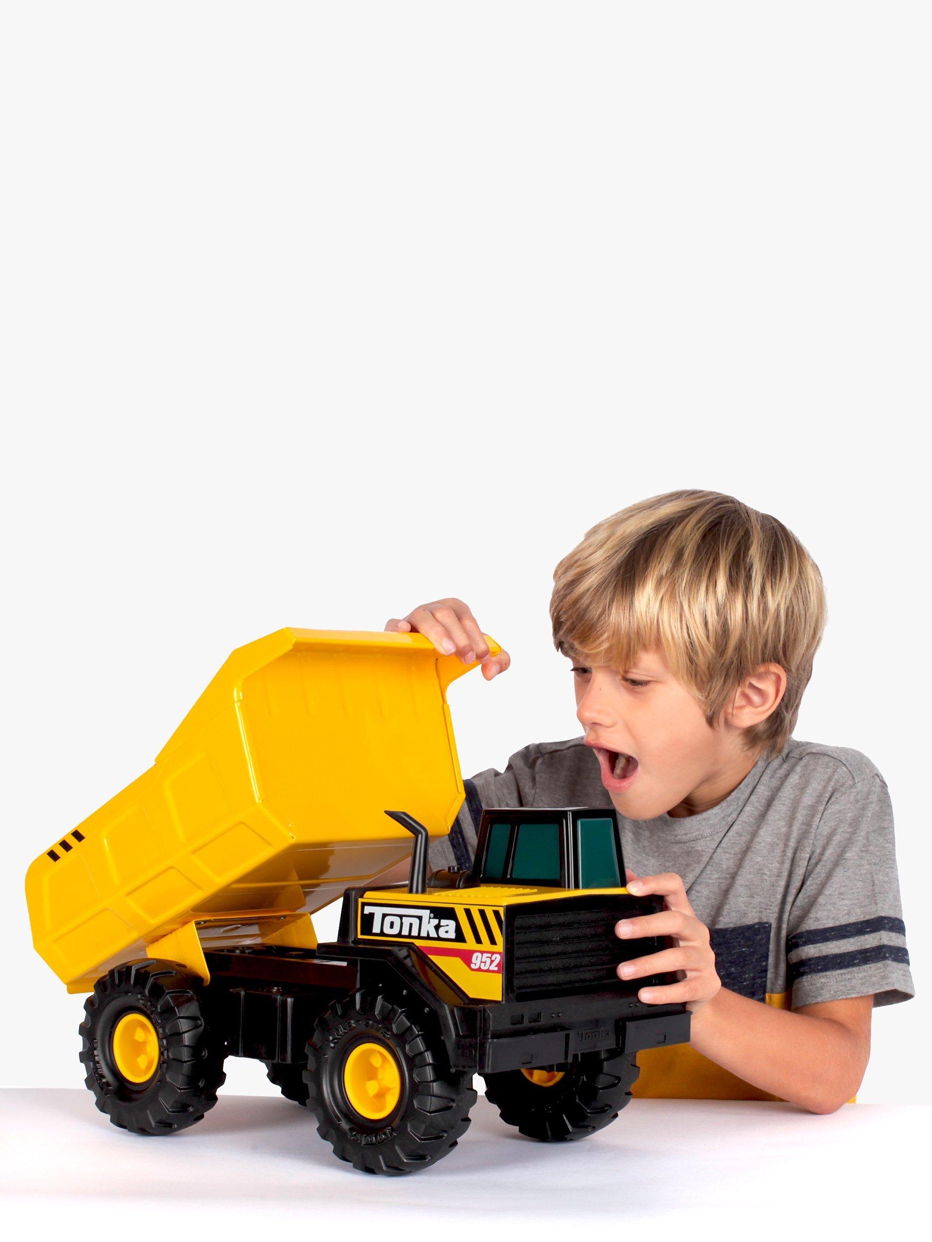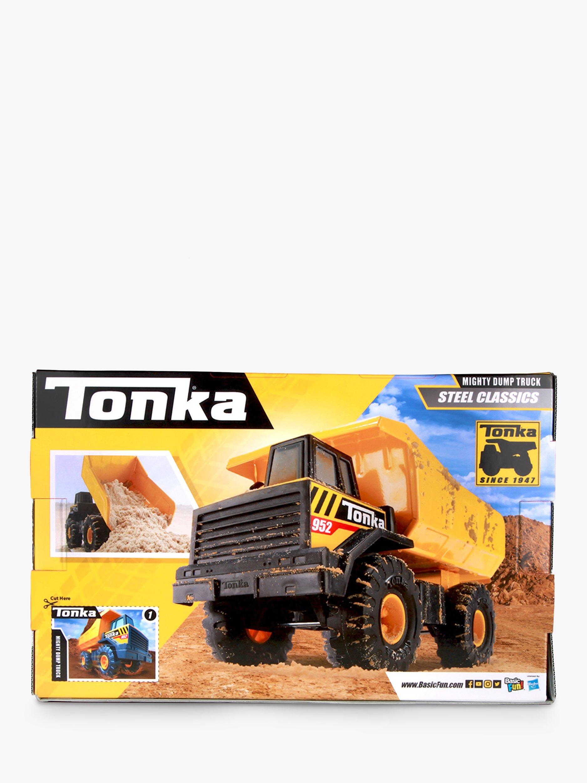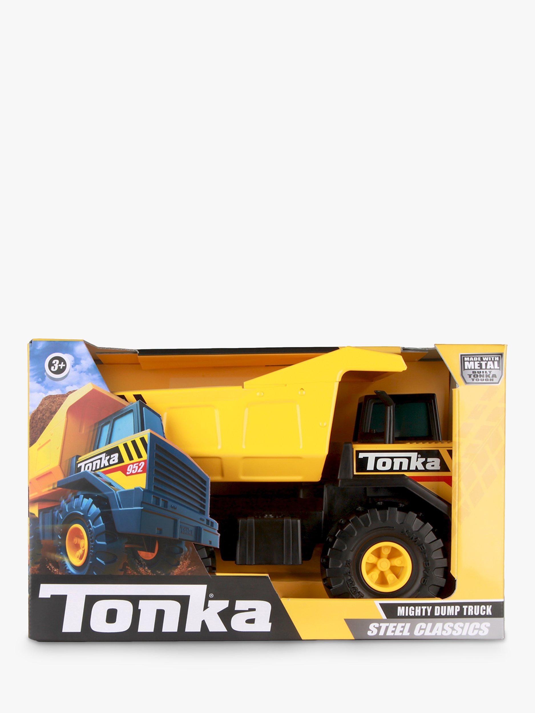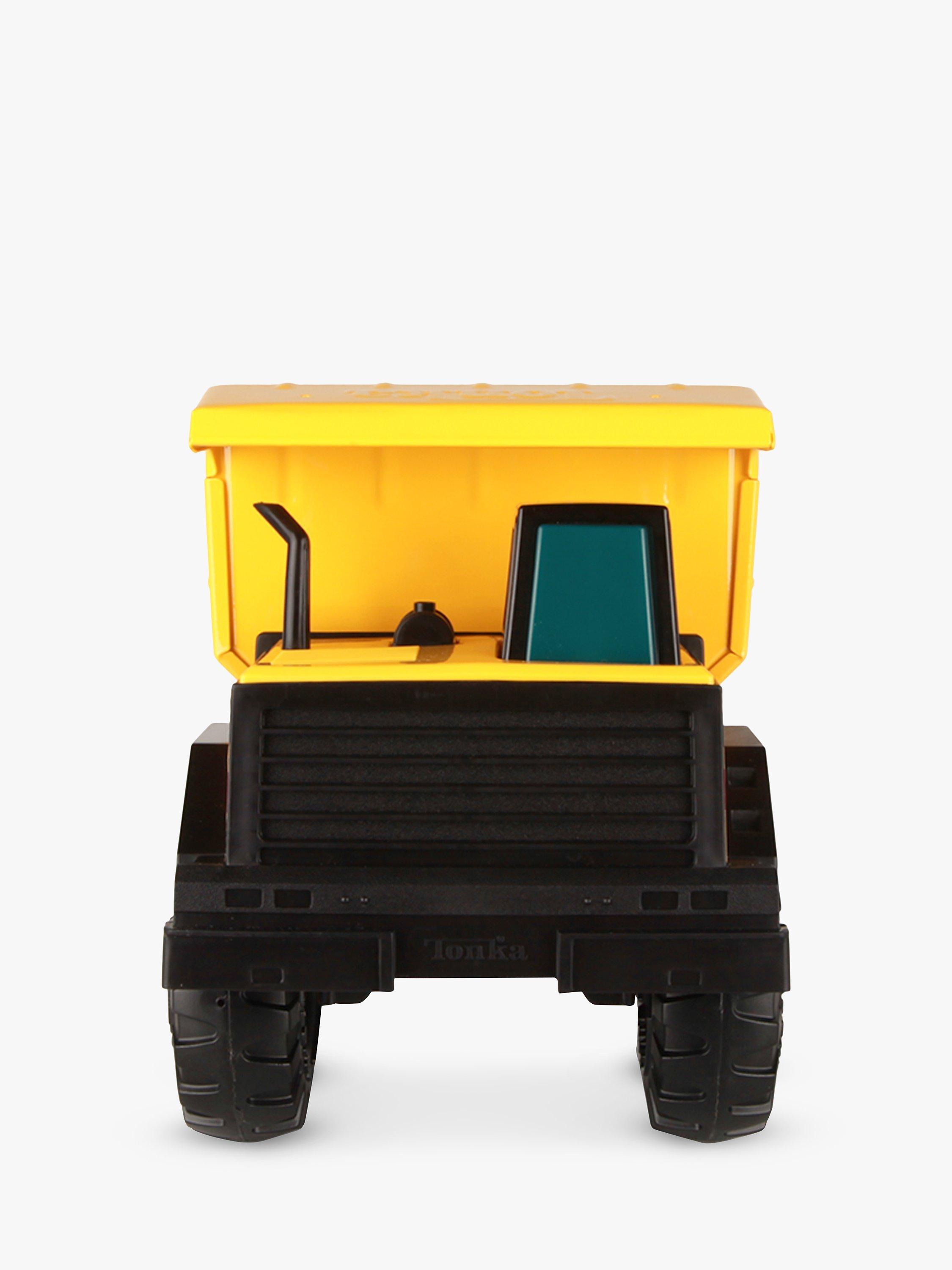 Tough and built to last, the classic Tonka Dump Truck has a steel cab and movable steel rear tipper. Coming in trademark Tonka yellow with big sturdy wheels, this is a dump truck which will withstand hours of active play.