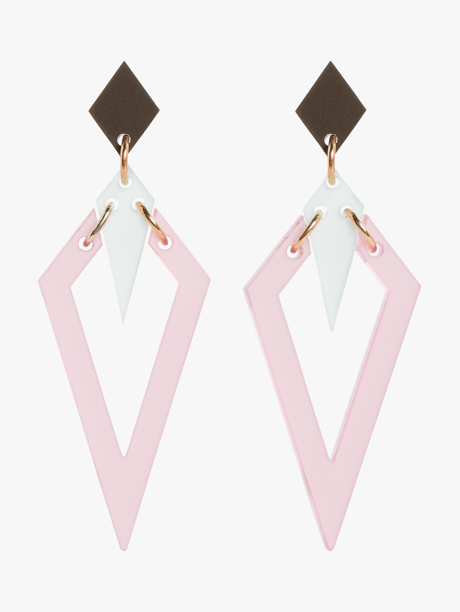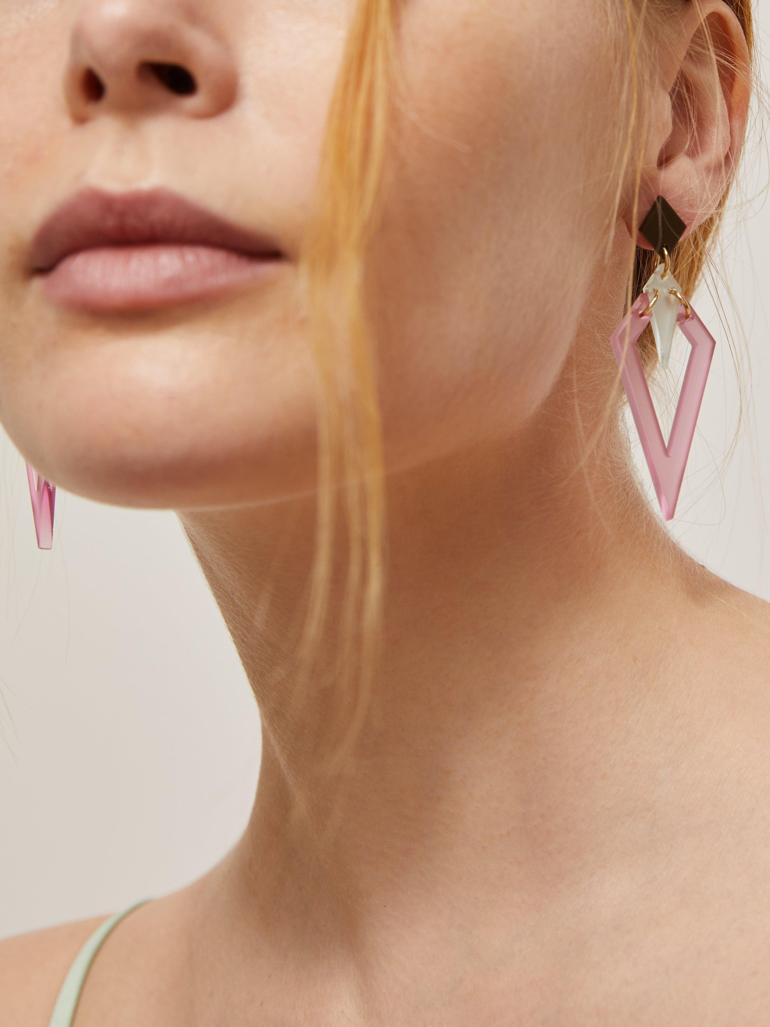 Edgy and attractive, these Toolally Arrow Heads drop earrings offer the perfect party look. The pair makes join two arrowheads together resulting in a pleasing negative space which is both bold and elegant. The earrings have traditional post fittings that are for pierced ears only.