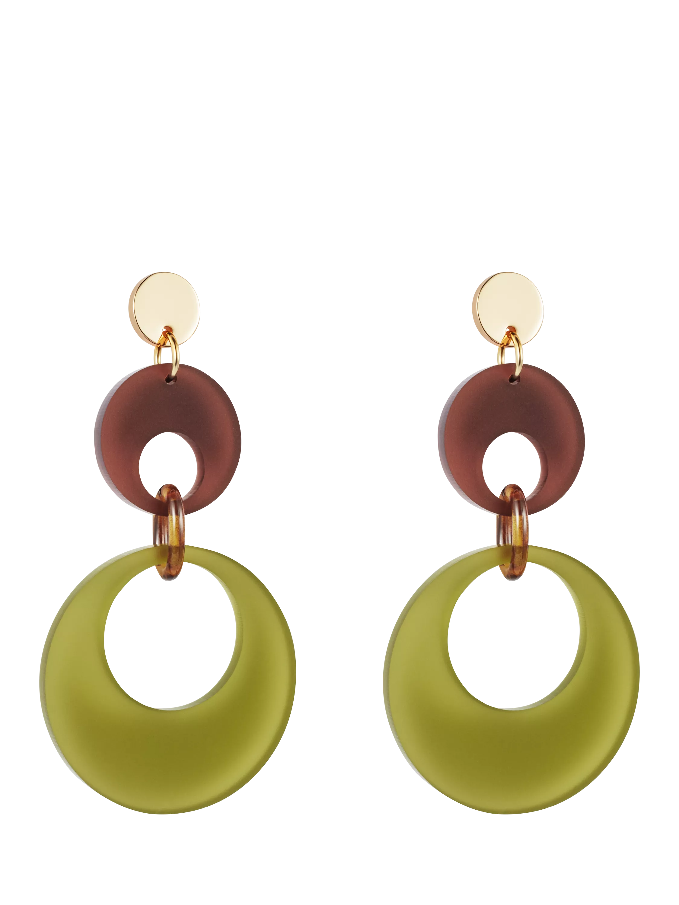Toolallyx Laura Whitmore Swinging Circles Drop Earrings, Brown/Green/Gold