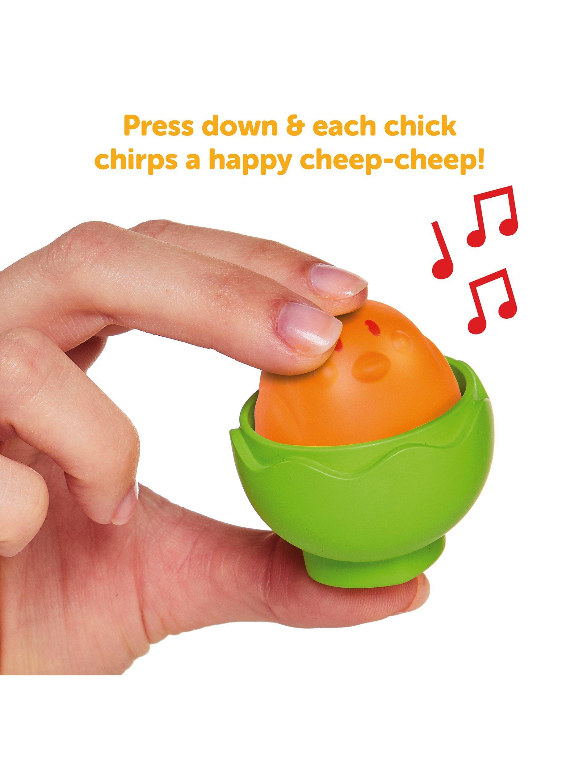 There’s much more to these Egg Stackers than the sum of their parts. Each egg comes apart to reveal a cheeping chick inside that children as young as six months will find fascinating. Small enough for little hands to handle, they’ll enjoy reassembling the shells, exploring the contrasting, curious faces and discovering their egg cup bases.