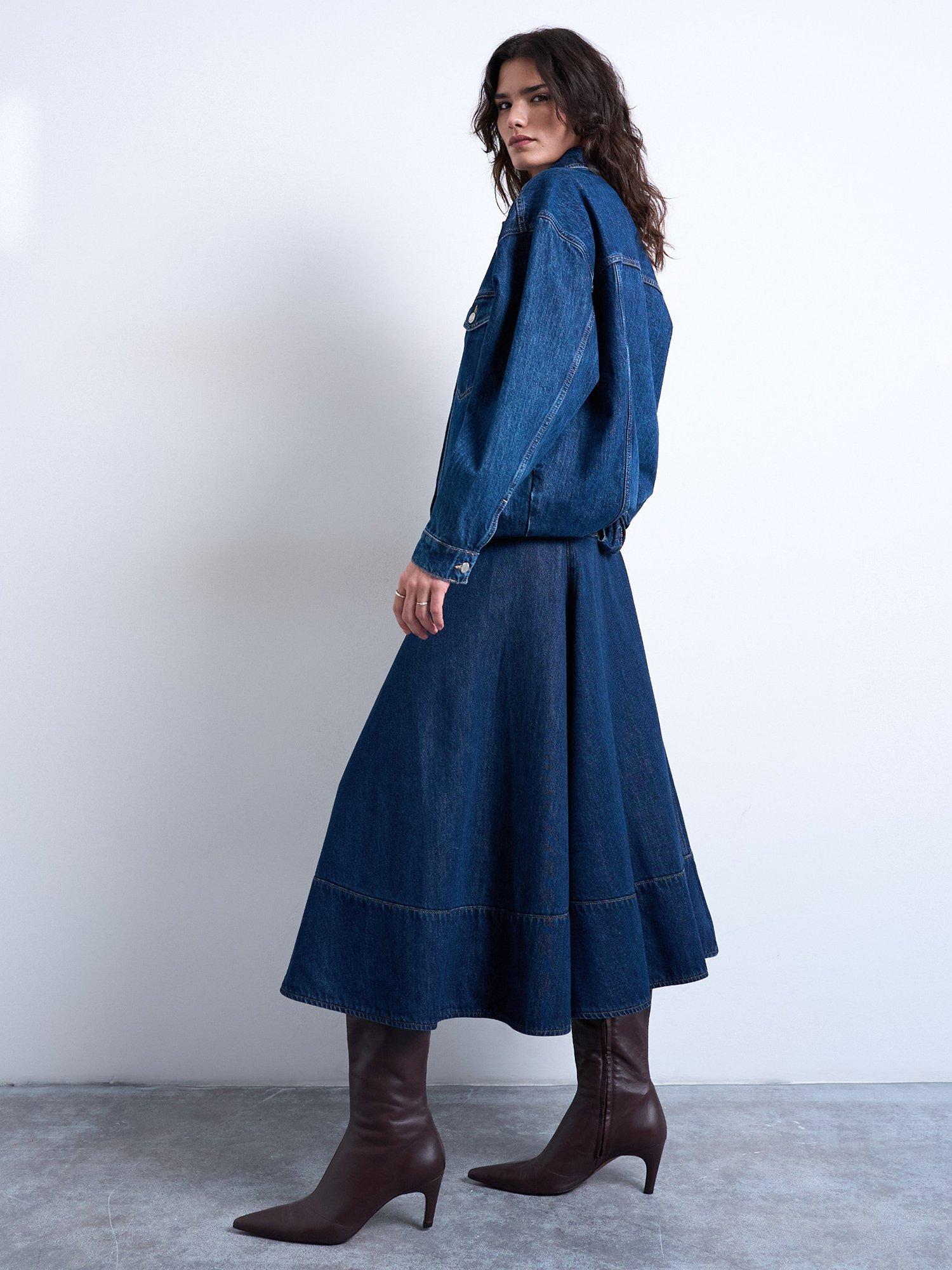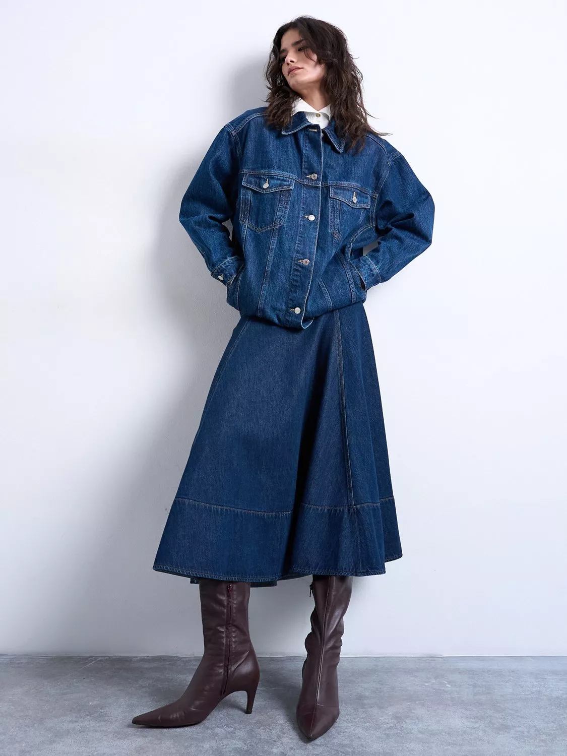 A denim maxi skirt by Topshop, designed for everyday comfort and easy movement. Its mid-rise, A-line shape pairs effortlessly with anything you love.
