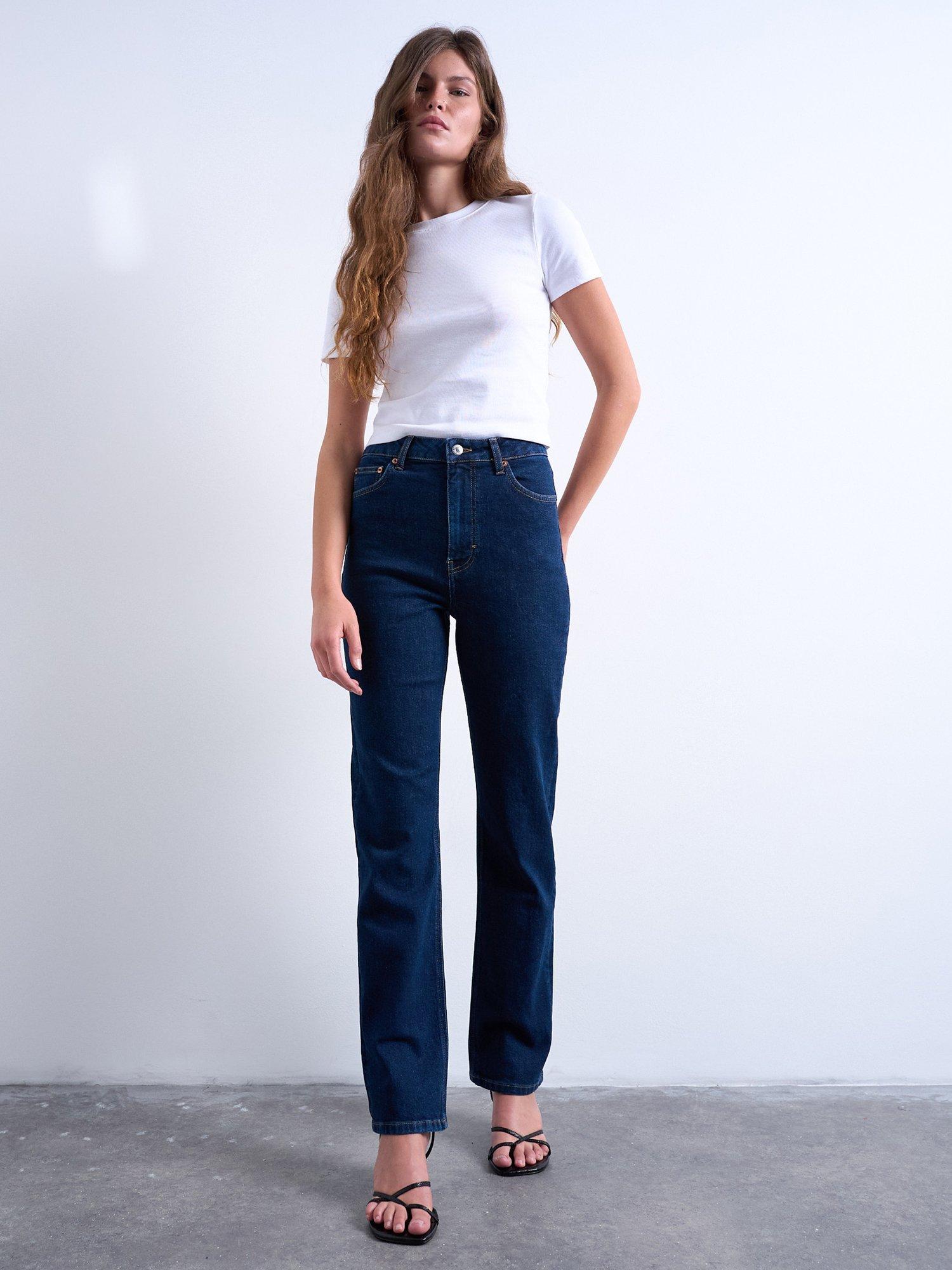 A pair of everyday slim-leg jeans from Topshop. Sculpted from denim featuring a mid rise and a button fastening, they fall to a regular length.