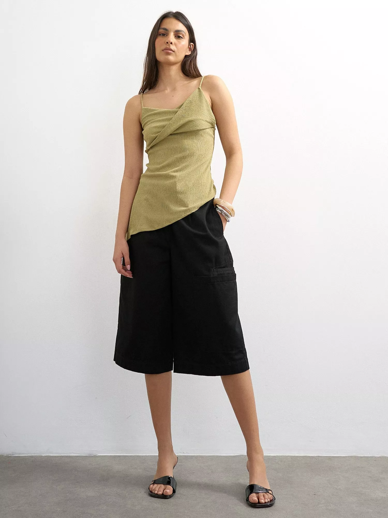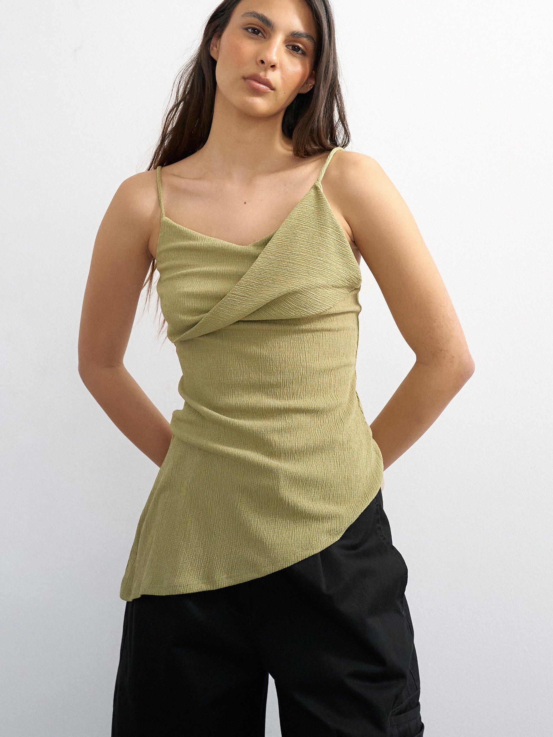 A textured fold-over detail cami by Topshop. With a cowl neck, the sleeveless design keeps you comfortable, while the regular fit pairs easily with anything. Made for easy days and endless sunshine.