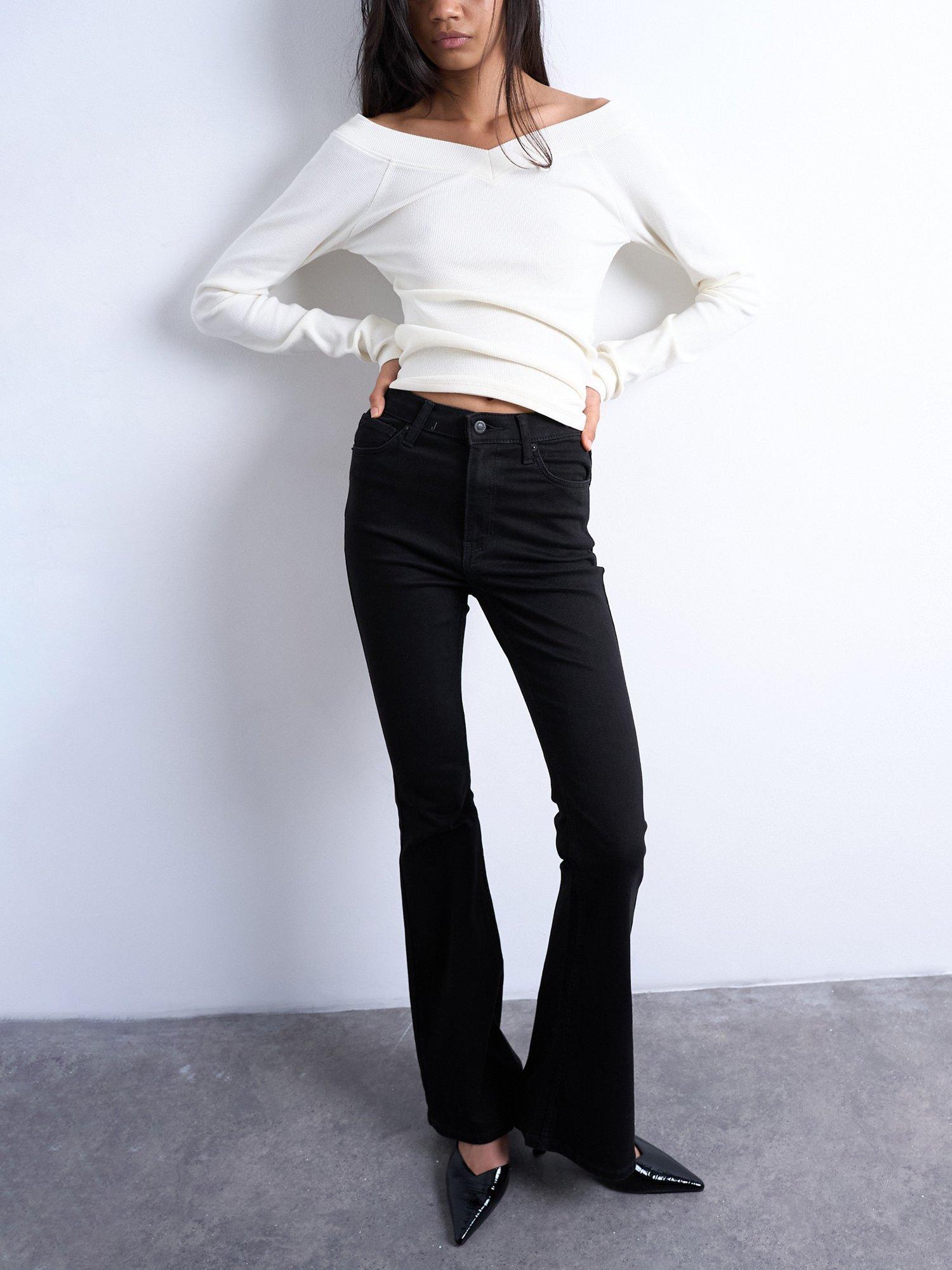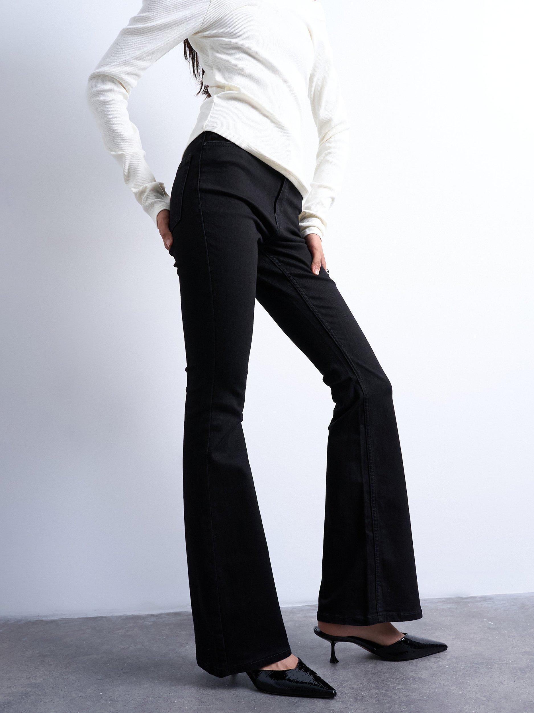 A pair with plenty of flair, this regular-length style from Topshop is made in soft denim with a high rise and a classic button and zip fly.