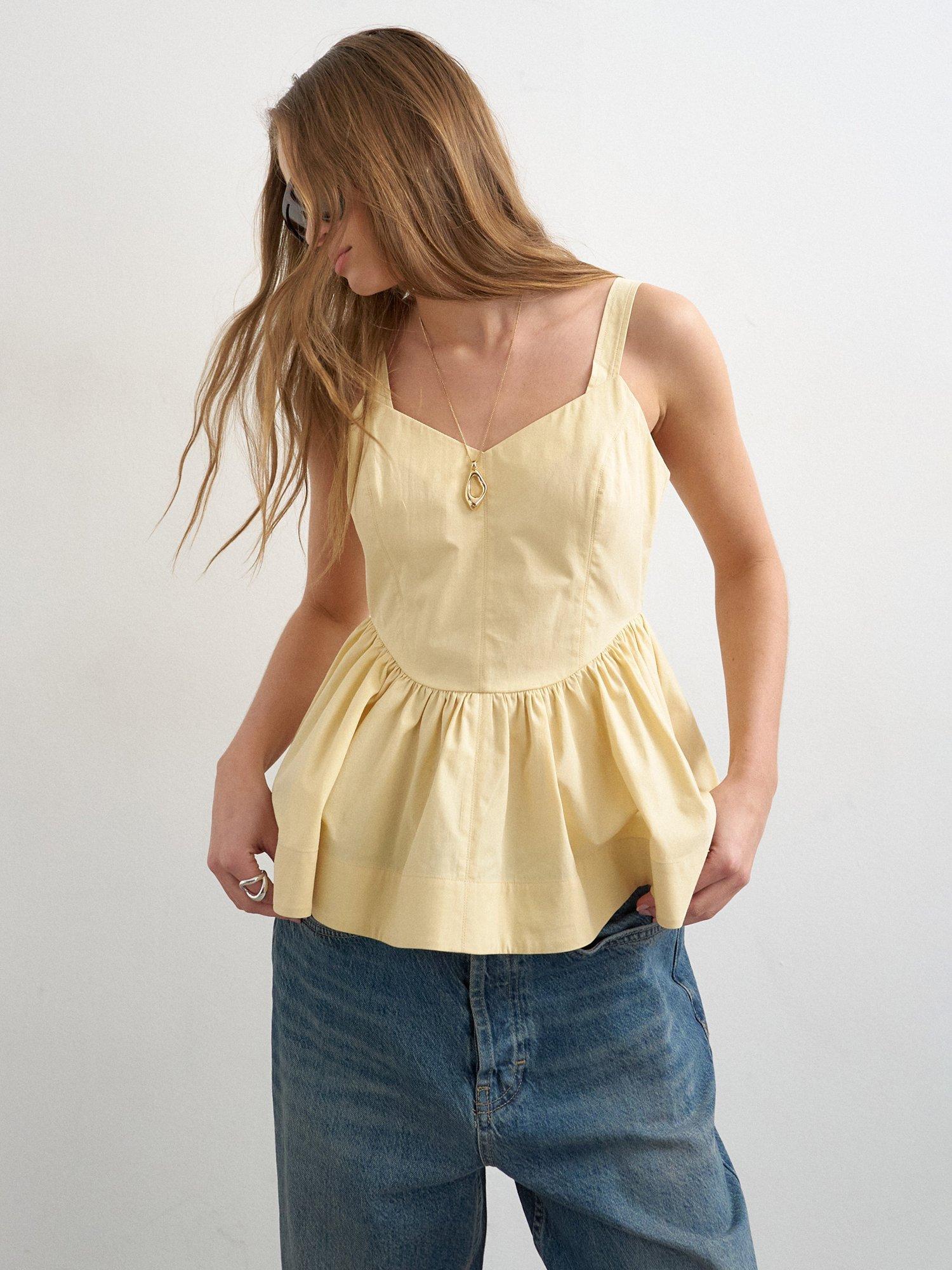 This sleeveless peplum top pairs a sweetheart neckline with soft cotton, bringing comfort and style to your summer or daytime plans.