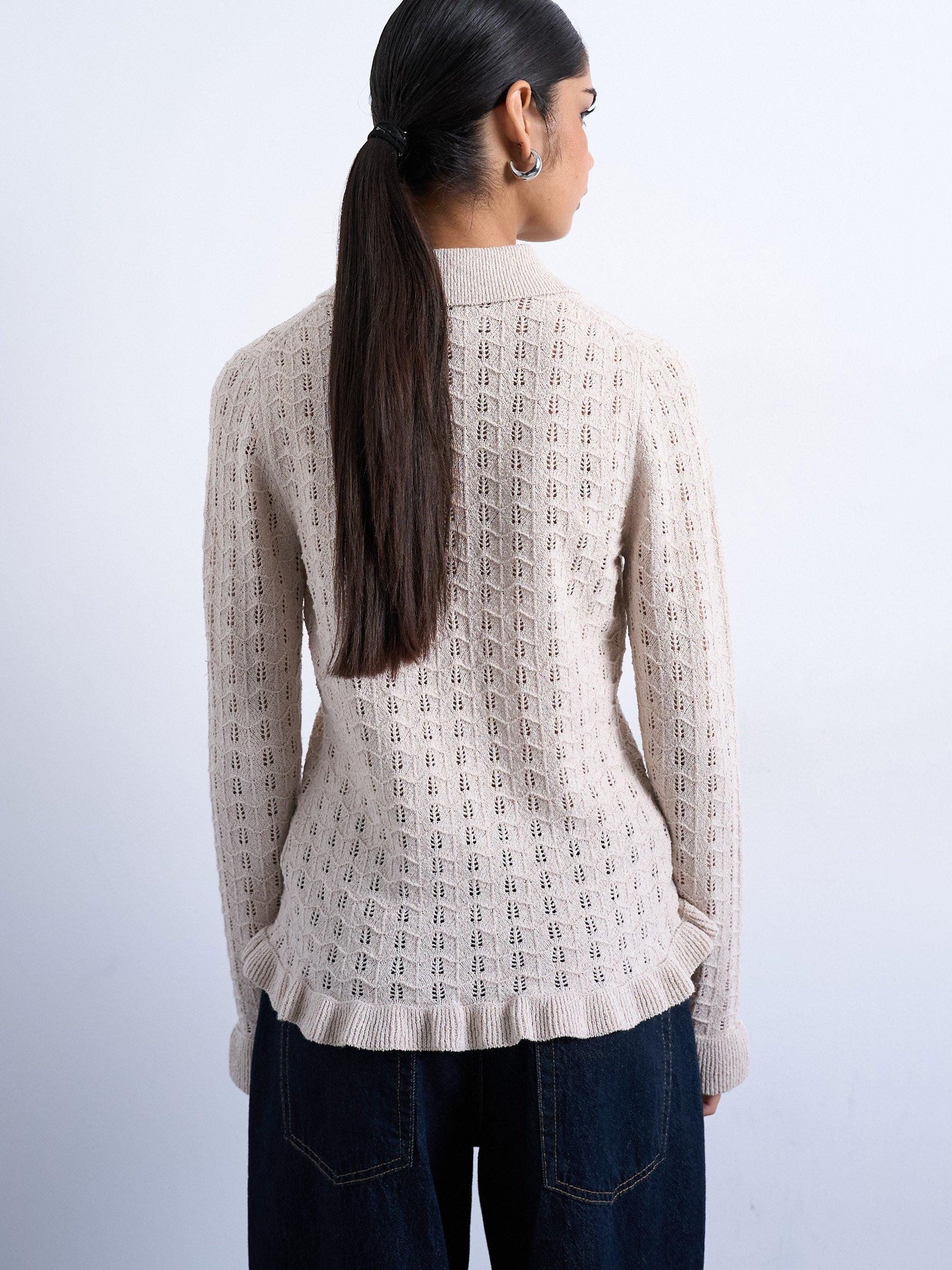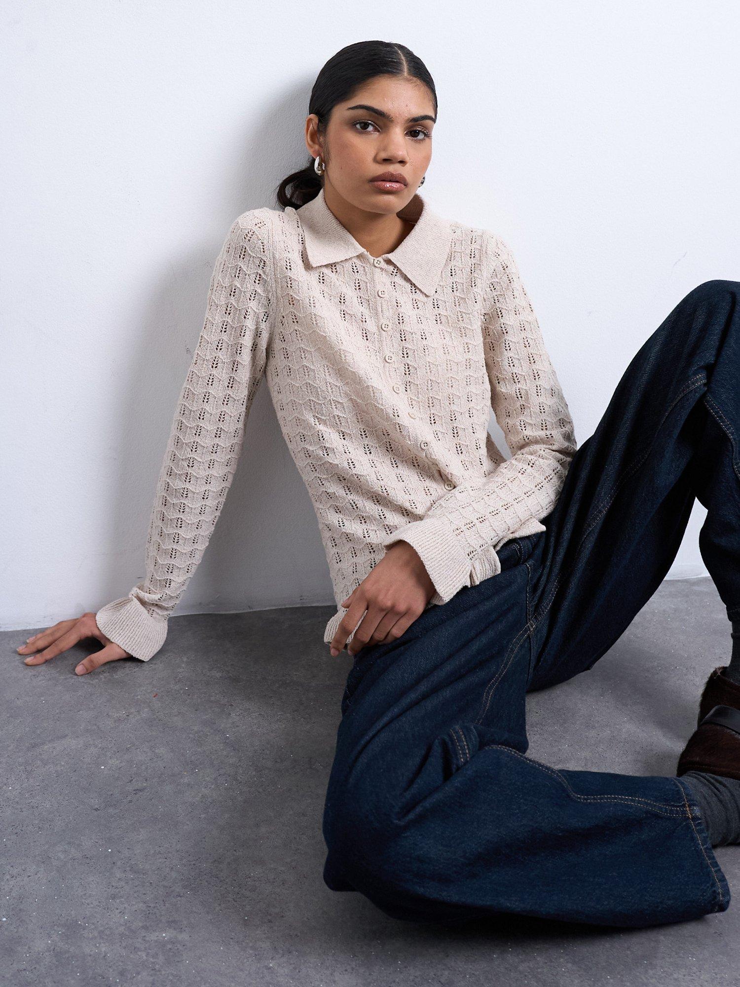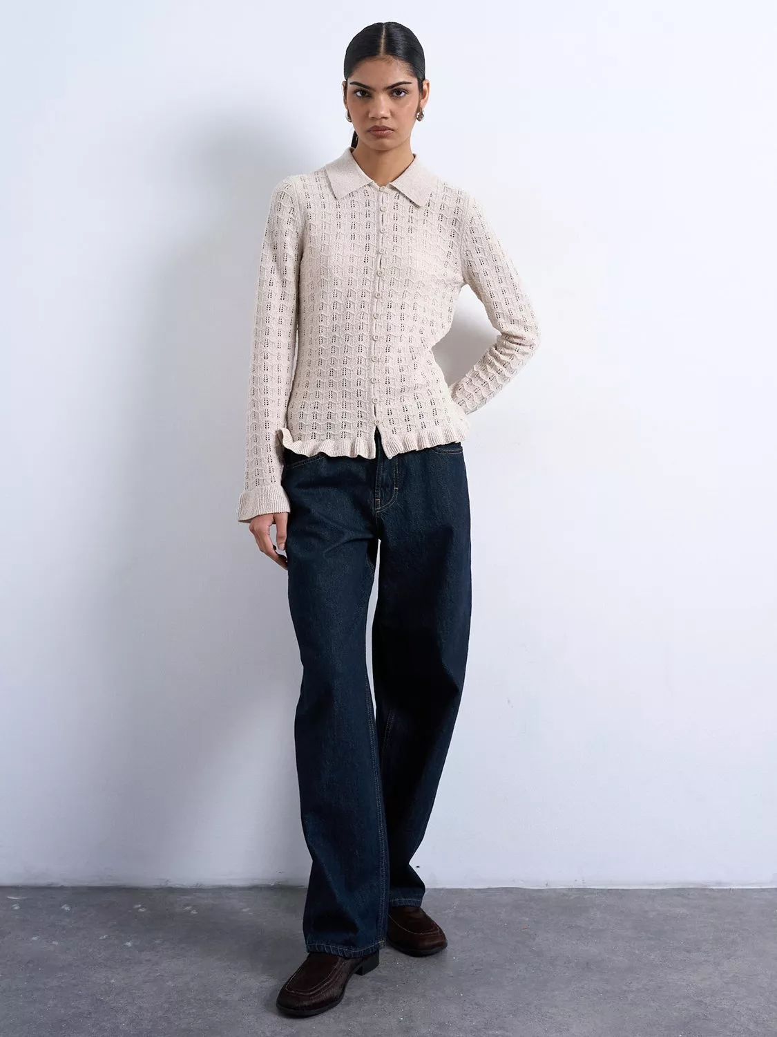 This Topshop shirt adds a touch of character with its ruffles and textured pointelle finish. Keep comfortable and stay sharp whether at work or out with friends, thanks to its cotton-rich blend and easy button neck design.