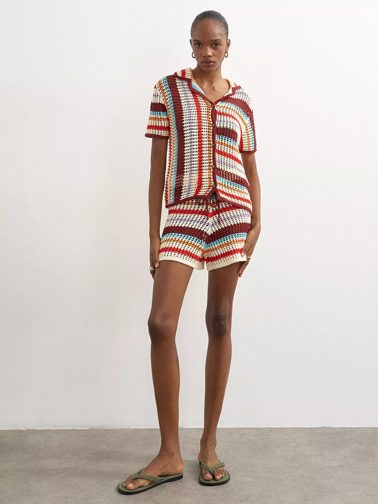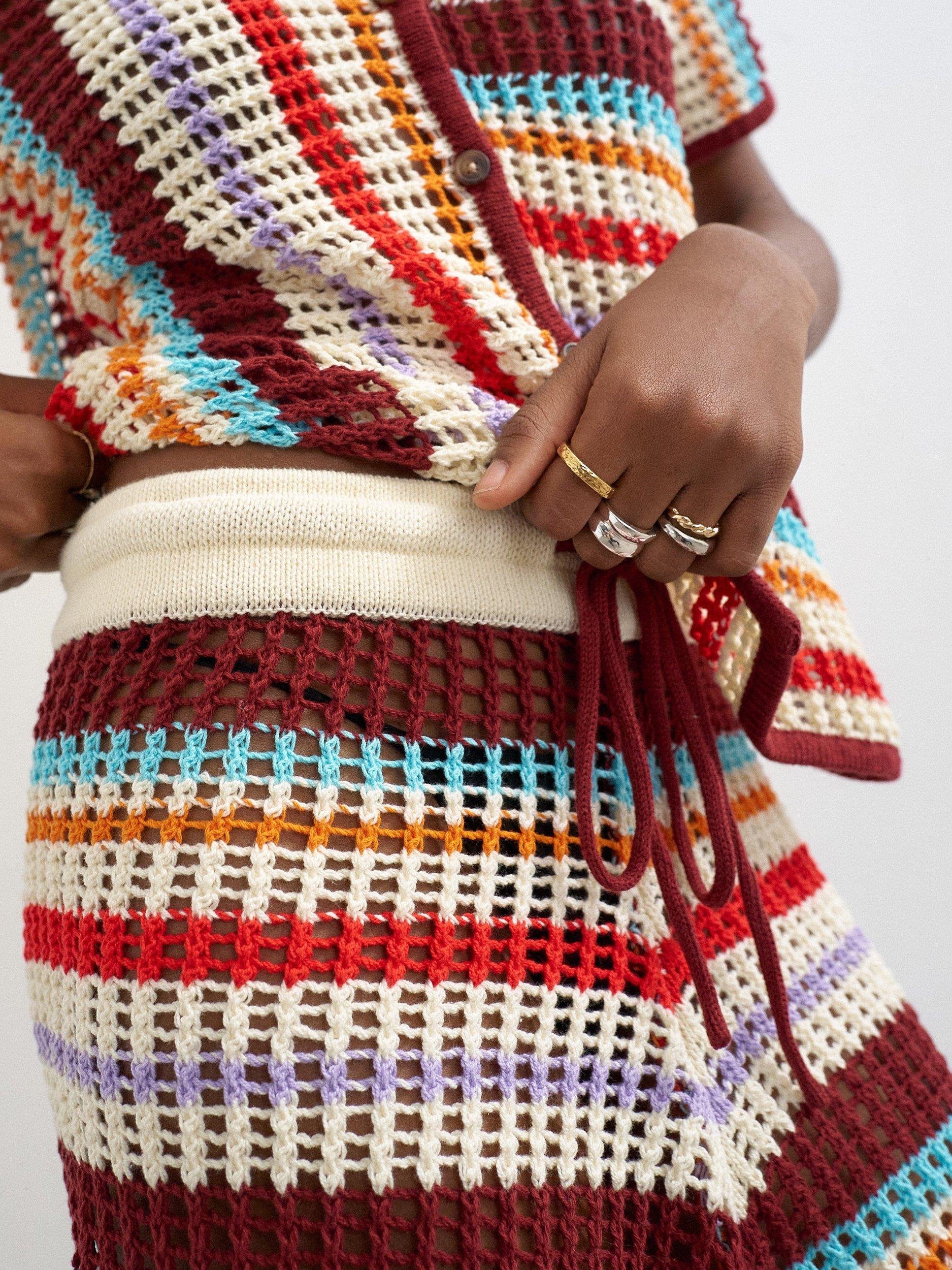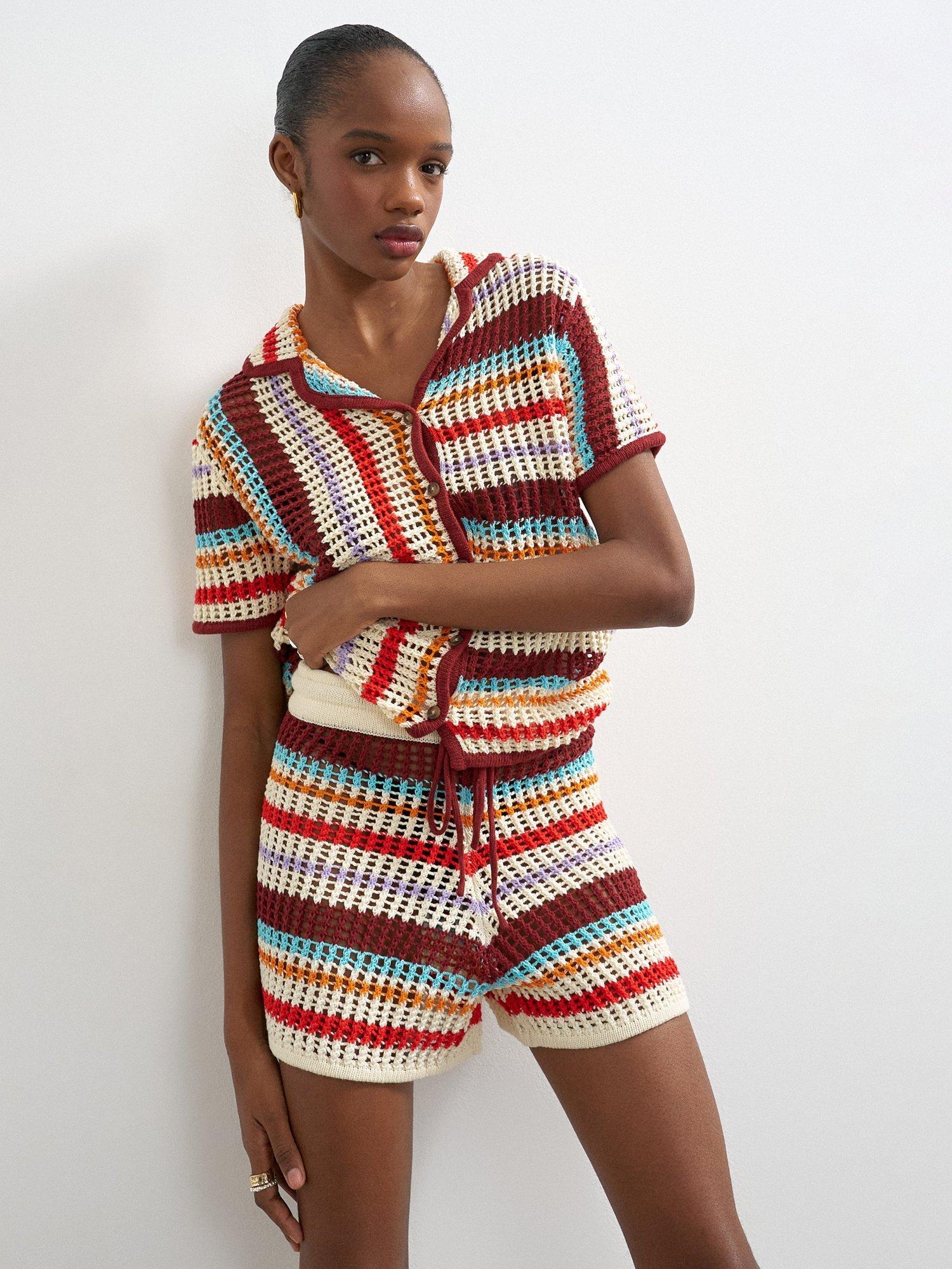 Topshop mid-rise crochet shorts. The regular fit and striped pattern give you freedom to move, made for easy days and endless sunshine.