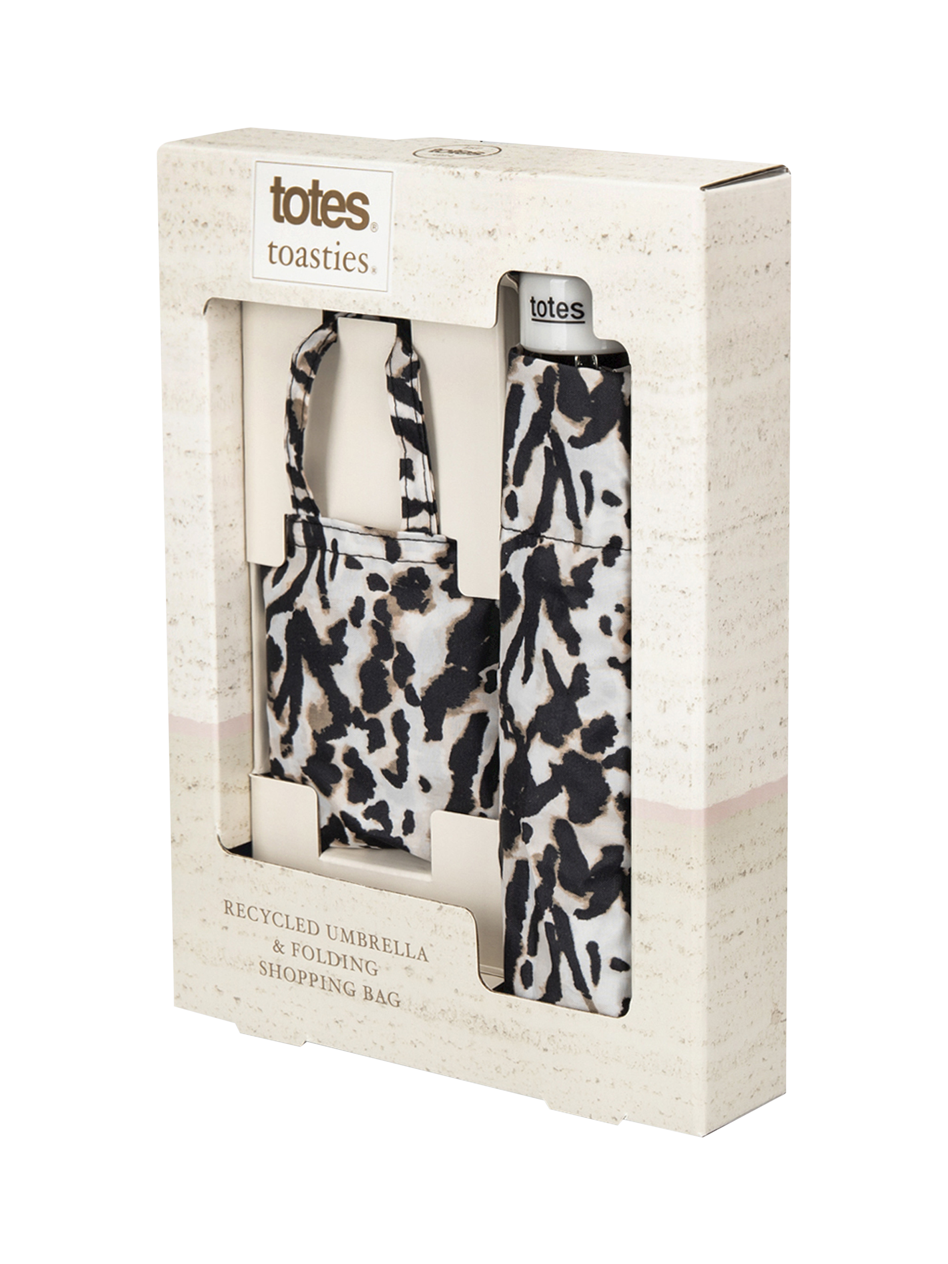 This eye-catching set features a snazzy animal print on both the ever-popular supermini folding umbrella and the handy matching foldaway shopping bag in its own mini bag.