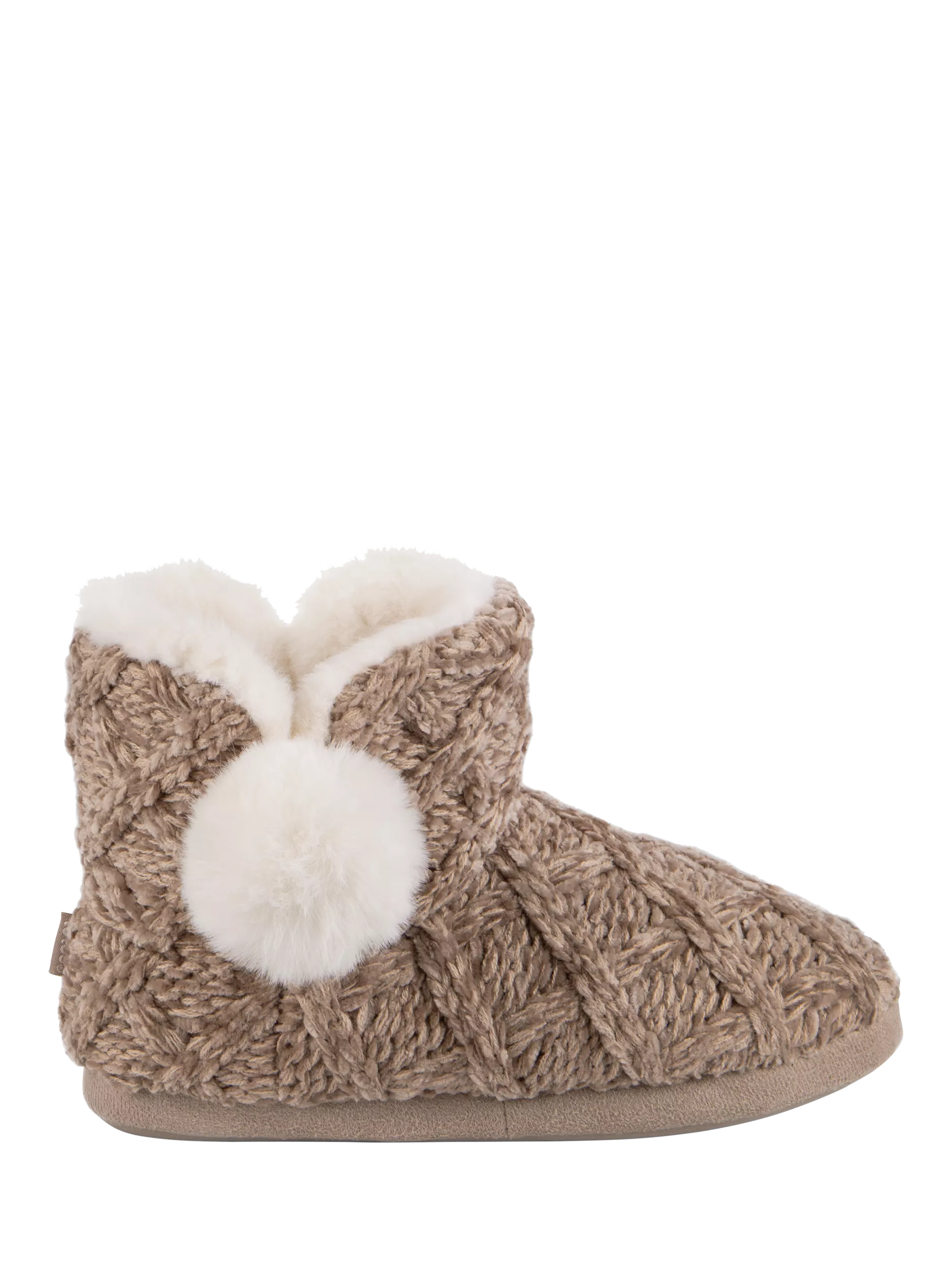 totesCable Knit Bootie Slippers, Brown, 5-6