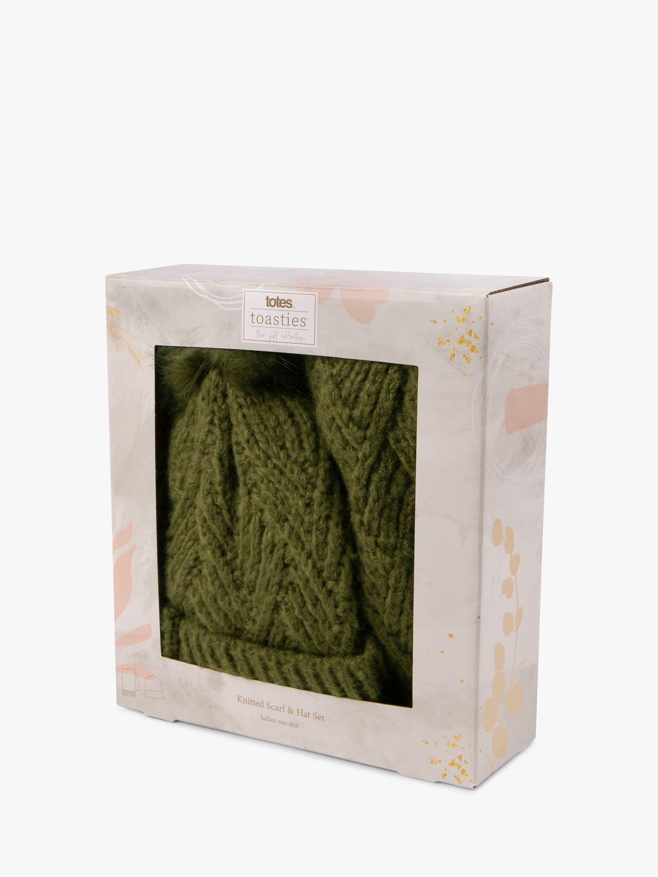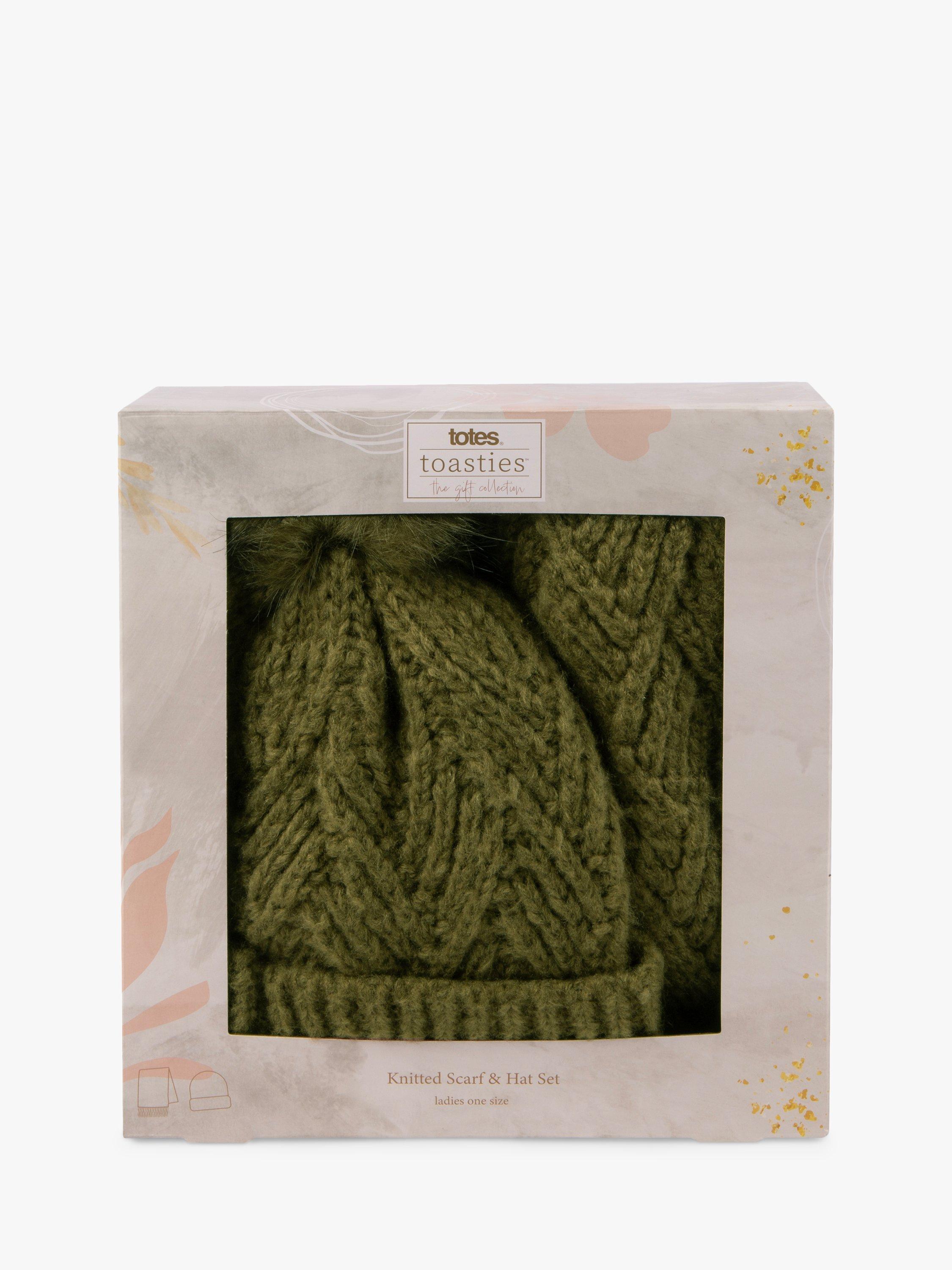 totesCable Knit Hat and Scarf Gift Set, Khaki