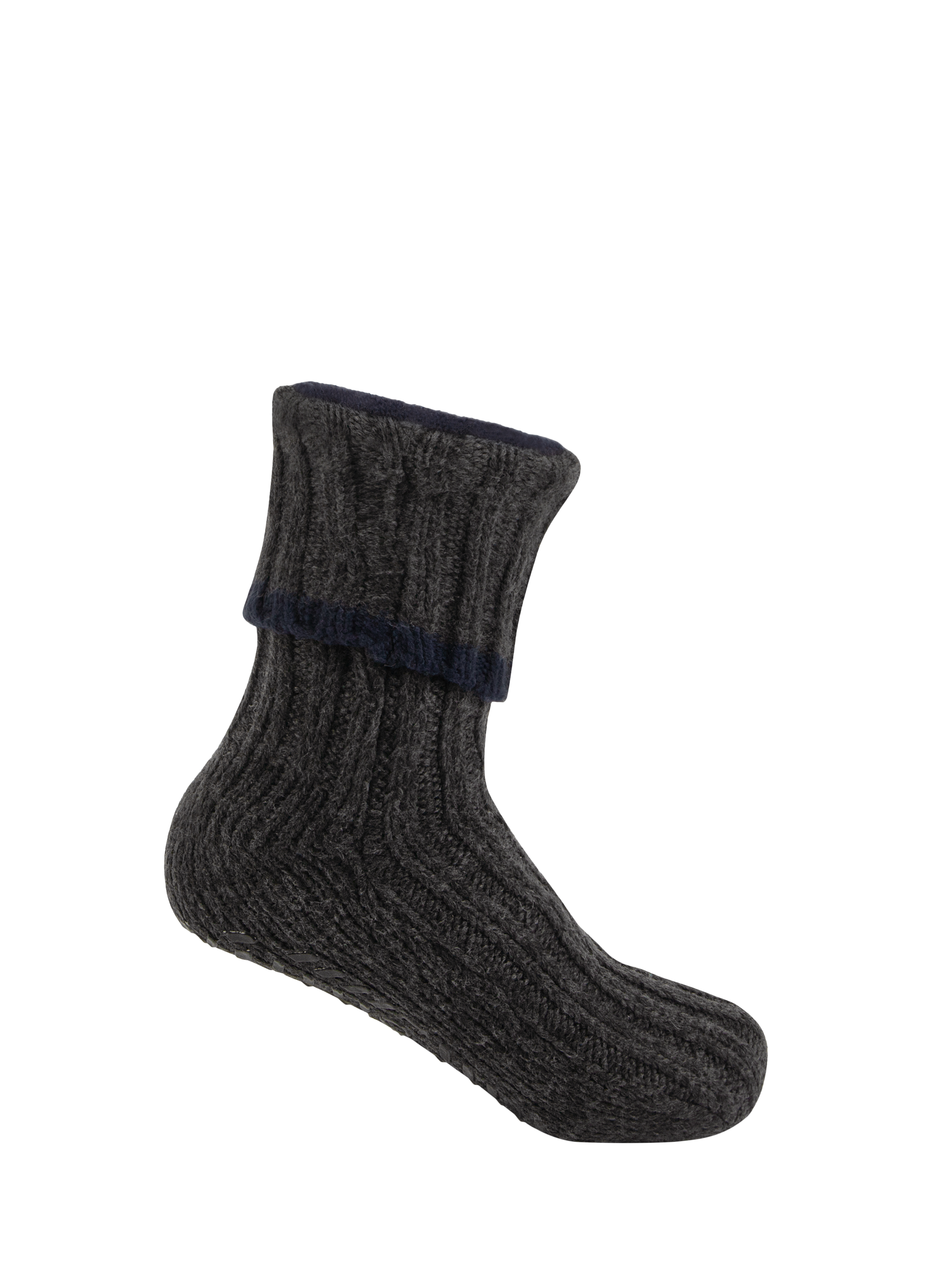 Stay warm and cosy with these chunky ankle-length slipper socks, featuring a plush fleece lining that's perfect for combating chilly nights. Designed for comfort and practicality, they also include a renowned slip-resistant tread for secure footing. Made with recycled yarns for sustainability, these socks are one size fits most, ensuring a comfortable fit. Ideal for keeping warm around the house, they are a practical and stylish choice for colder days. Beautifully packaged for the perfect gift.