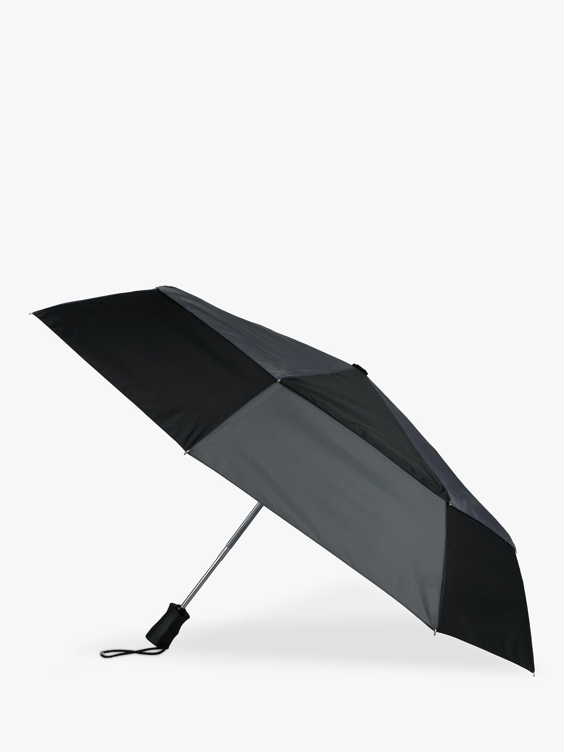 The totes Eco auto open and close umbrella has a large two-tone double canopy, providing increased wind protection and great coverage from the rain. It's made from recycled PET polyester fabric, and has a lightweight aluminium and steel frame.
