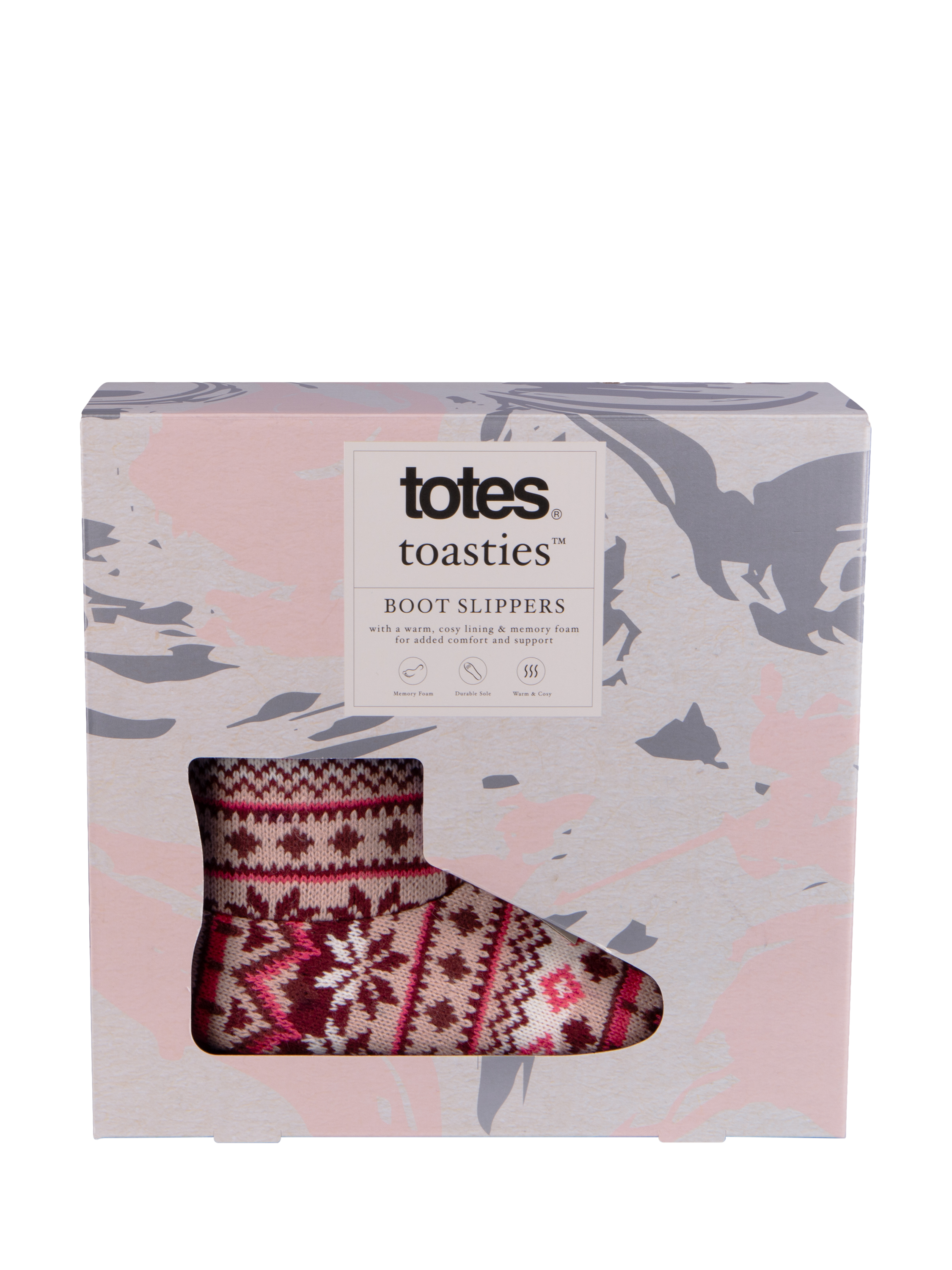Indulge in cosy luxury with these Fair Isle knit boot slippers, featuring a sumptuous faux fur lining and supportive memory foam for ultimate comfort. Designed with a durable textile TPR sole, these slippers are as practical as they are stylish. Beautifully packaged, they make the perfect gift for any occasion. Treat yourself or a loved one to the perfect blend of warmth, comfort, and elegance.