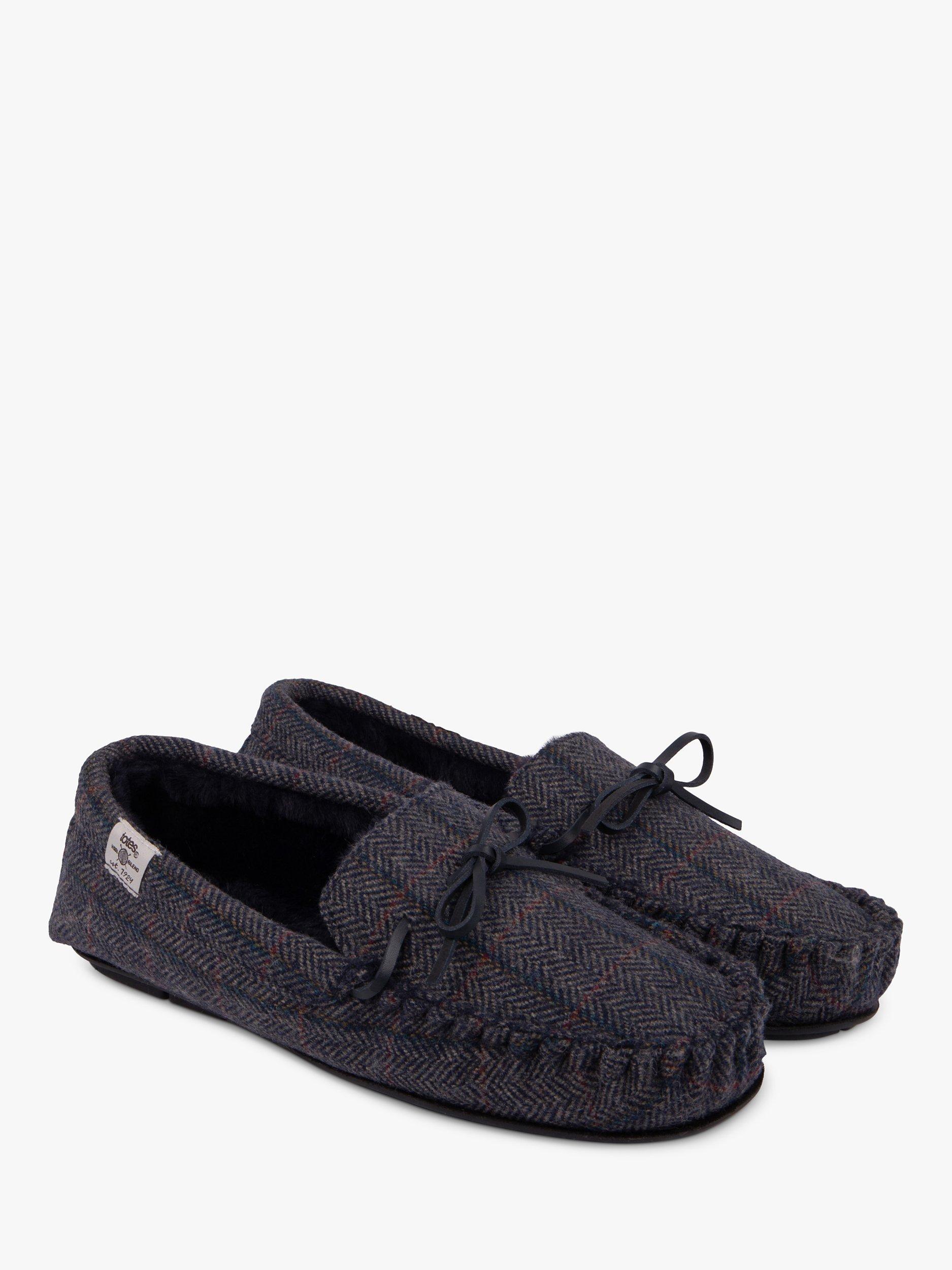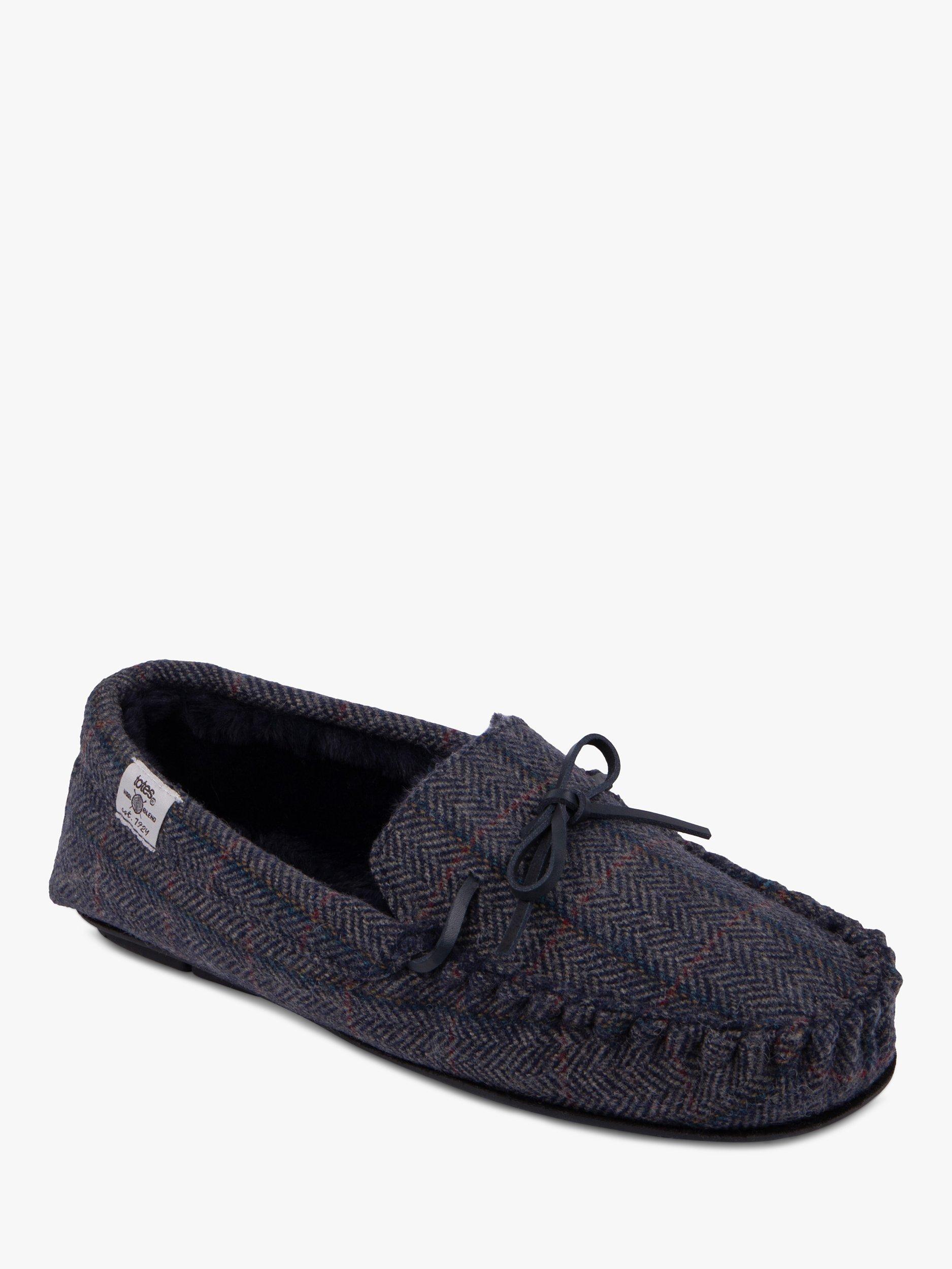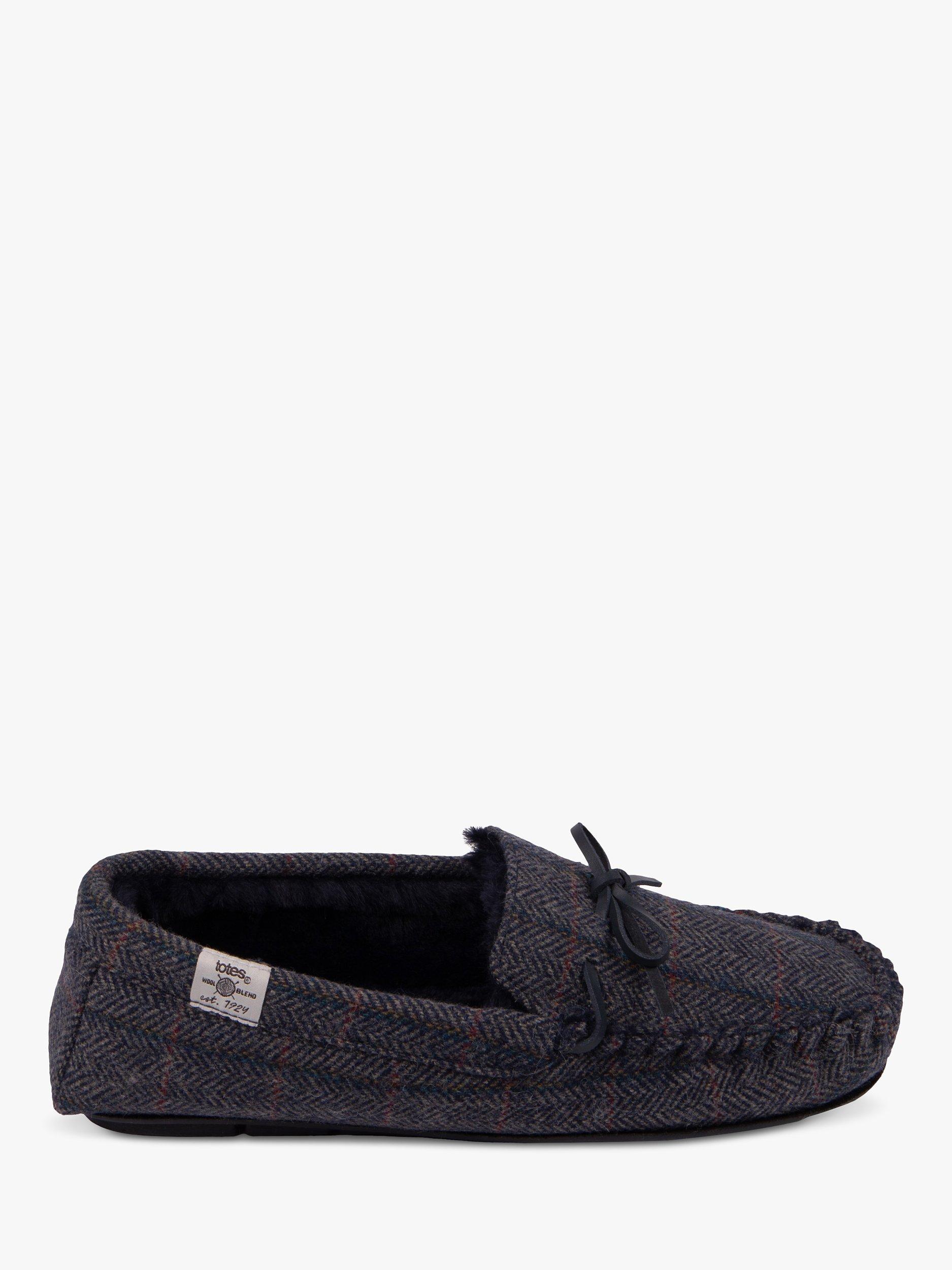 totesHerringbone Moccasin Style Wool Blend Slippers, Navy/Multi