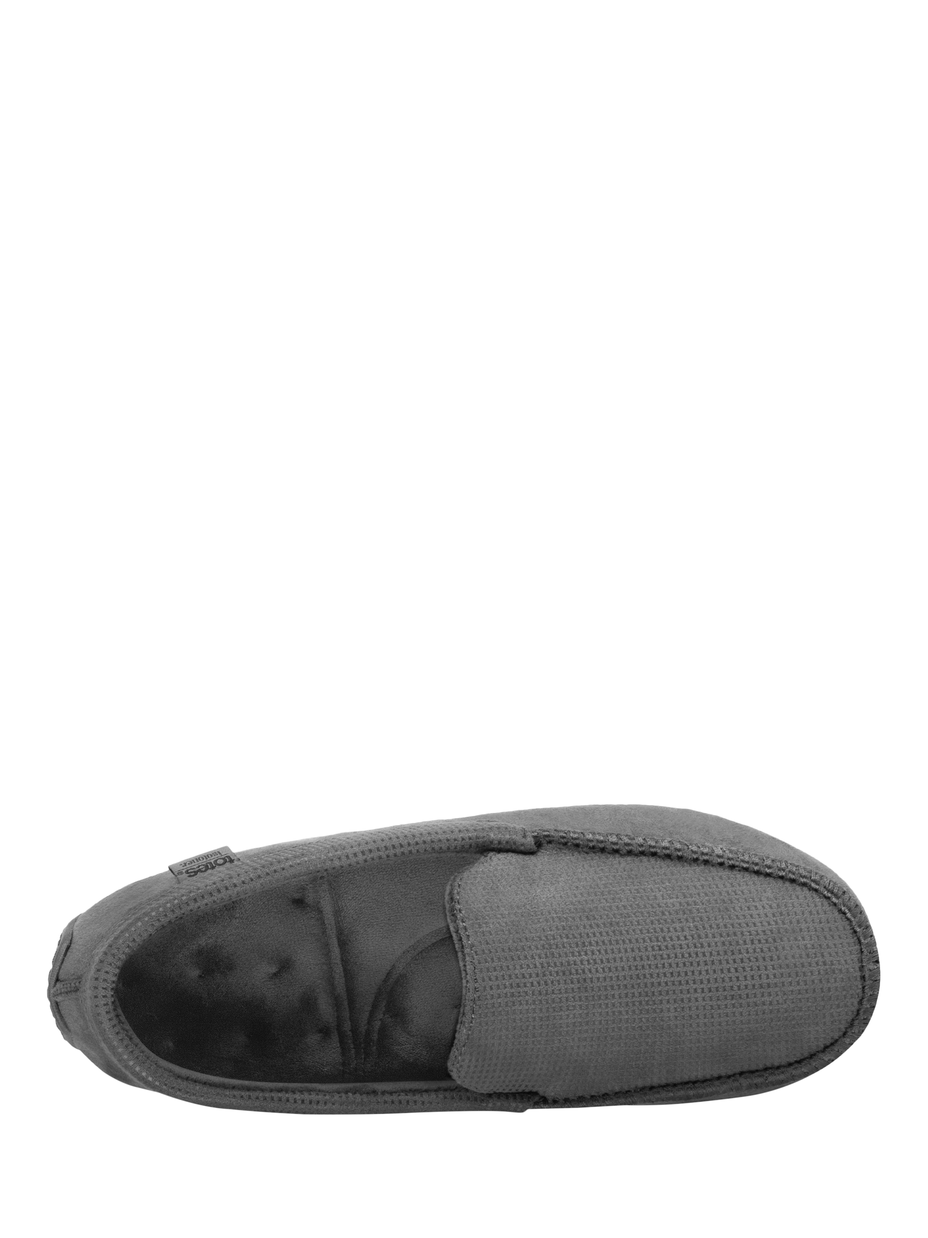Introducing totes' classic moccasin-style slippers with a smart checkerboard fabric design, ideal for adding a stylish touch to your indoor wardrobe.