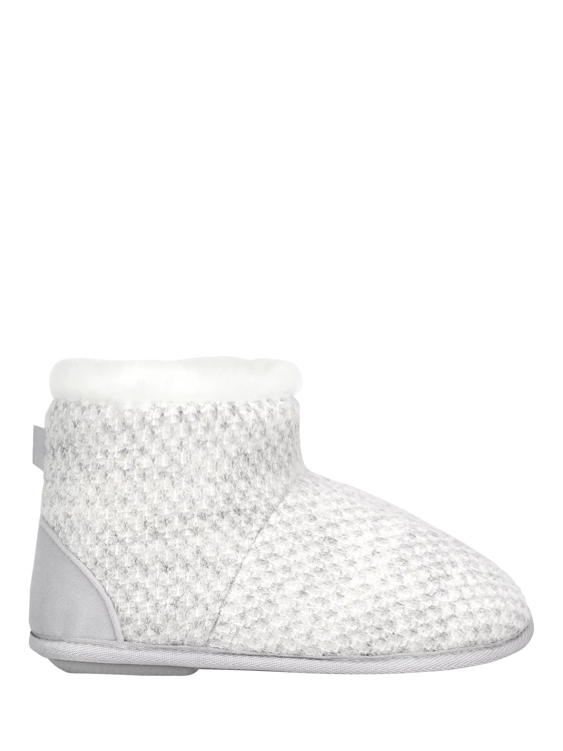 Step into cosy sparkle with the totes Isotoner Sparkle Knit Boot Slippers, crafted in a soft grey fabric with a delicate shimmer for eye-catching comfort.