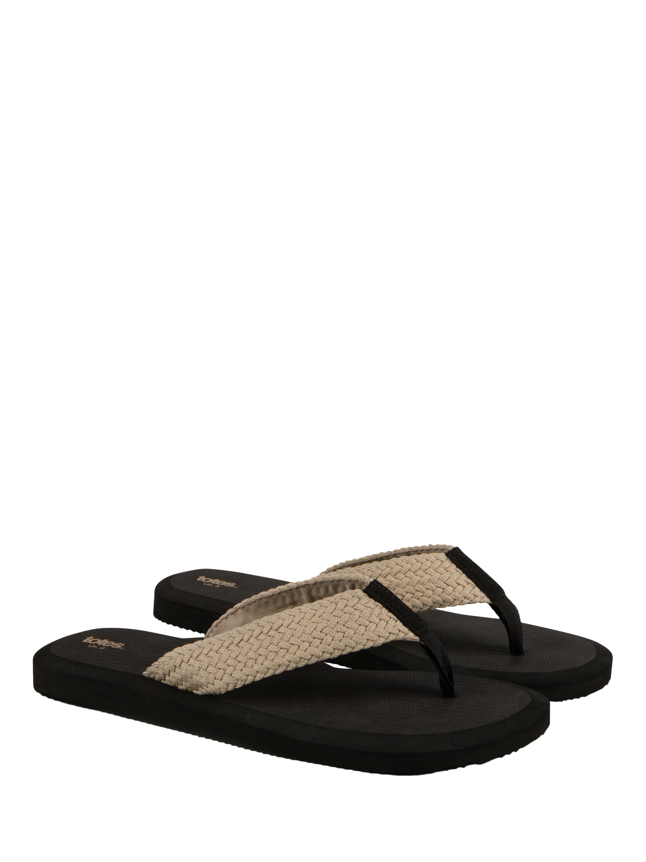 Step into summer in effortless style with totes' classic toe-post flip-flop sandals, designed for both comfort and versatility. Featuring a chic neutral plaited front for added flair, these sandals pair perfectly with trunks, shorts, cut-offs, jeans, or chinos for a laid-back, casual look. Enjoy day-long comfort thanks to the fabulously cushioned soft yoga mat footbed, ensuring every step feels like a breeze. Lightweight, flexible, and stylish, they’re the ultimate summer essential for holidays and beyond.