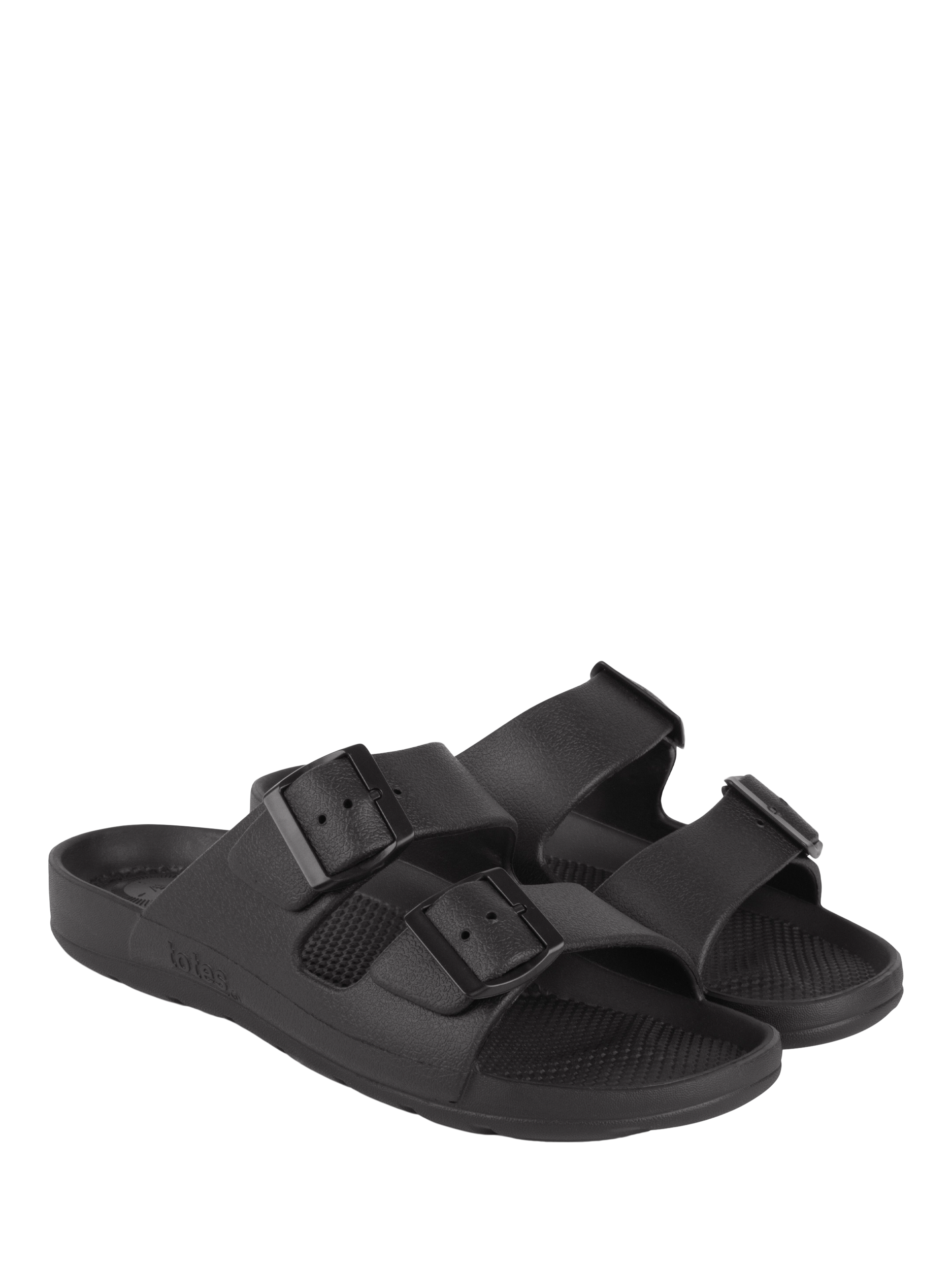 Kick off the sock-free season in style with the totes olbounce Adjustable Sliders, featuring two adjustable buckles and a subtly textured upper. Lightweight, durable and ultra-comfy, these flexible cushioned slip-ons are part of the totes Solbounce collection, where every style is designed to be seriously comfortable. Thanks to Everywear technology, the compression-proof insole keeps its shape even after thousands of hours’ wear ...or being squashed into a tightly packed suitcase. With anti-bacterial soles for lasting freshness, they’re holiday-ready while remaining a versatile wardrobe staple all year round.