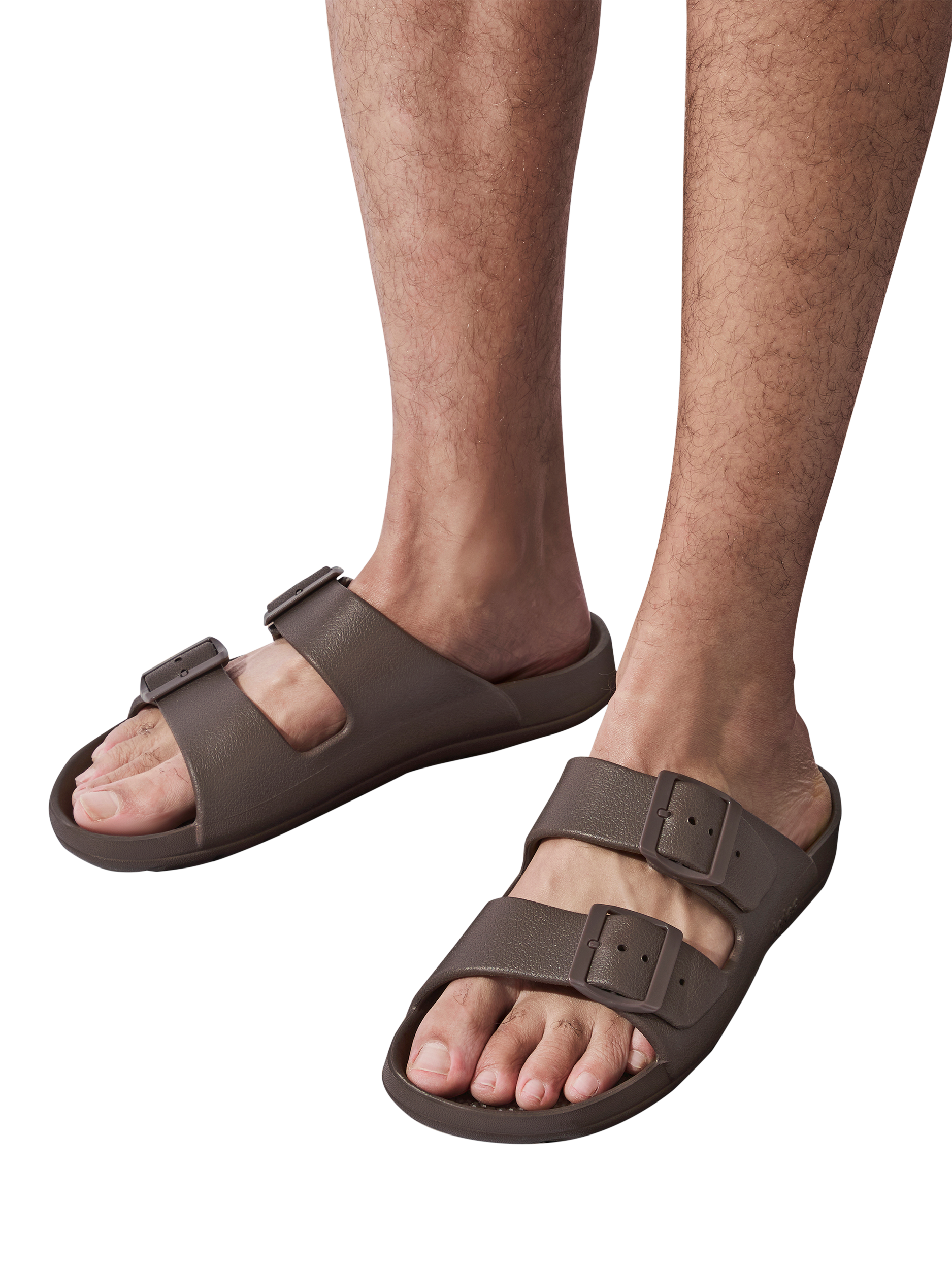 Kick off the sock-free season in style with the totes olbounce Adjustable Sliders, featuring two adjustable buckles and a subtly textured upper. Lightweight, durable and ultra-comfy, these flexible cushioned slip-ons are part of the totes Solbounce collection, where every style is designed to be seriously comfortable. Thanks to Everywear technology, the compression-proof insole keeps its shape even after thousands of hours’ wear ...or being squashed into a tightly packed suitcase. With anti-bacterial soles for lasting freshness, they’re holiday-ready while remaining a versatile wardrobe staple all year round.