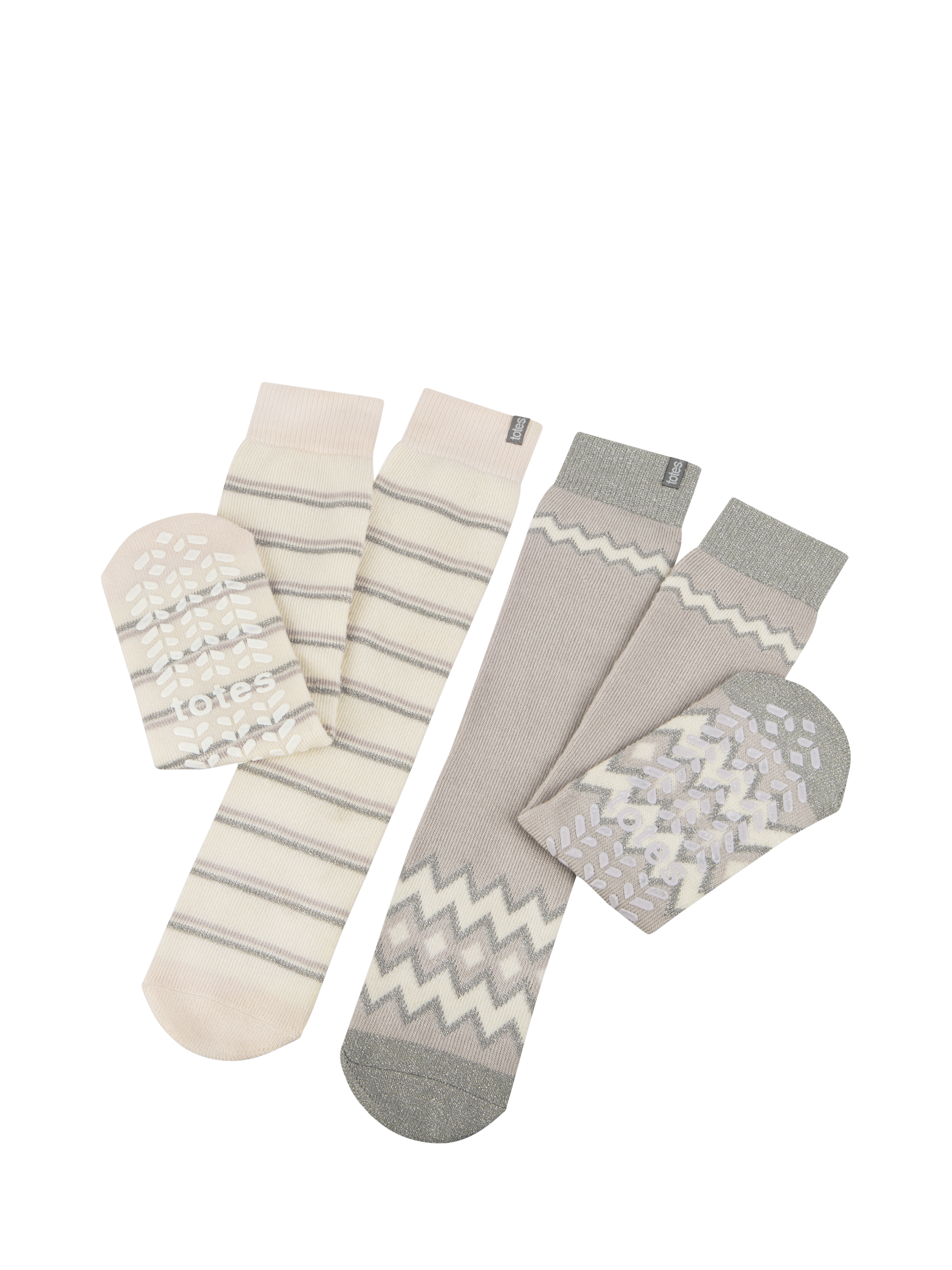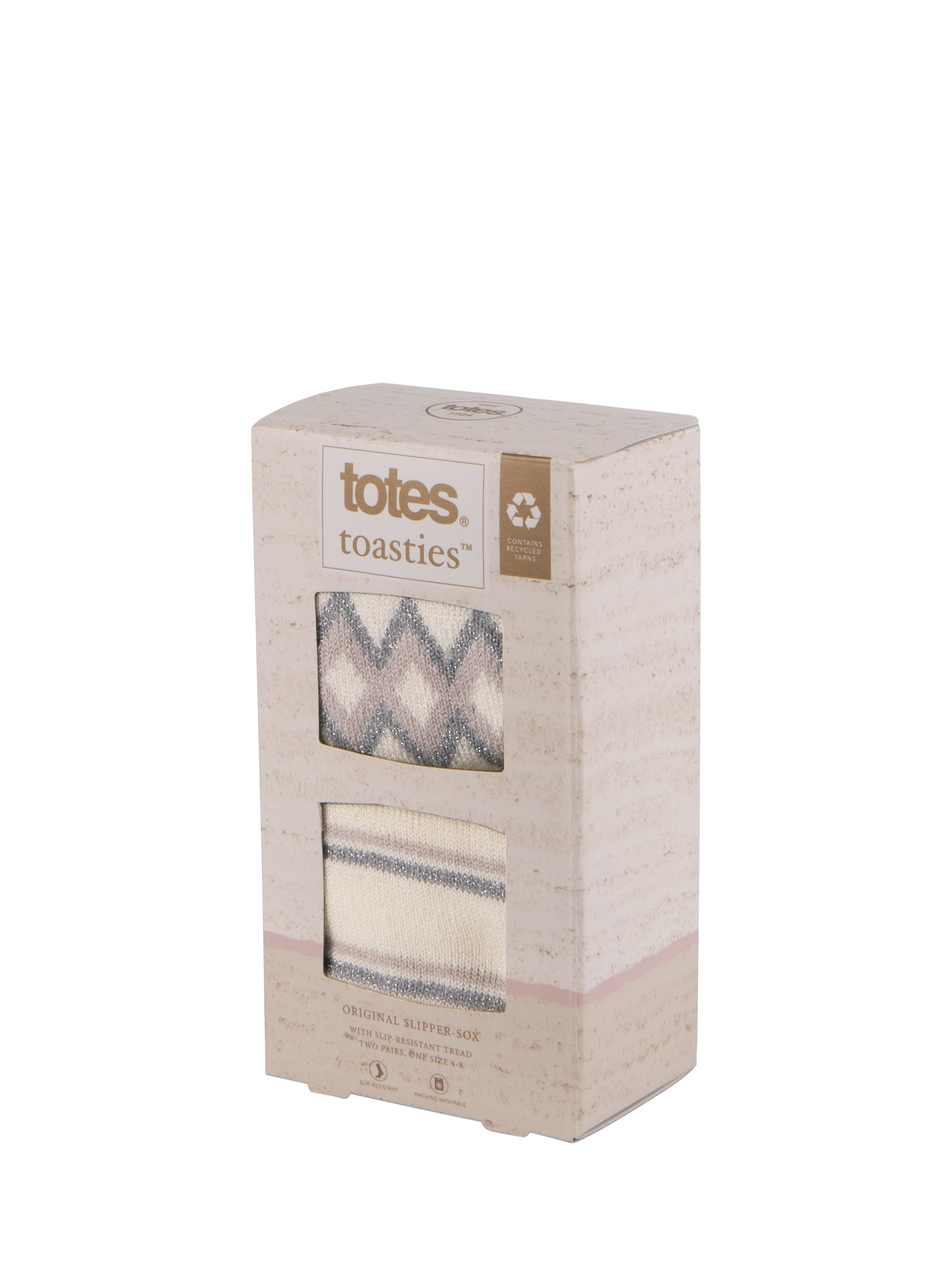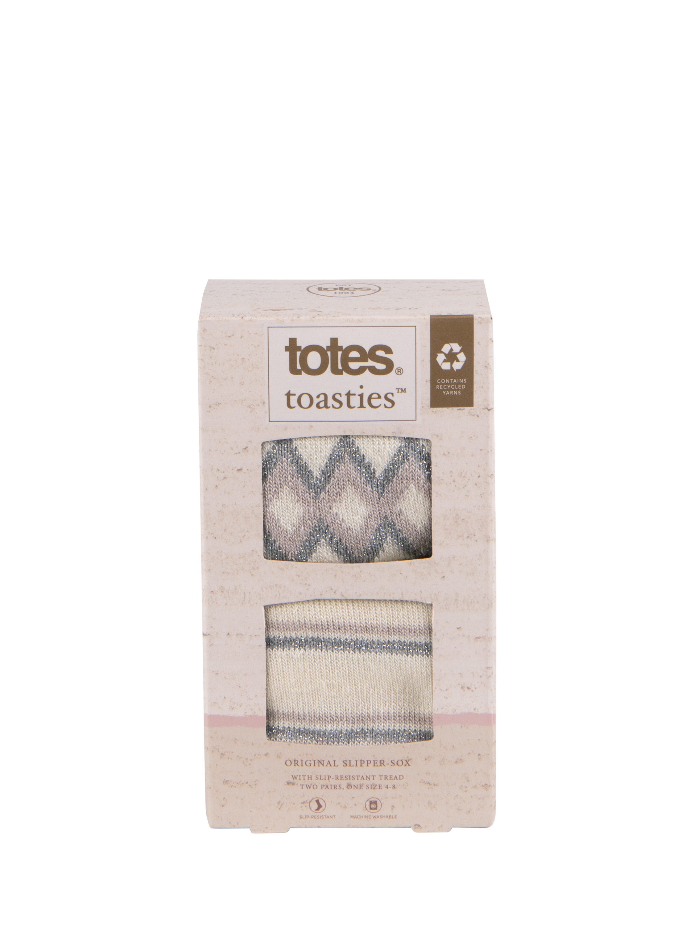 The Original totes toasties slipper-socks come in a fabulous twin pack. Both pairs feature unique patterns and totes' famous slip-resistant tread, all neatly packaged in a handy gift box.