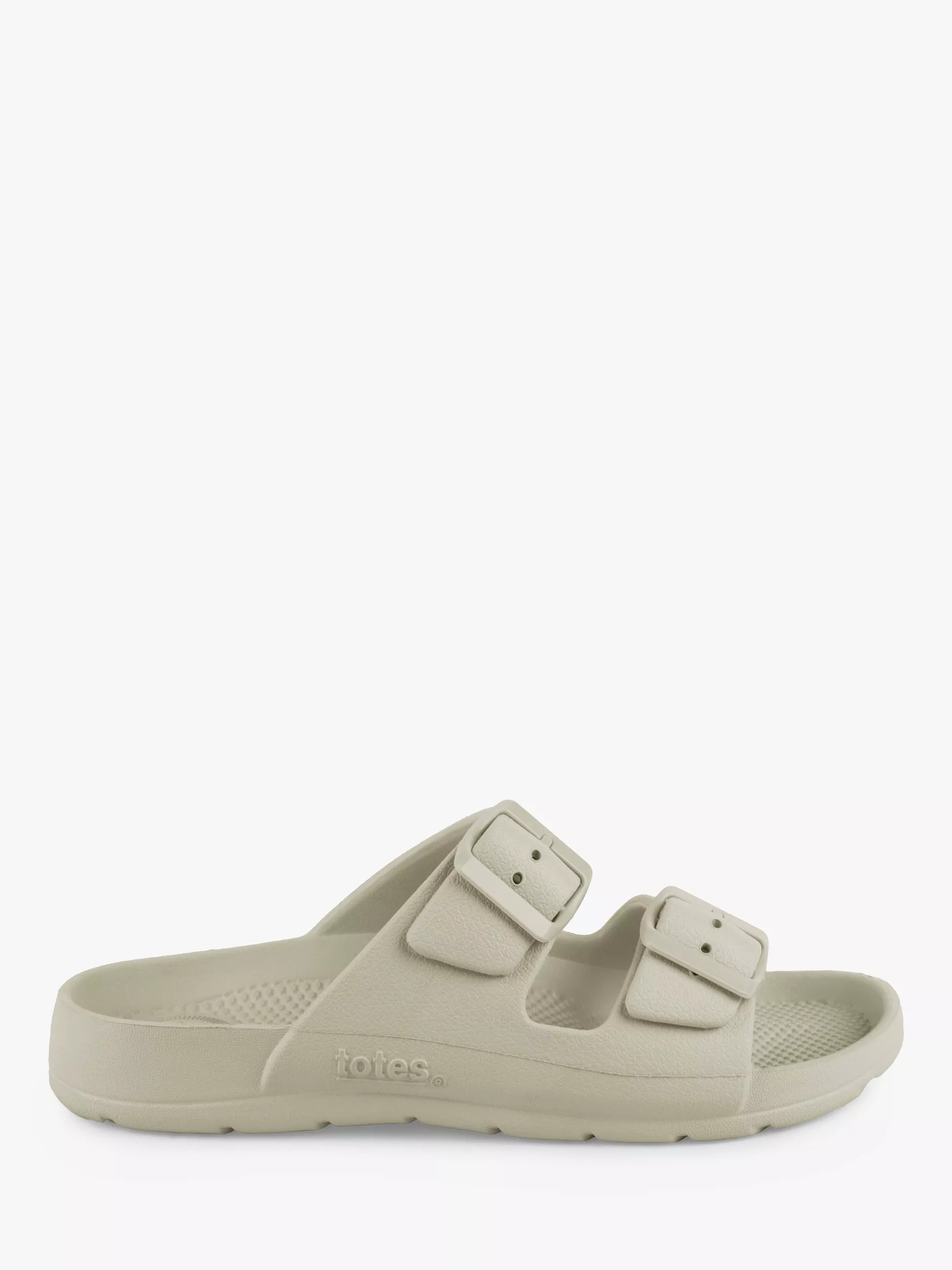 Slipping on ready for the warmer months, this pair of sliders by totes comes in a soft, yet durable fabric that's built to last.