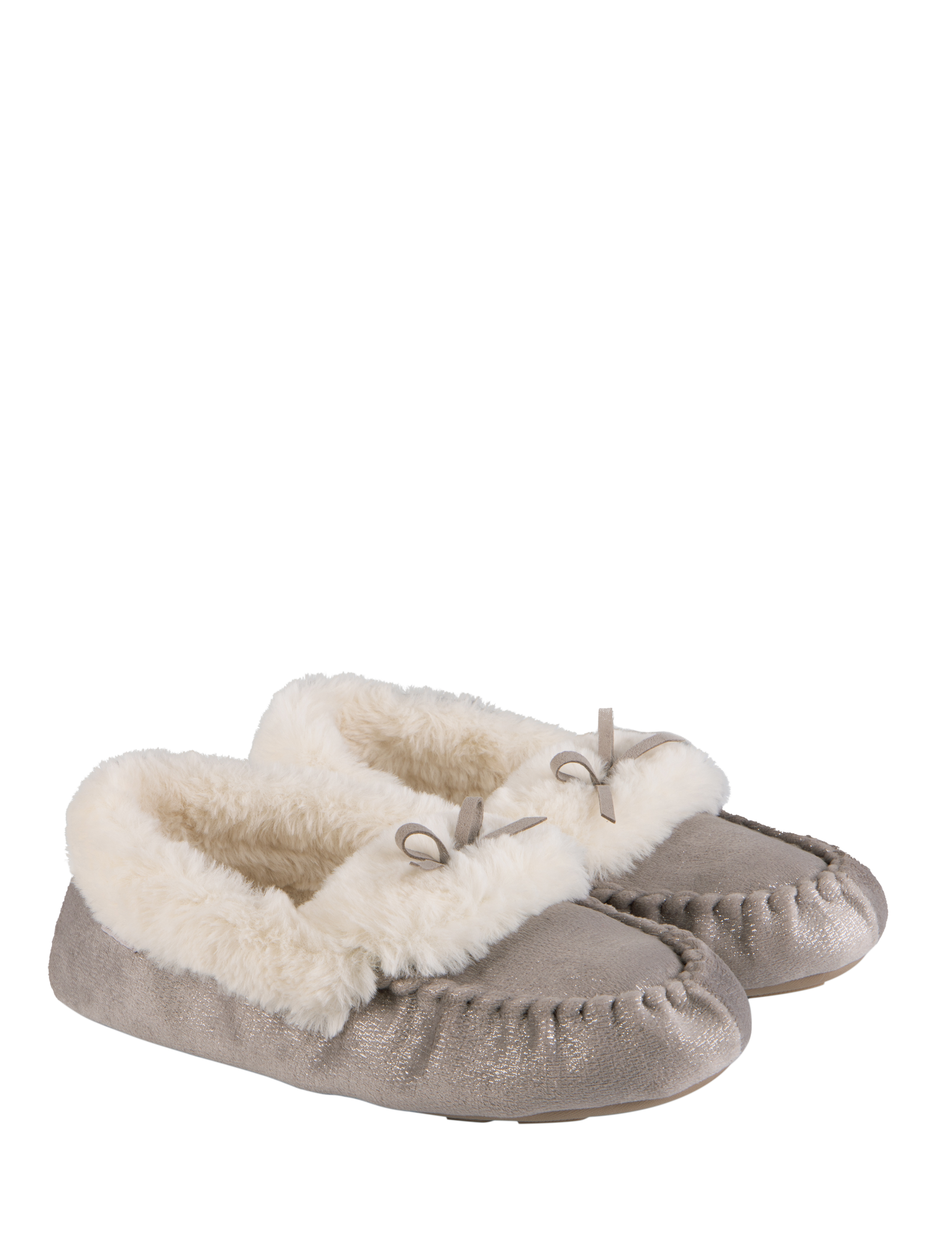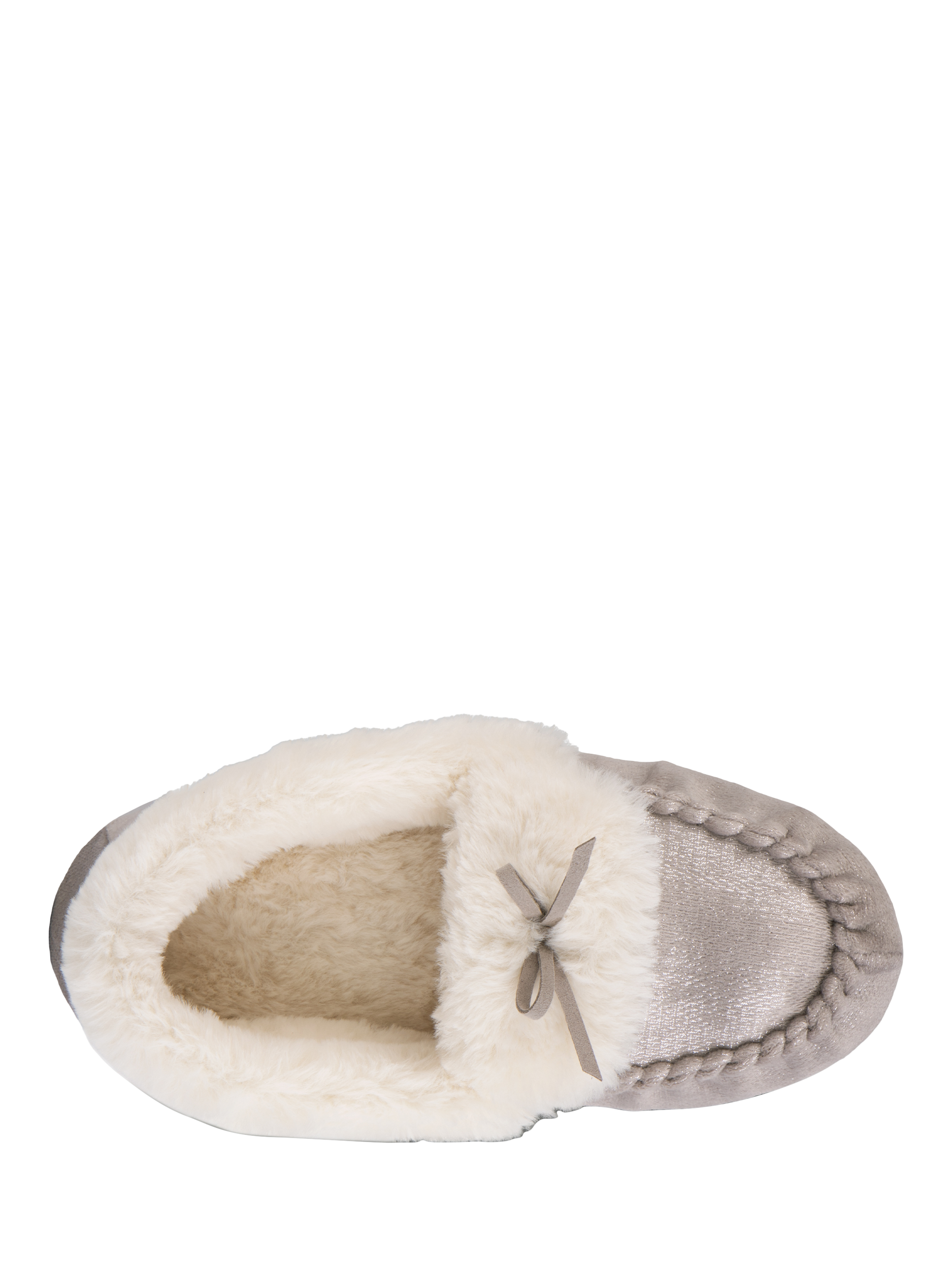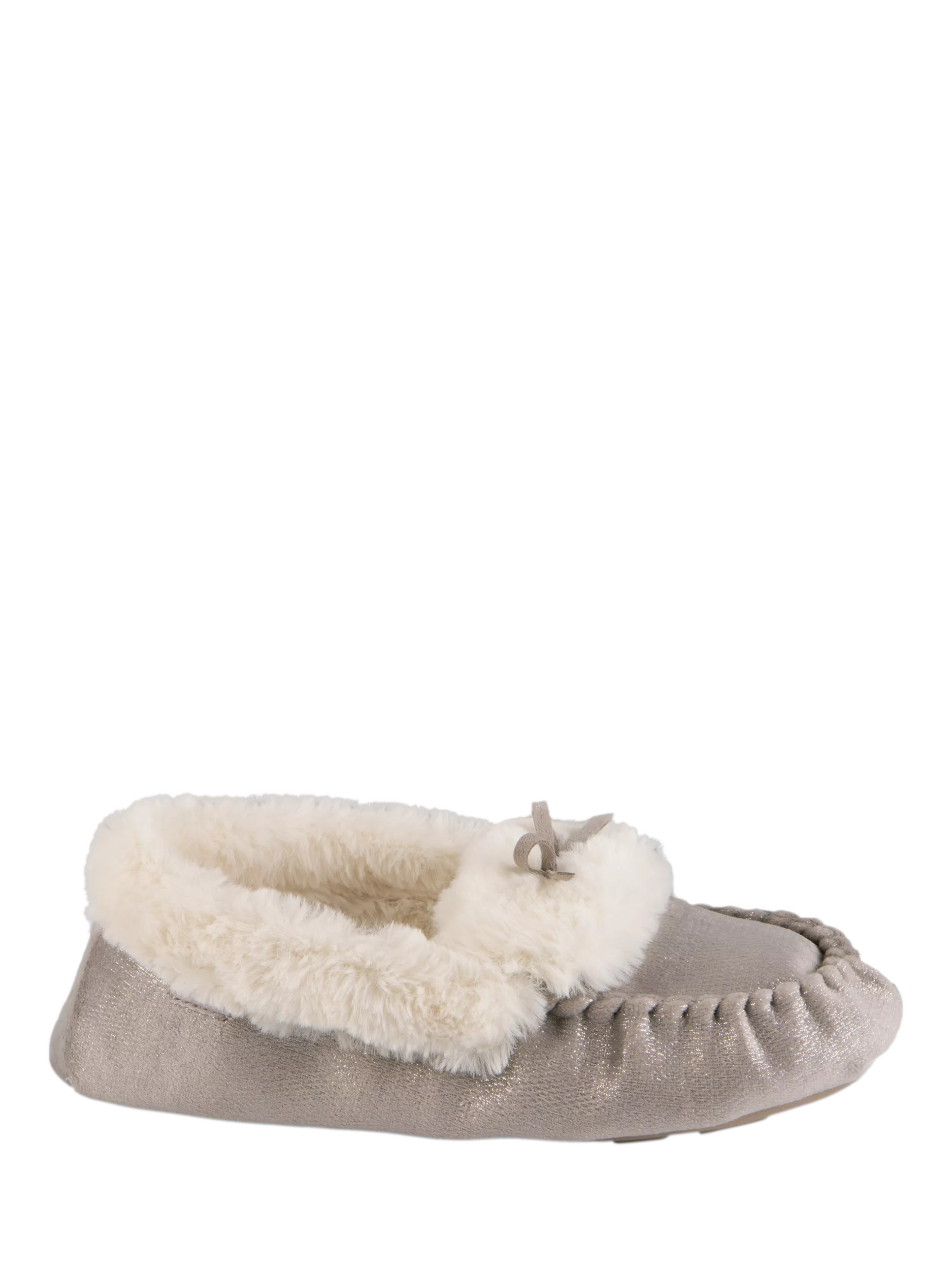 Everyone loves a little sparkle, and these cosy moccasin slippers deliver on both style and dazzle. Featuring a classic tie trim and a warm faux fur lining, they're the perfect pick-me-up. They also come equipped with memory foam for comfort and a textile TPR sole for durability. Plus, they're beautifully packaged, making them an ideal gift choice.