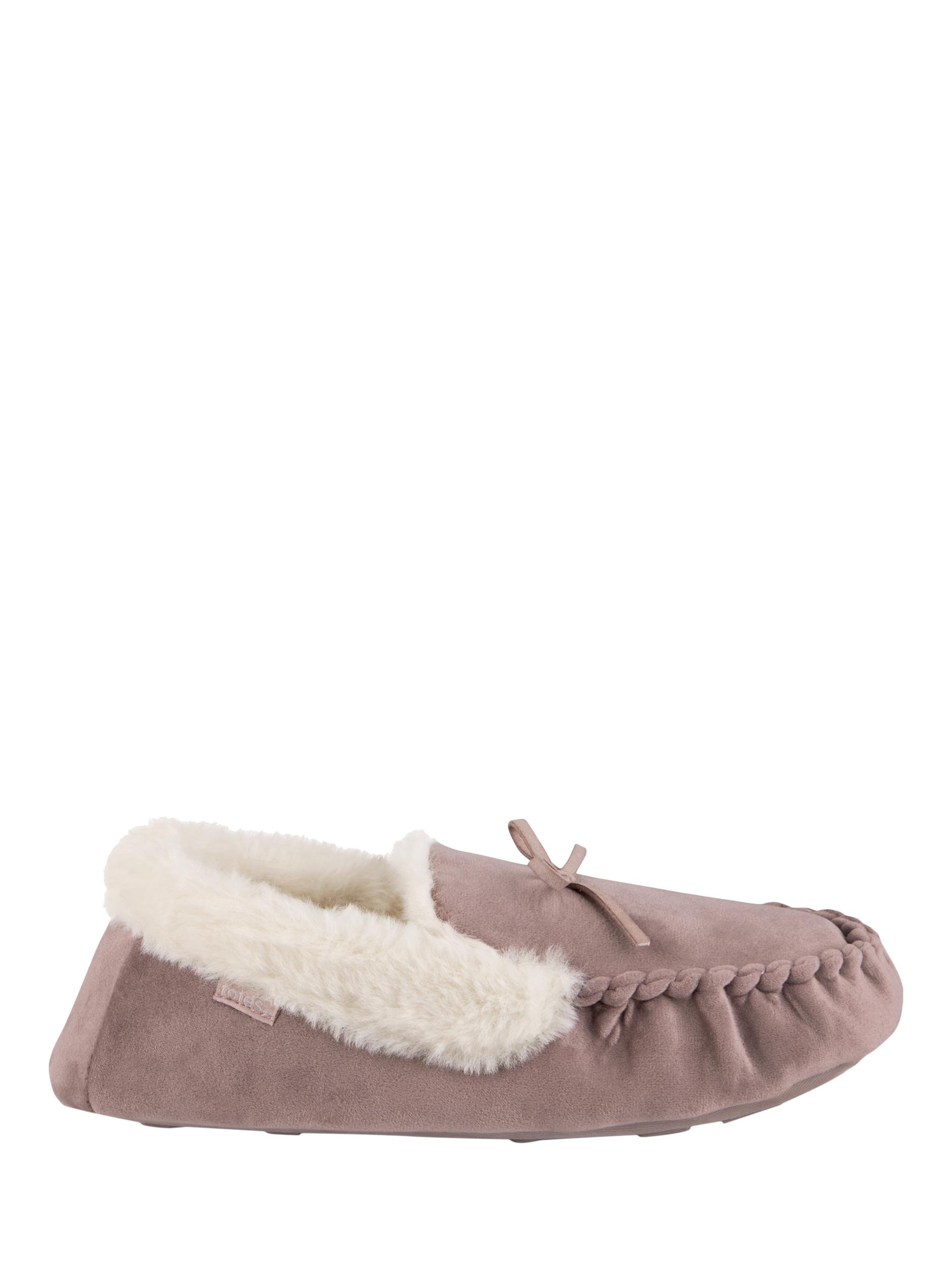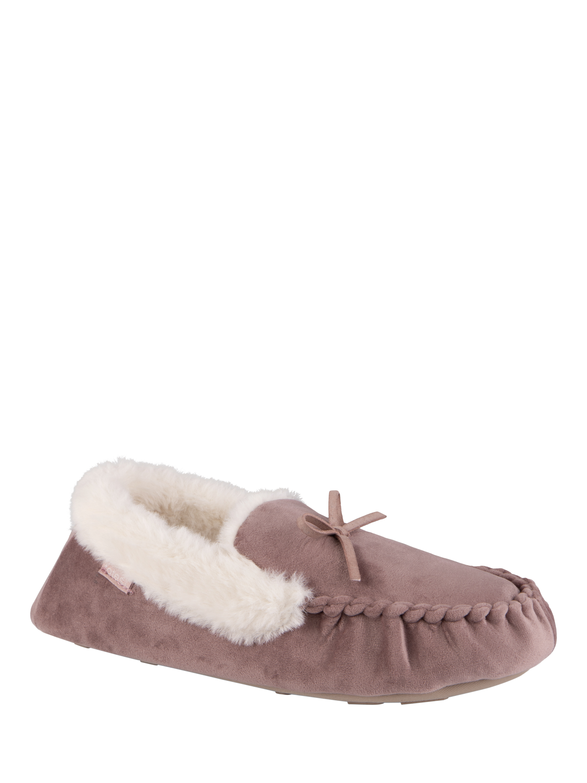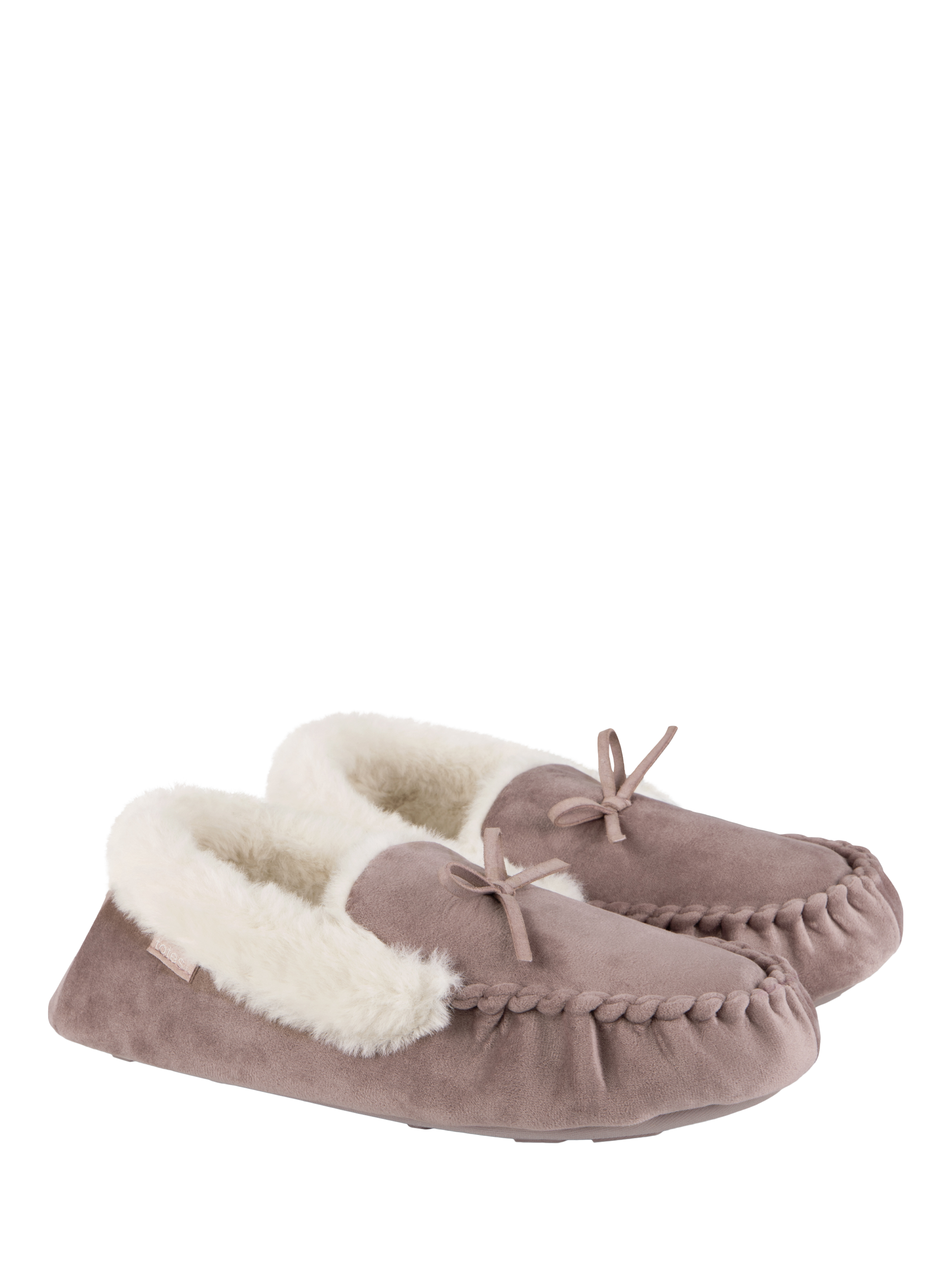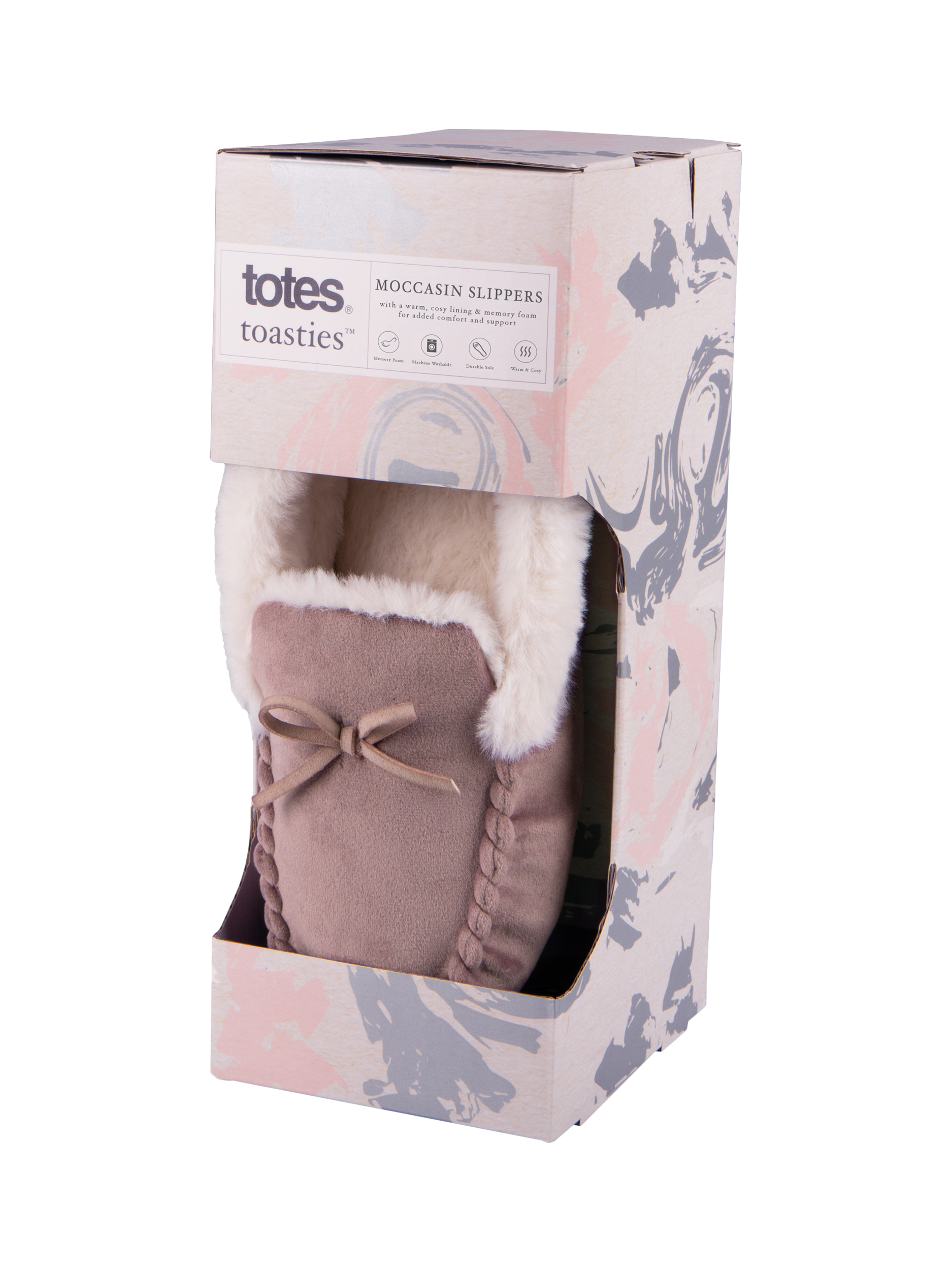Classic moccasin style meets luxurious comfort in these soft velour fabric slippers. Designed for warmth, they feature beautifully soft faux fur lining and memory foam for all-day comfort. Finished with a textile TPR sole, these slippers are not only cosy but also easy to care for. They also come beautifully packaged for the perfect gift.