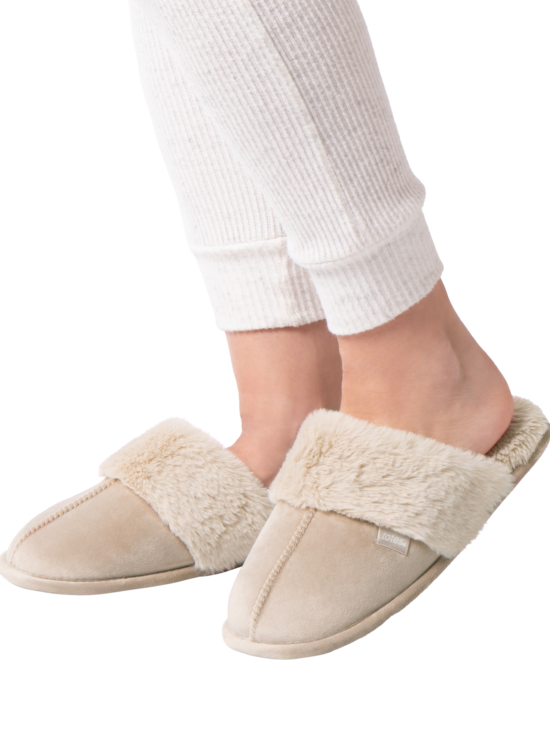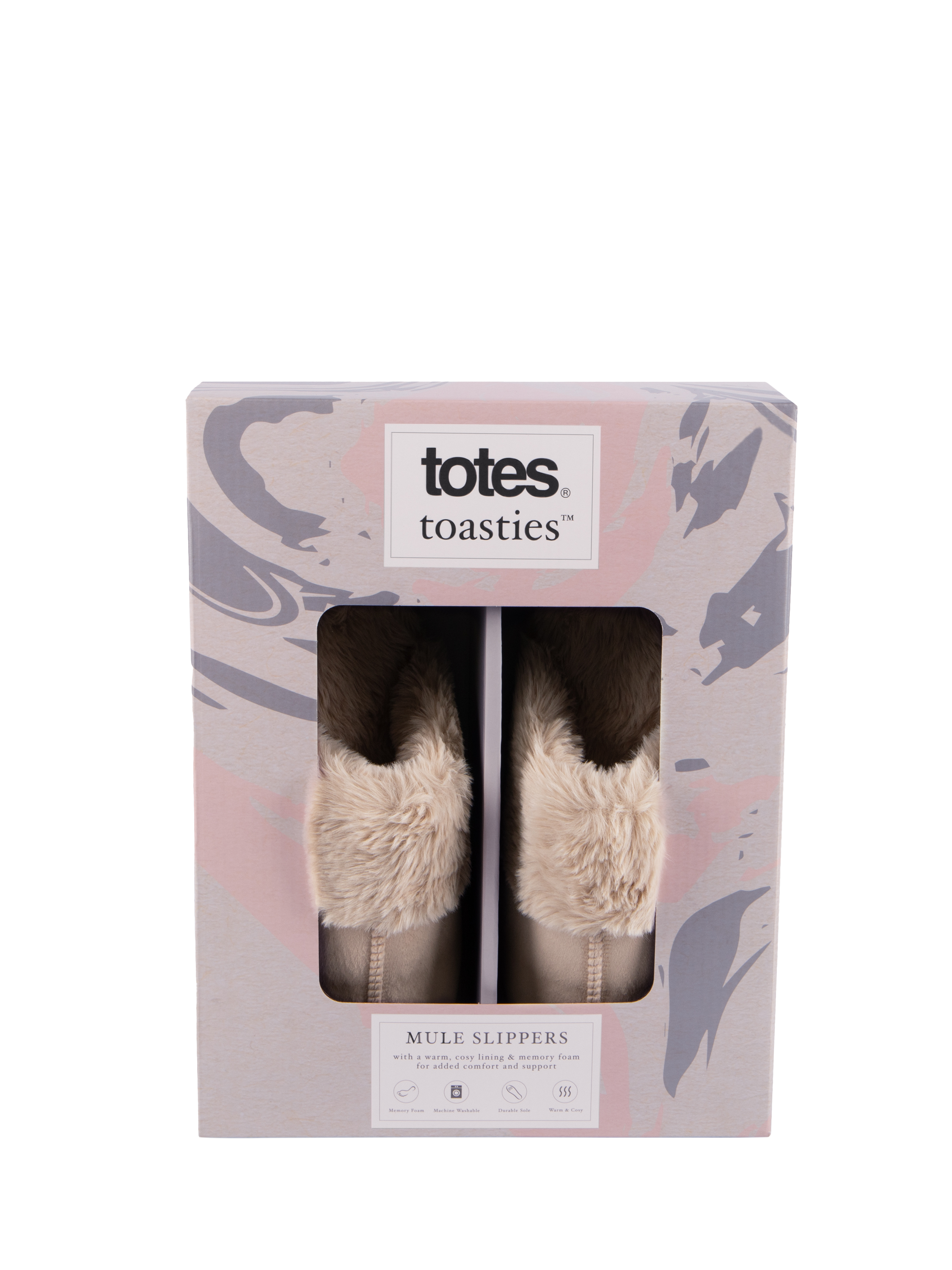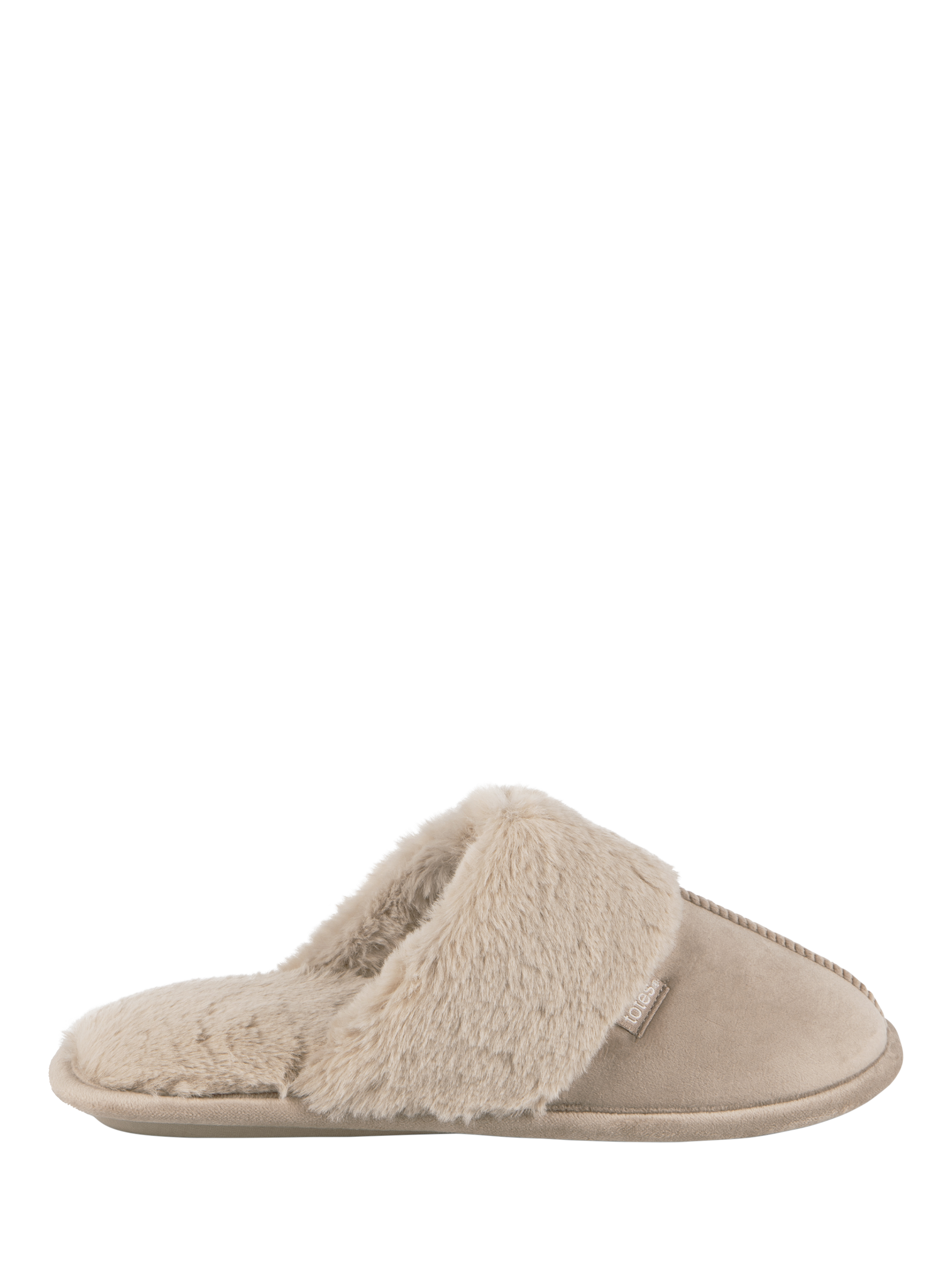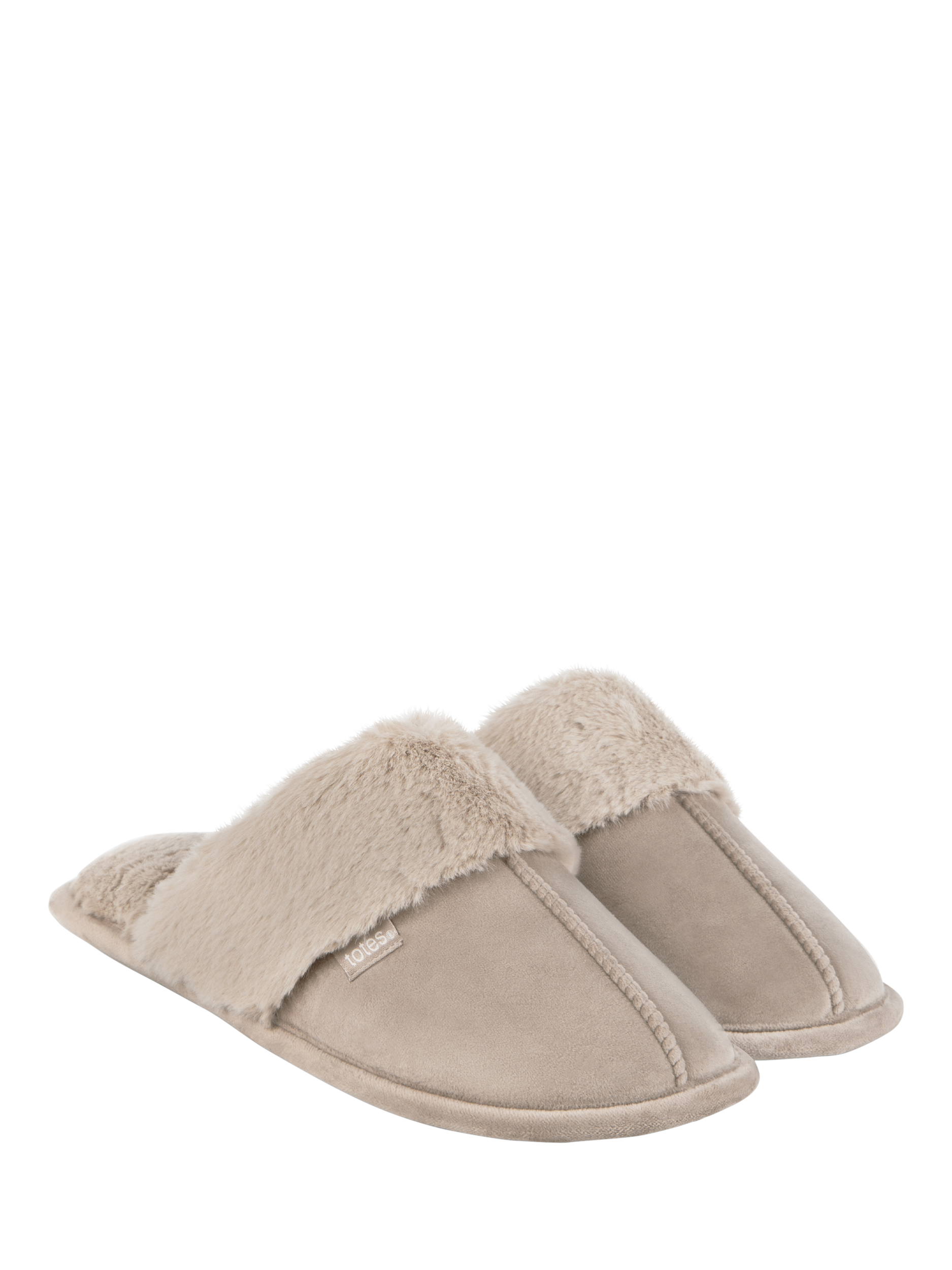 A pair of classic mule style slippers with a cosy faux fur lining and cuff. These slippers, in a soft shade, feature added memory foam for comfort and support, a durable sole, and are easy to care for. They make for a wonderful cosy wardrobe staple and also come beautifully packaged for the perfect gift.