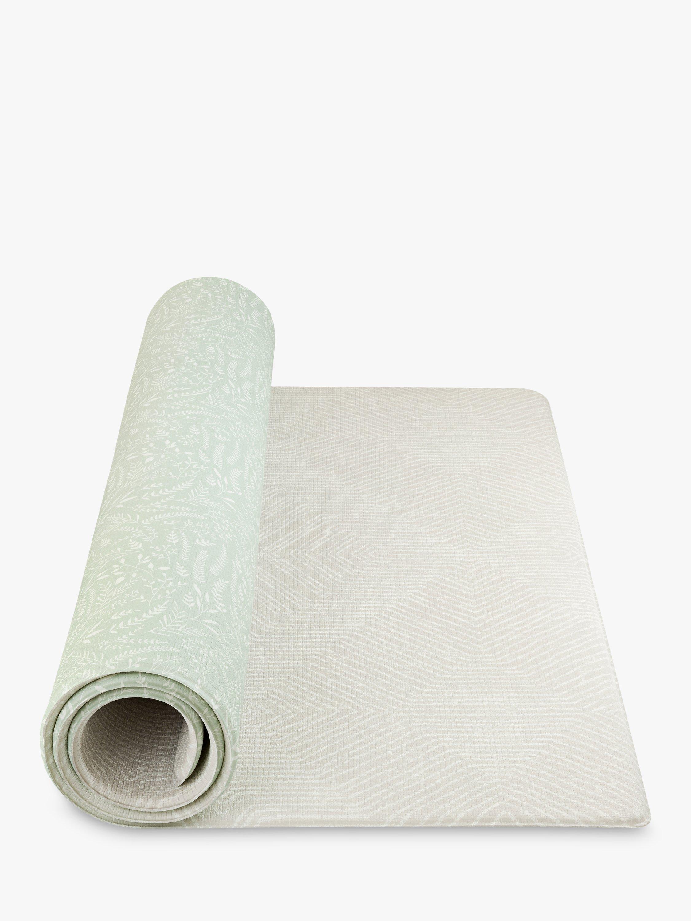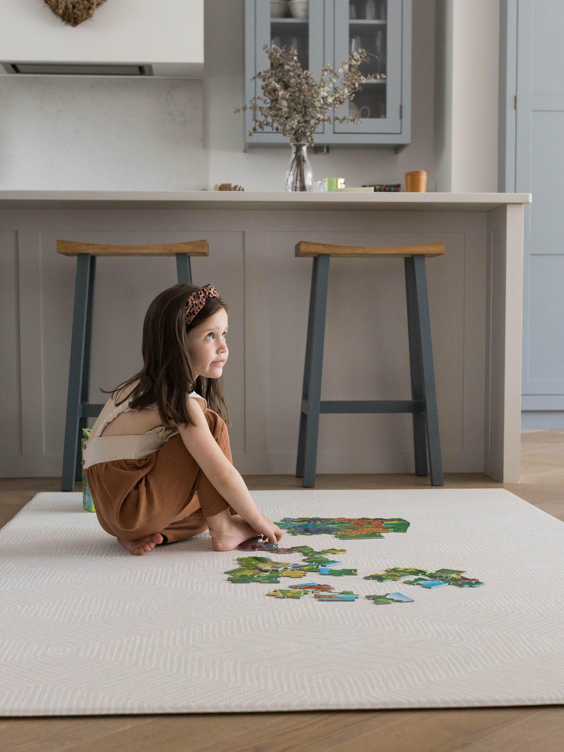 Created to meet the needs of the whole family, the robust yet squishy playmat from Totter + Tumble keeps little ones cushioned on the floor, with a modern, double-sided design, to complement your interior. The Rambler brings the outdoors indoors, with its subtle botanical print on a sage green background. On the reverse, North African Kilim rugs inspire the minimal diamond pattern on The Globe Trotter, in creamy warm grey and off-white tones.