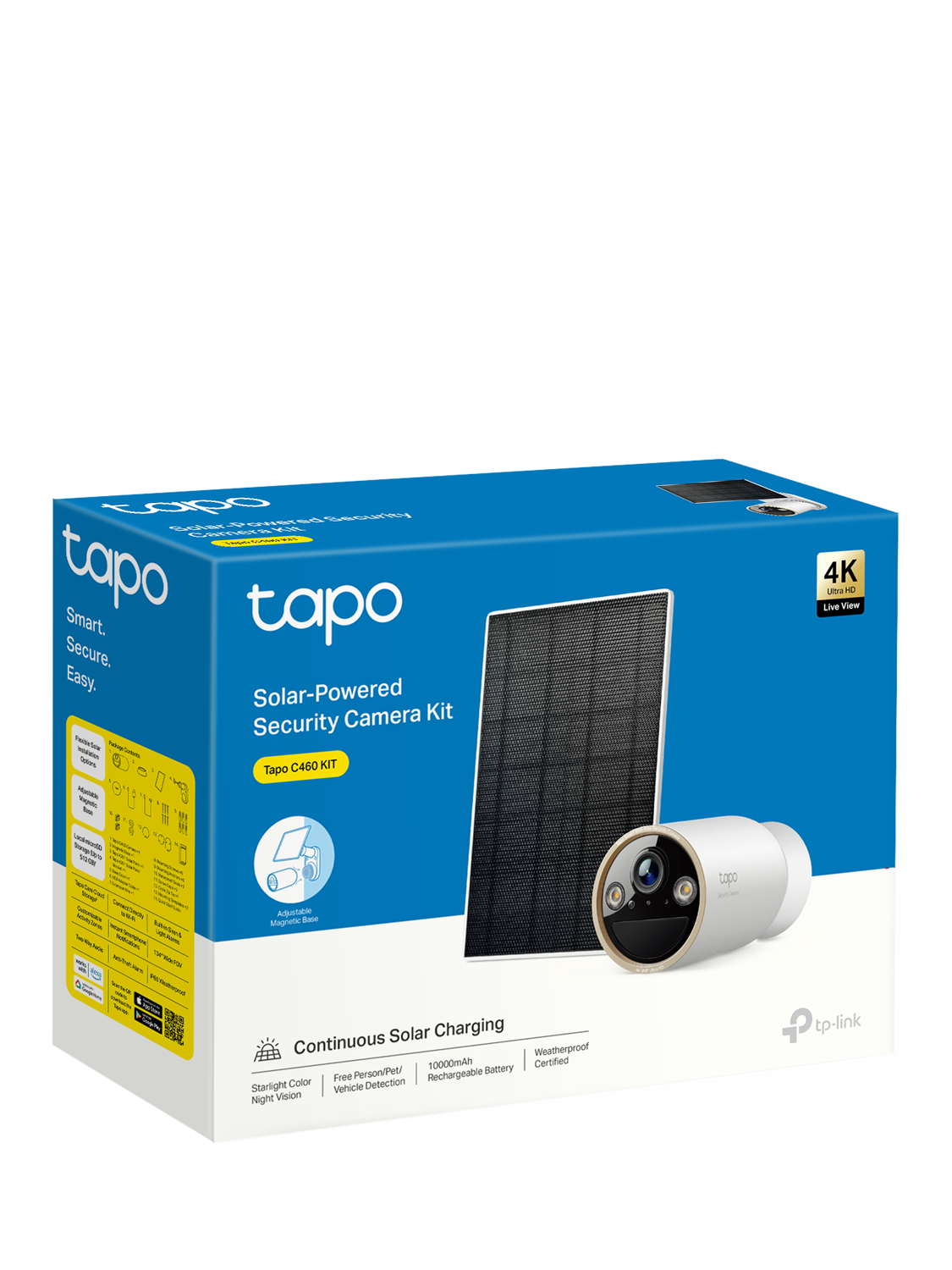Keep an eye on things outside for peace of mind with Tapo’s C460 camera. Crystal clear 4K resolution and Smart AI detection helps you keep your important stuff secure. This kit includes a solar panel to keep the rechargeable battery continuously powered.