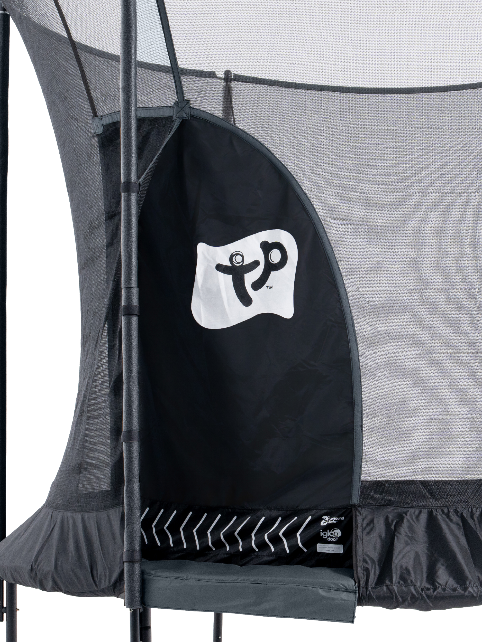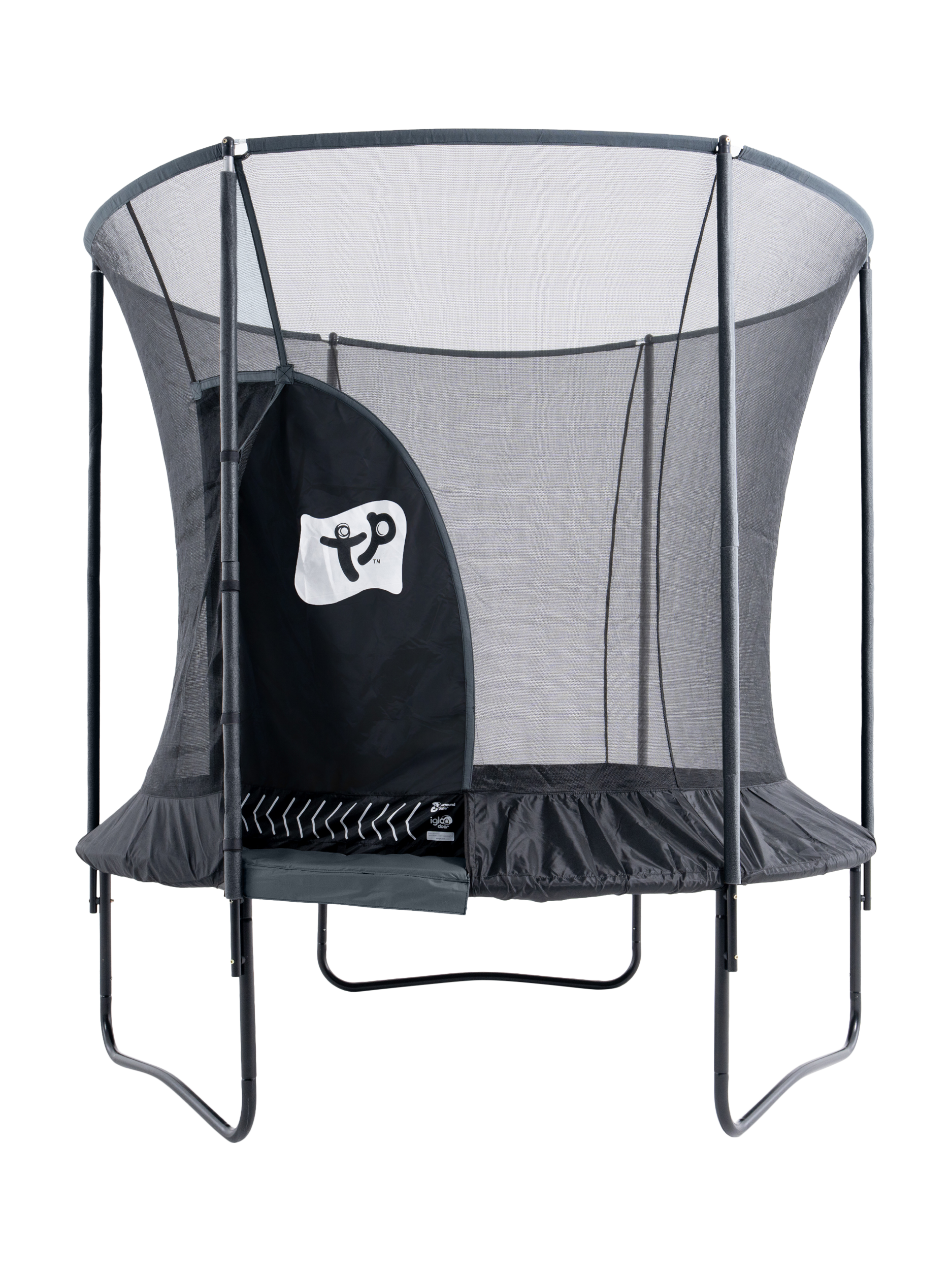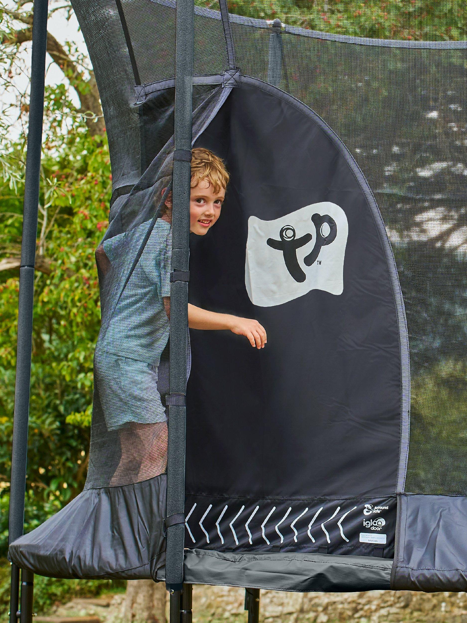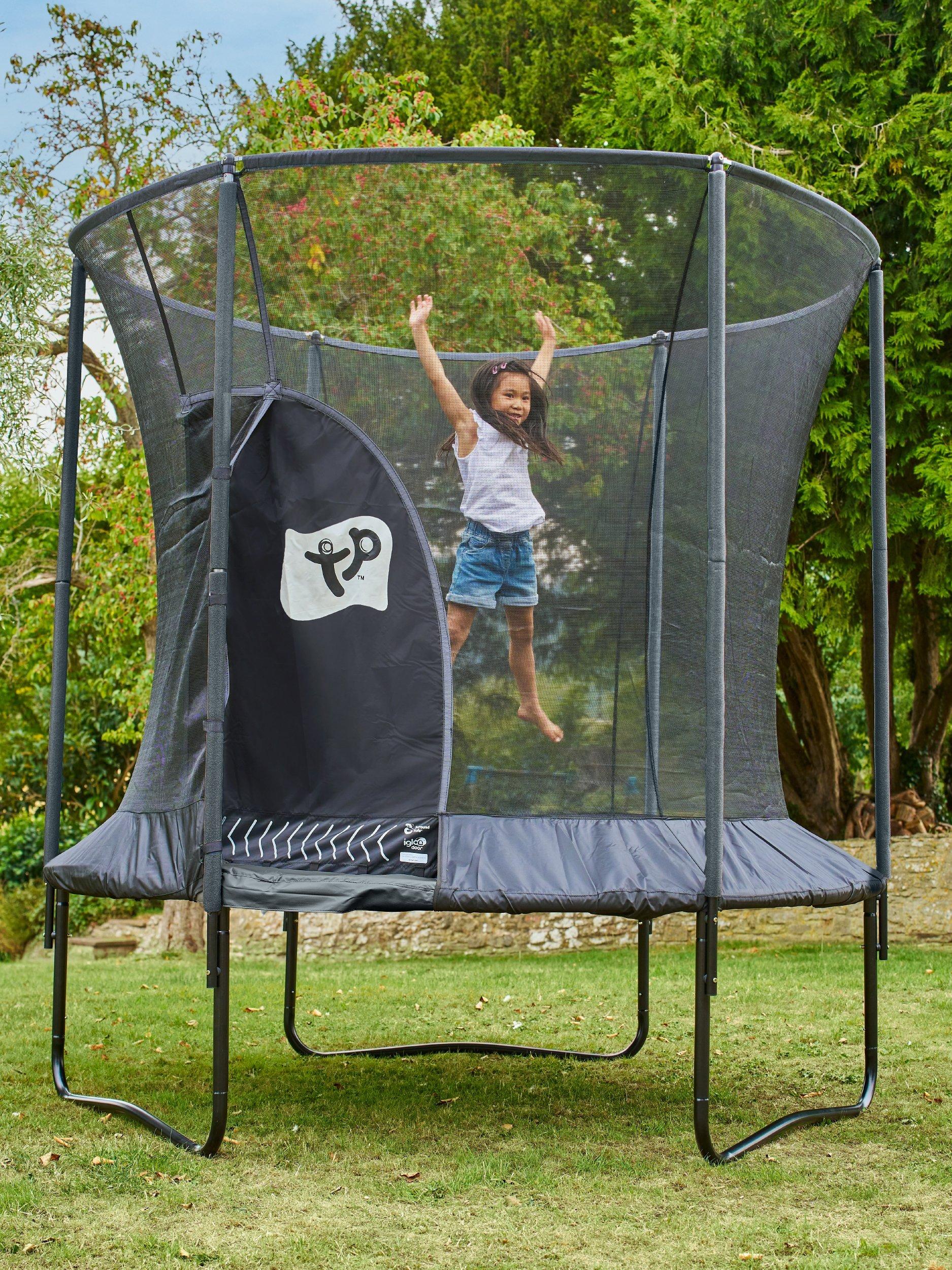 The TP Genius 8ft Round Trampoline combines premium safety with brilliant bounce. It features the SurroundSafe System, a fun IGLOO crawl-through door, and a strong steel frame.